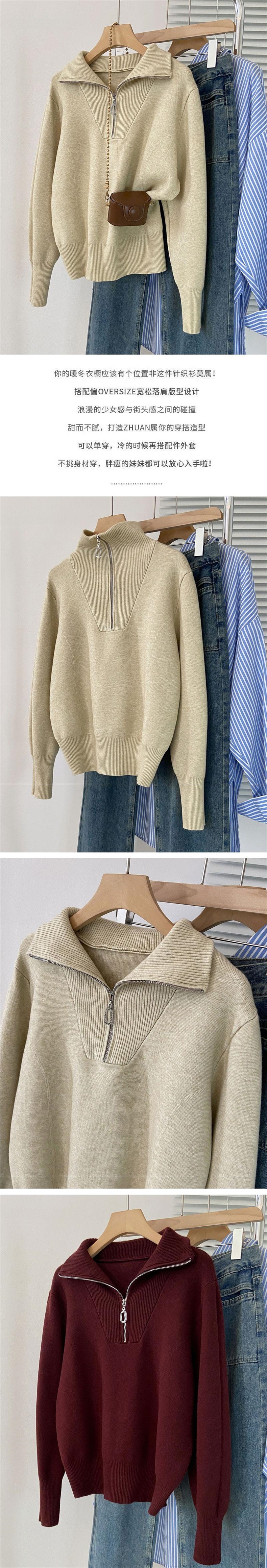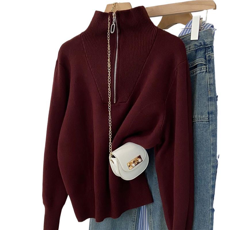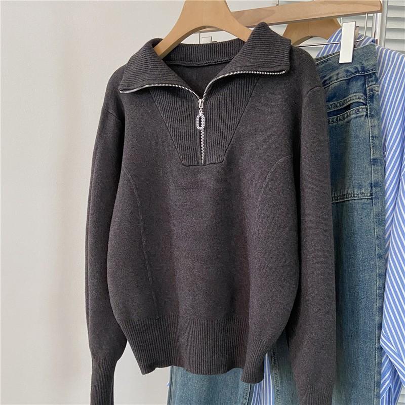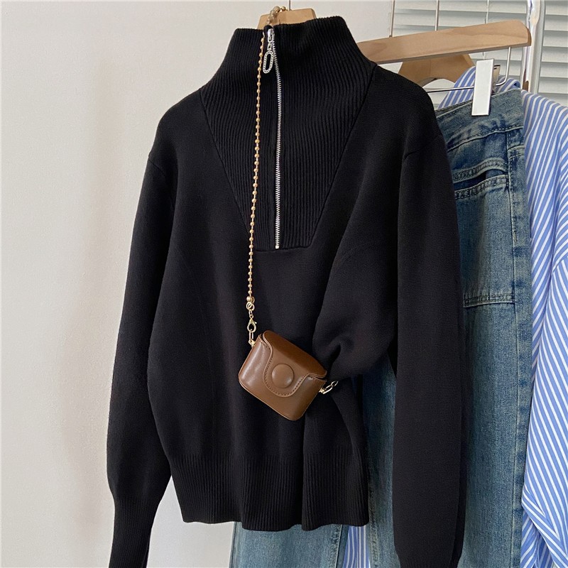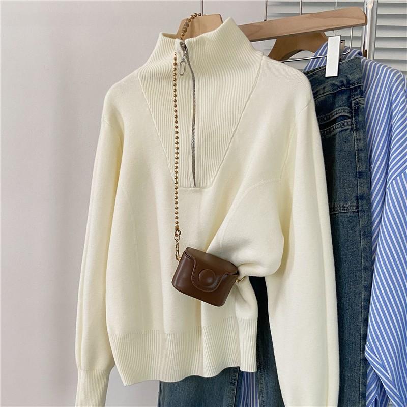 Весенний 2025 новый свободный свитер с высоким воротником и полузастежкой на молнии свитер женский свитер с длинными рукавами