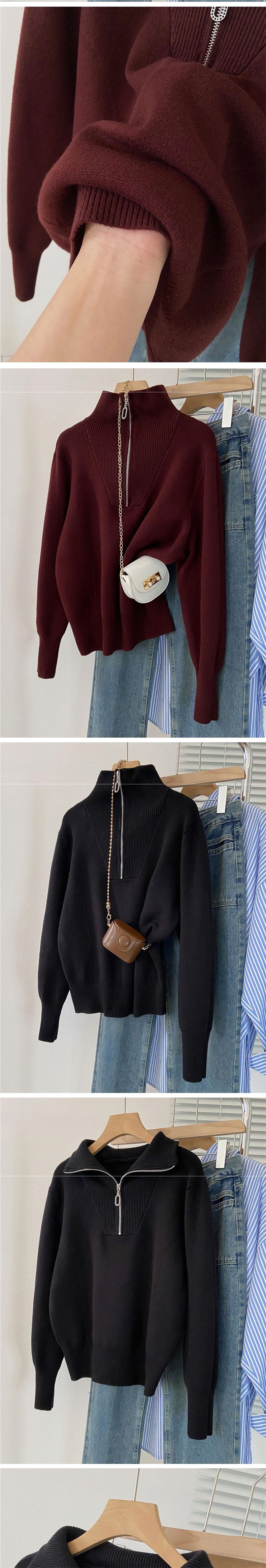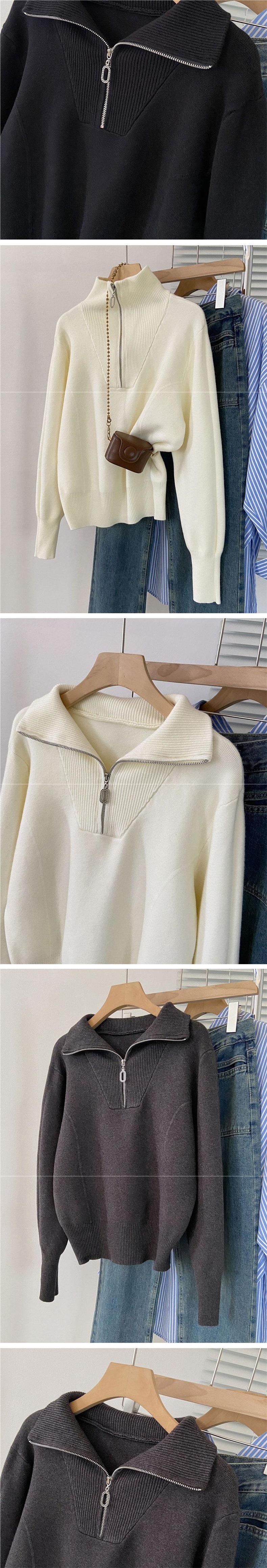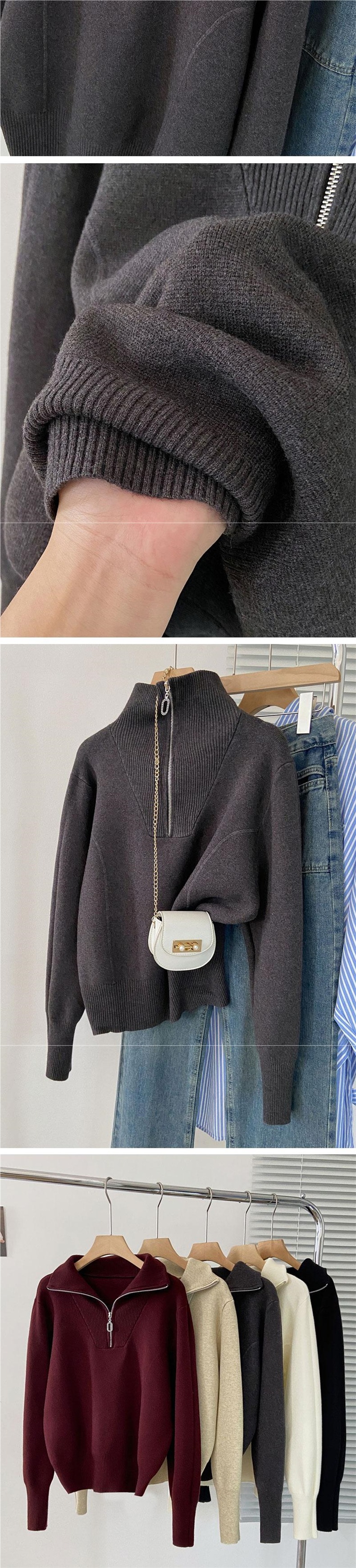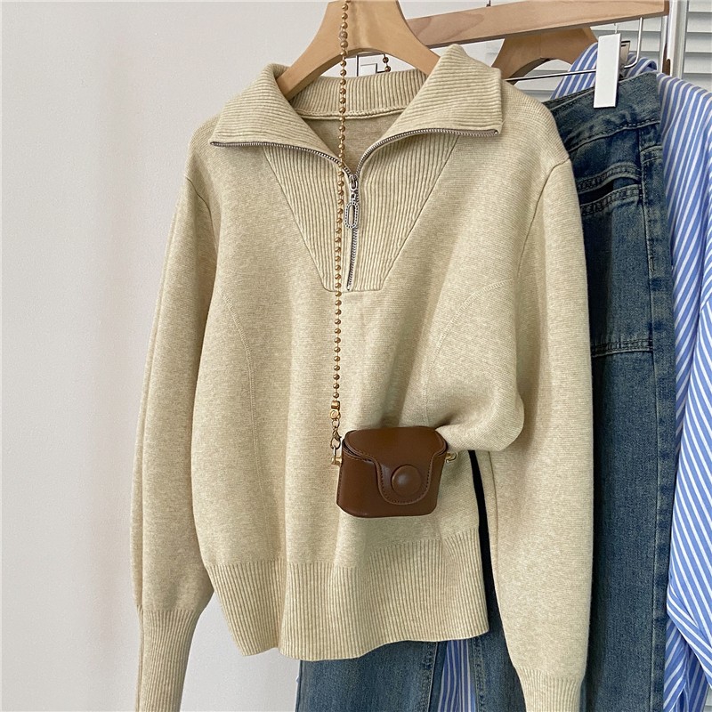 Весенний 2025 новый свободный свитер с высоким воротником и полузастежкой на молнии свитер женский свитер с длинными рукавами
