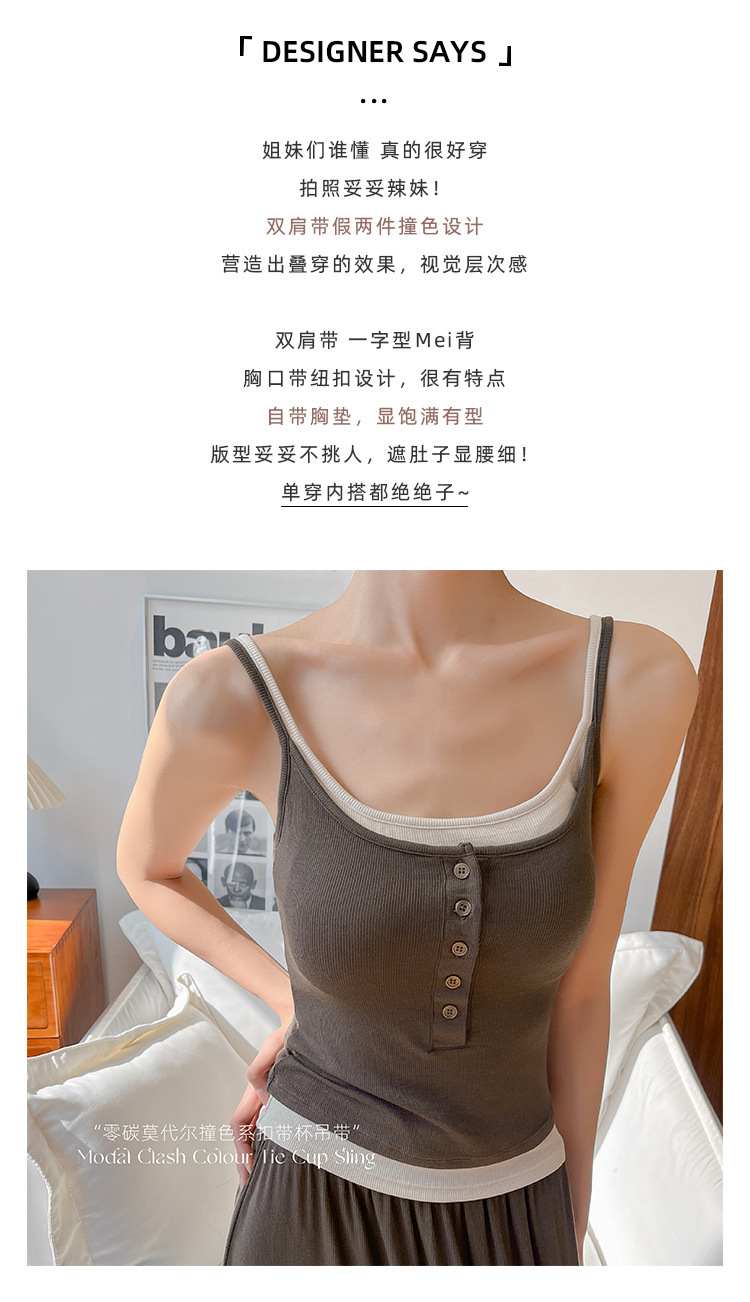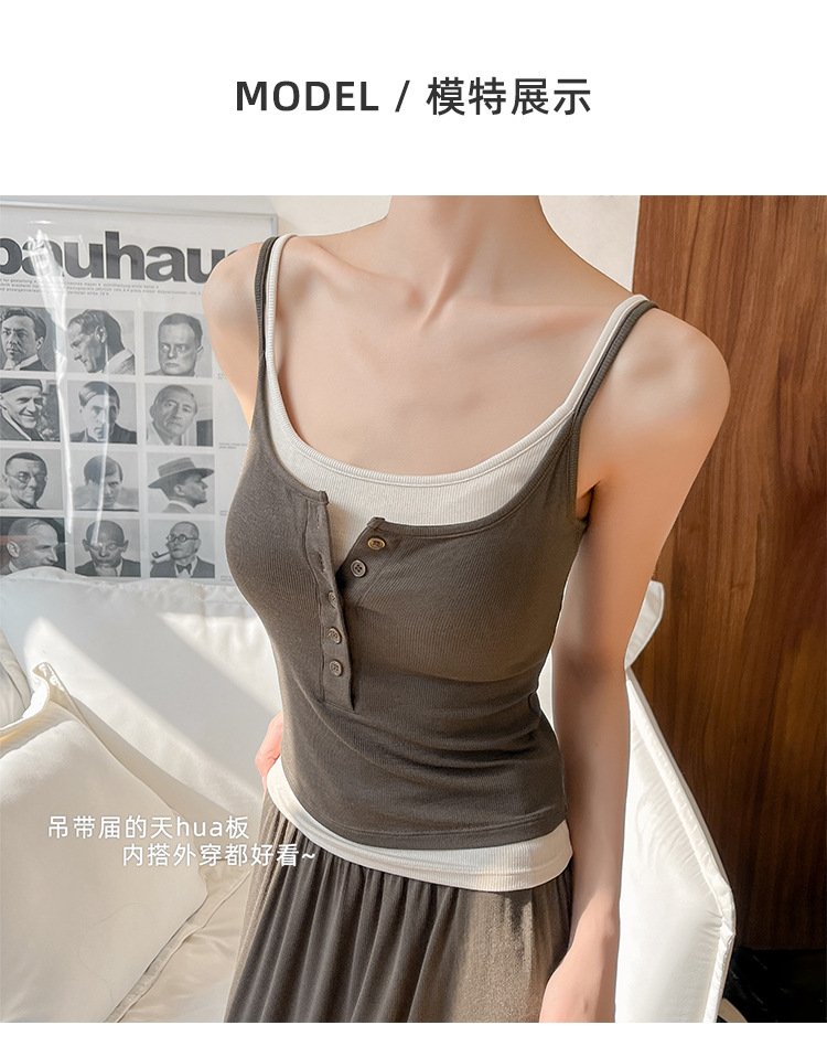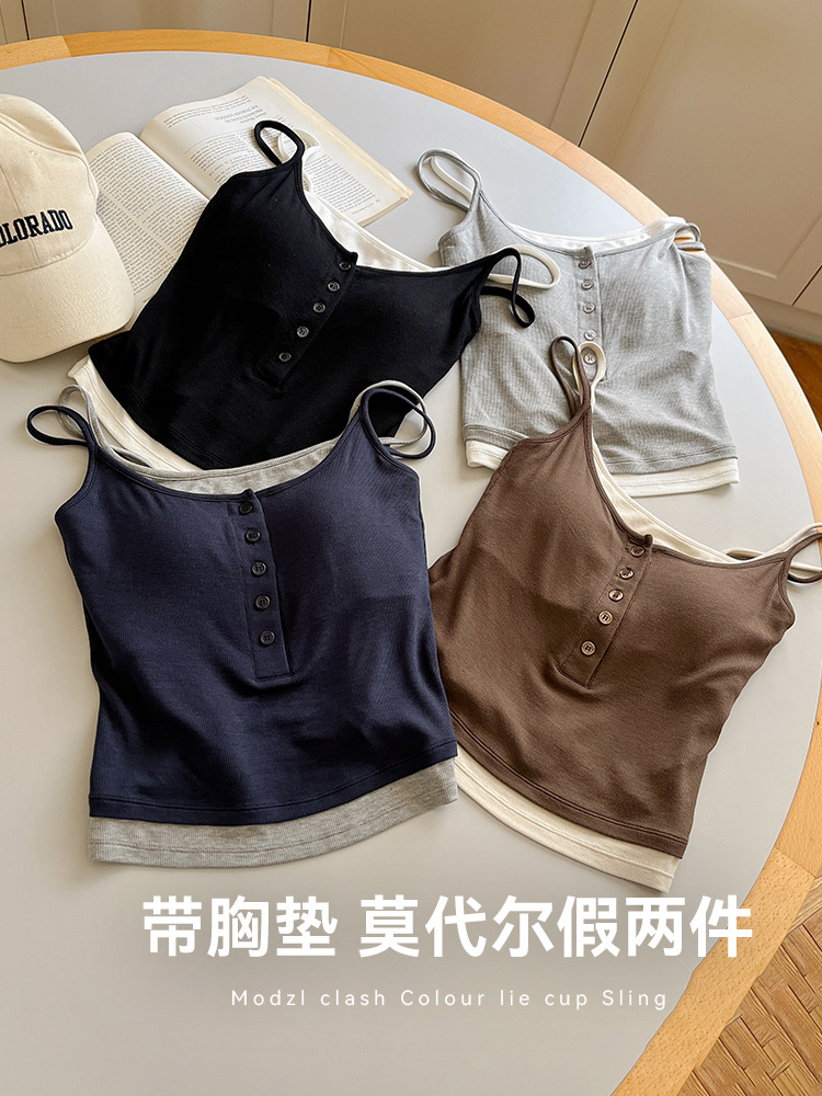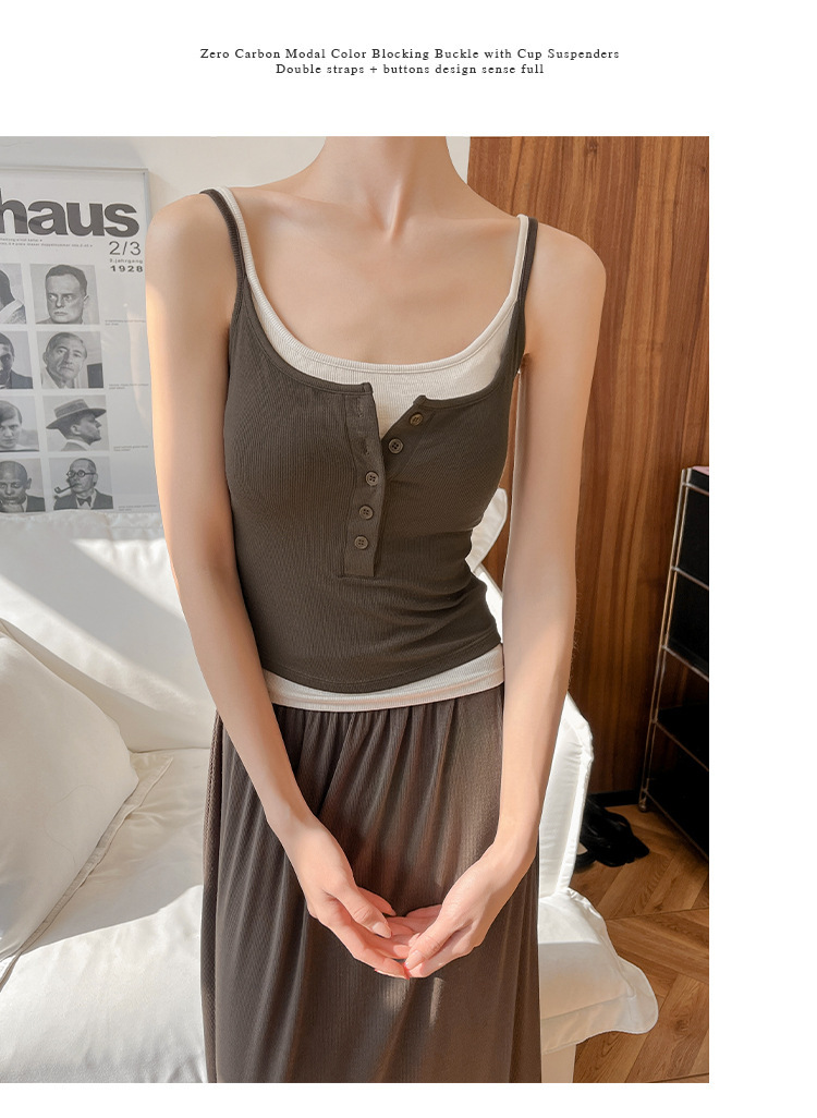 Нулевой углерод модал цвет пуговицы с чашкой камзол жилет женщины тонкая, тонкие плечи поддельные две части