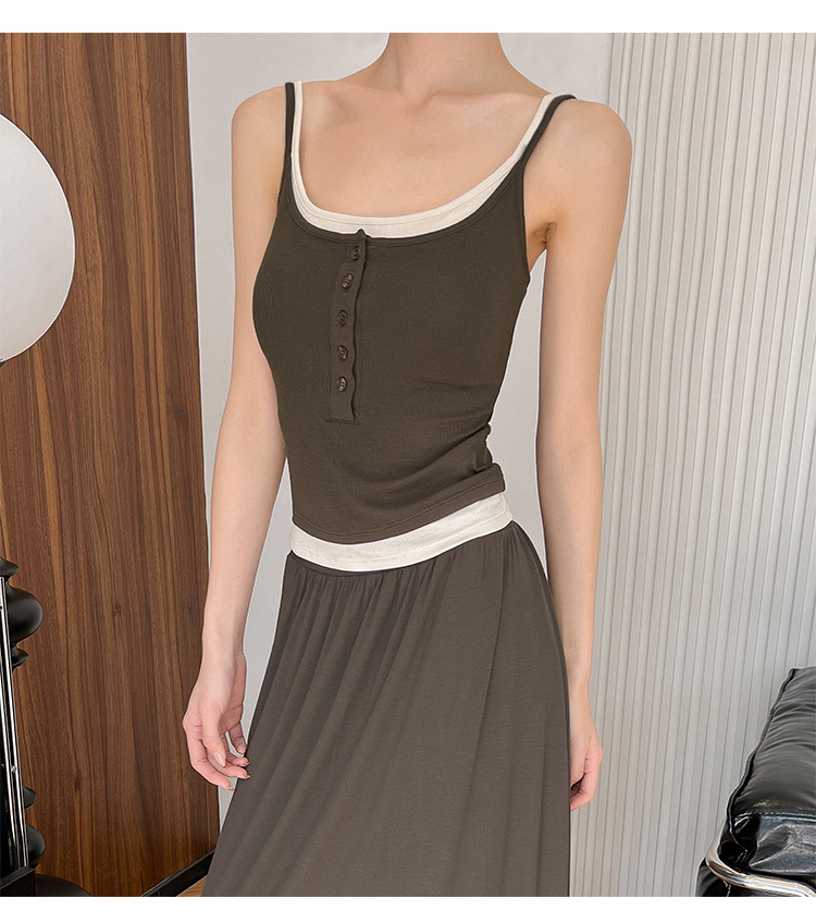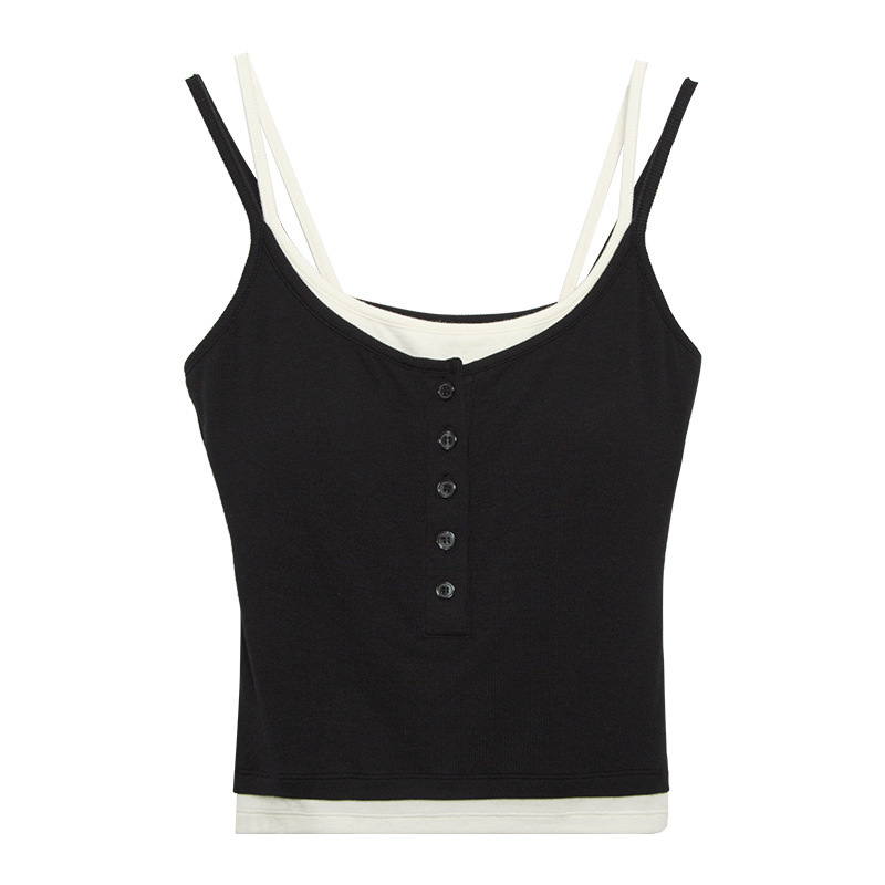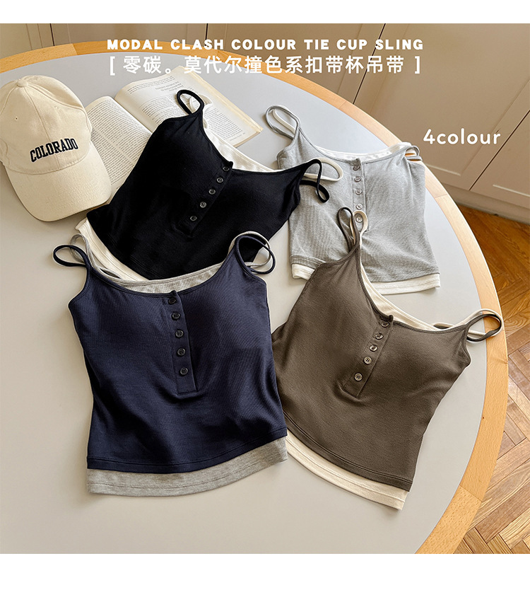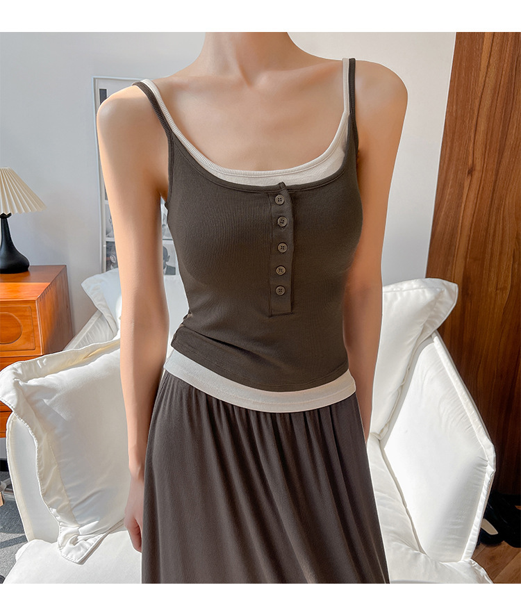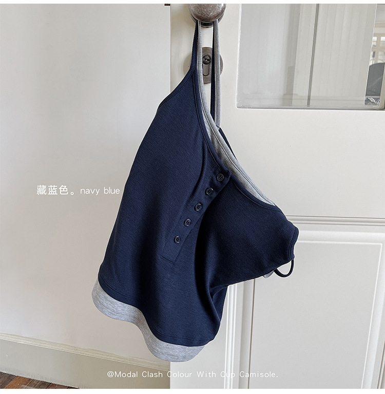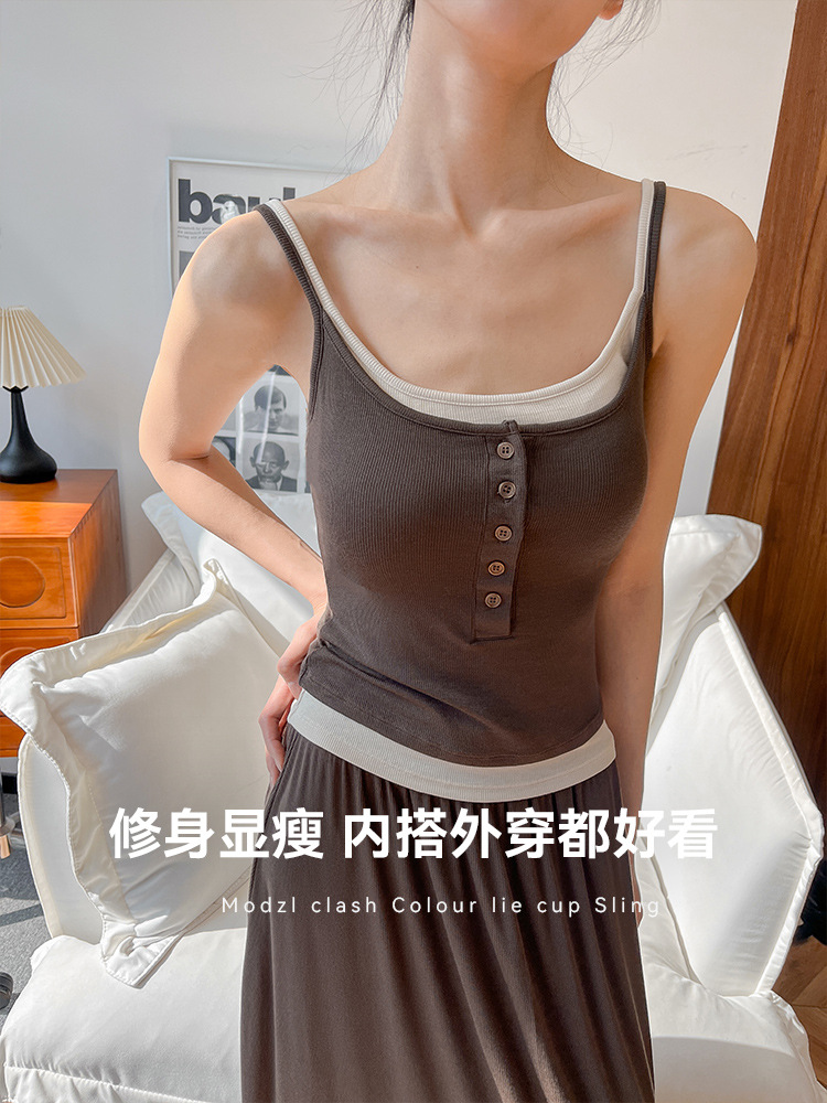 Нулевой углерод модал цвет пуговицы с чашкой камзол жилет женщины тонкая, тонкие плечи поддельные две части