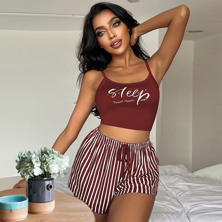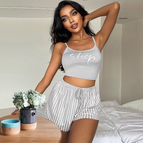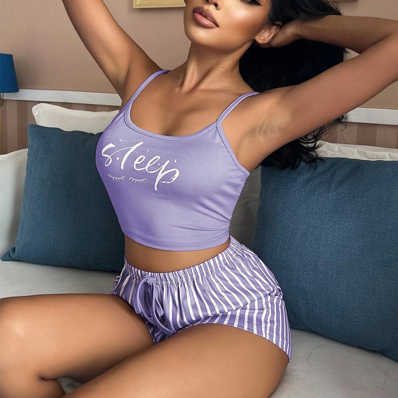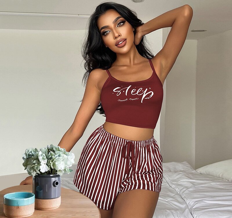 2023 новые европейские и американские эротические нижнее белье с пижамой шнурок шорты с буквами в полоску с принтом домашней одежды можно носить на улице
