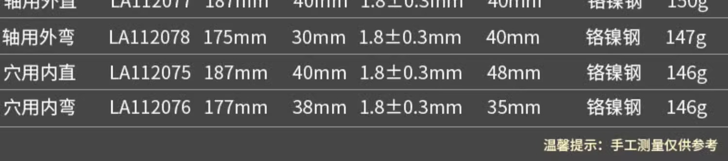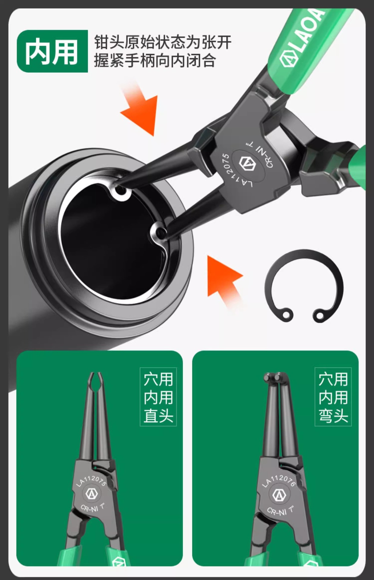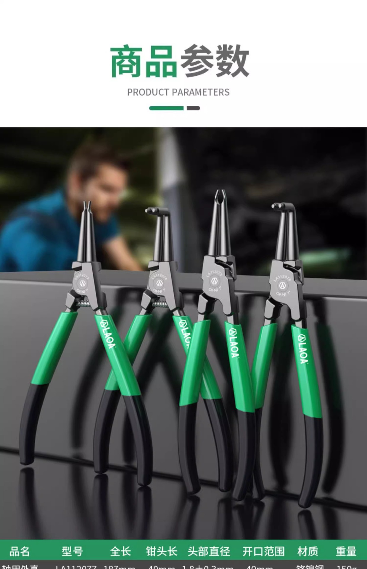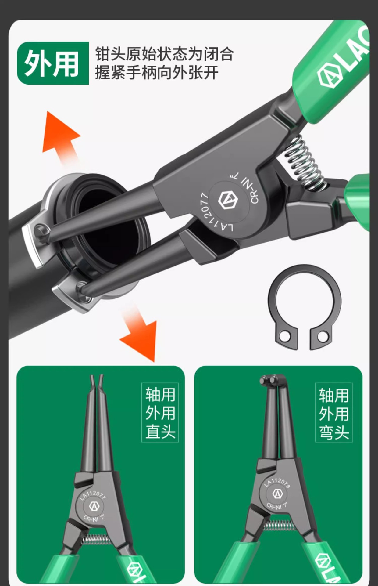 Внутренний прямой LA на 7inch отверстия112075; Вогнутый внутрь LA для 7inch отверстий112076; Внешний прямой LA для 7inch оси112077; Внешний изгиб LA для 7inch осей112078; 7inch Набор из четырех плоскогубцев для стопорных колец.; Набор из четырех предметов 7 дюймов + квадратная сумка для хранения; Набор из четырех предметов 7 дюймов + круглая сумка для хранения