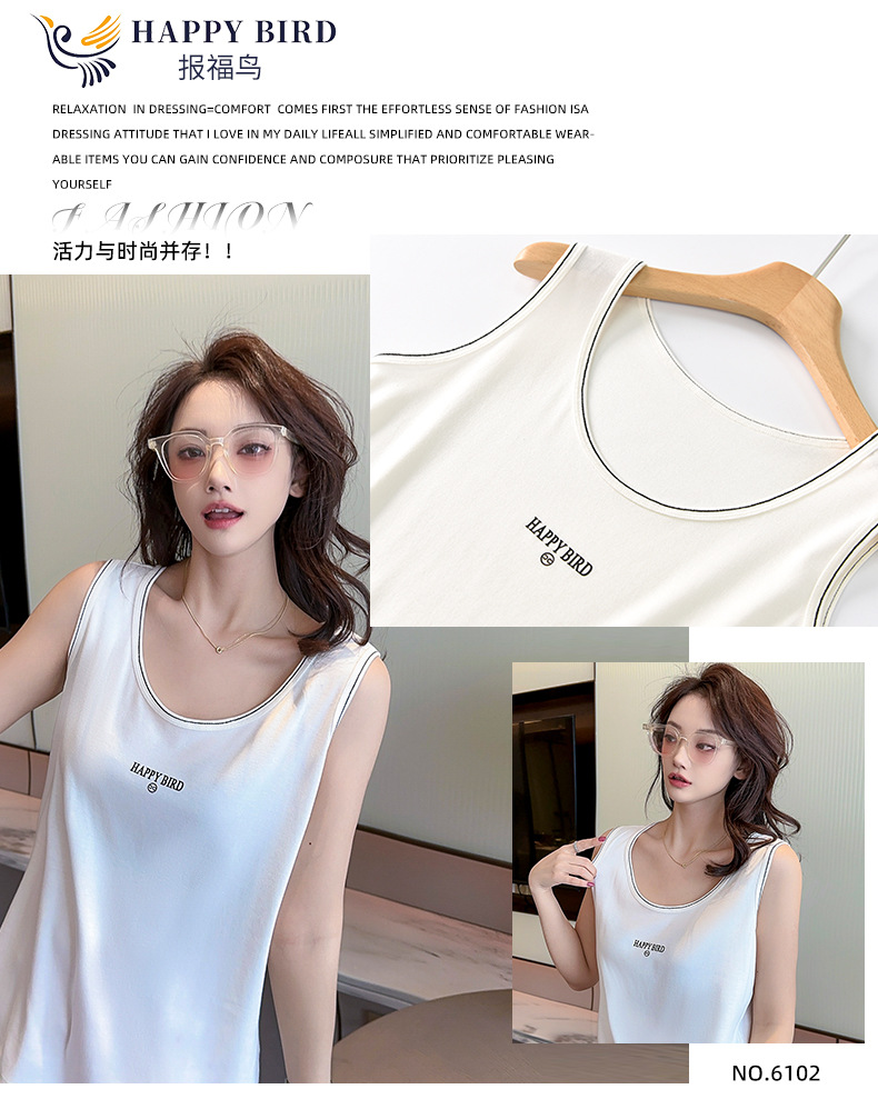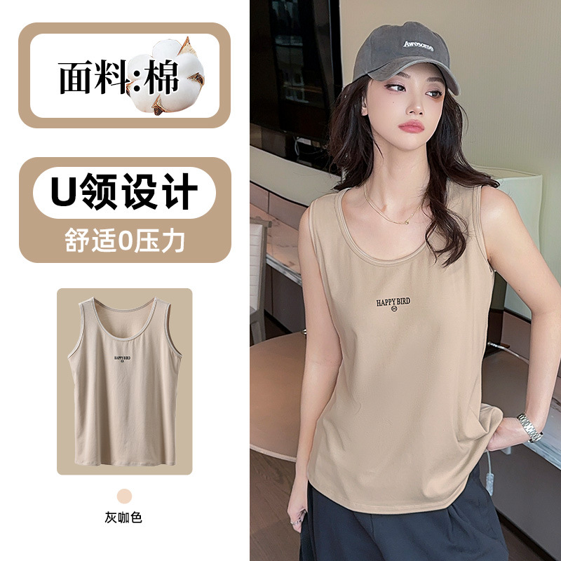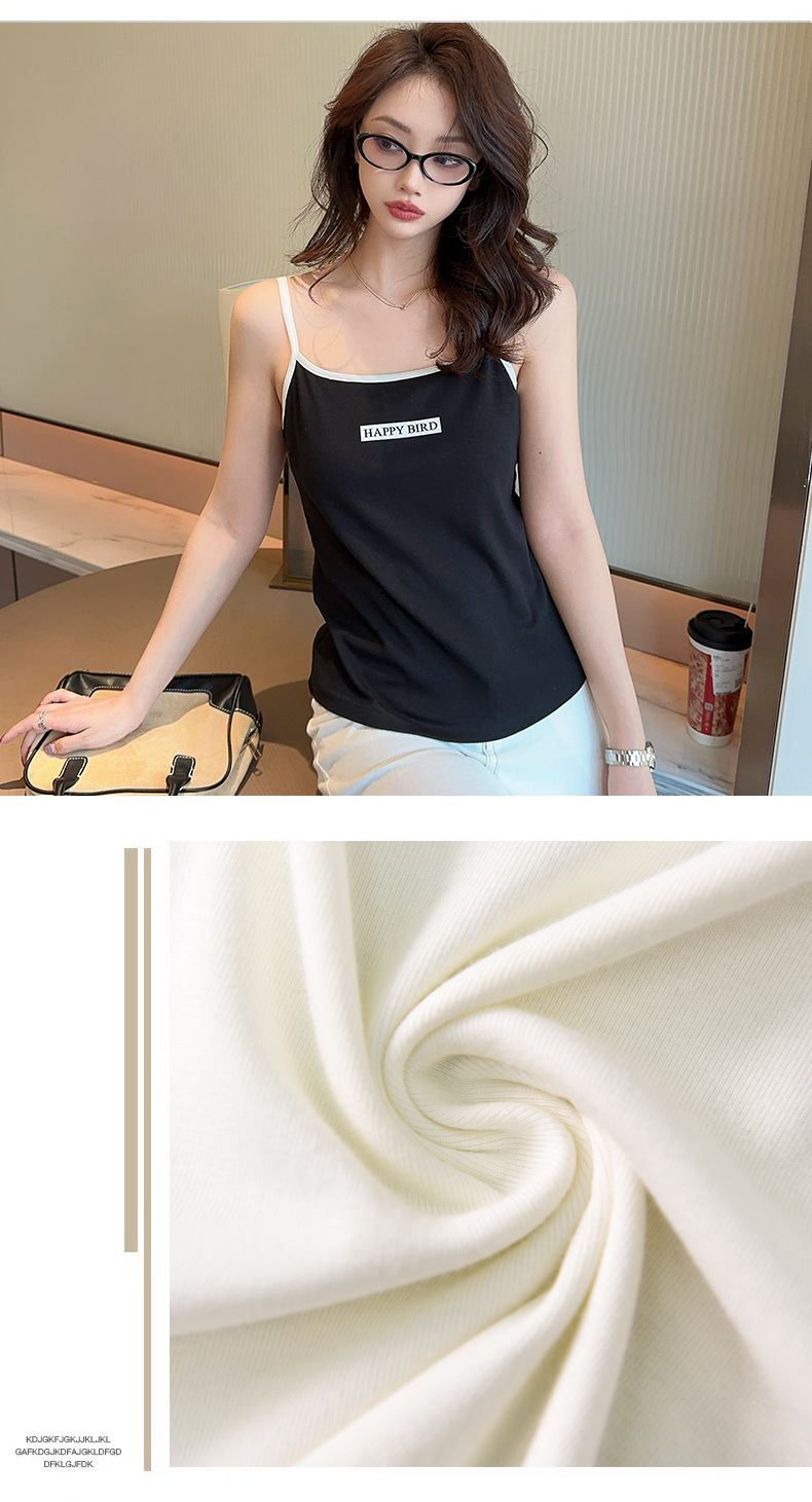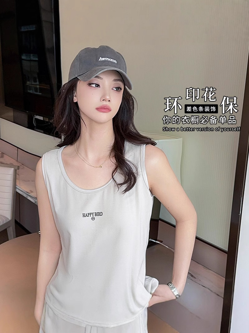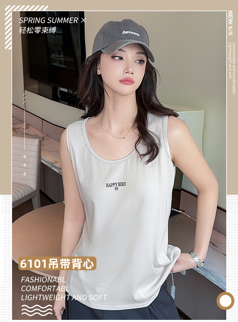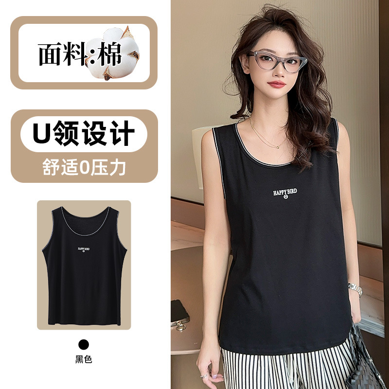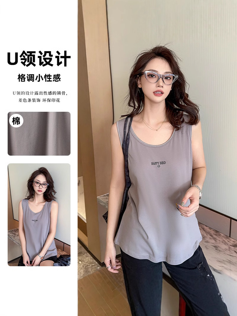 Baufu Bird 2025 новый хлопок увеличен до талии жилет дикий буквенно-подтяжка женская широкополосная футболка