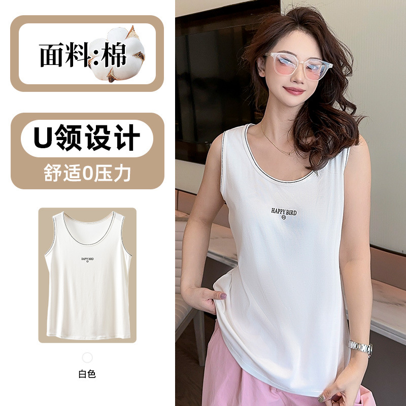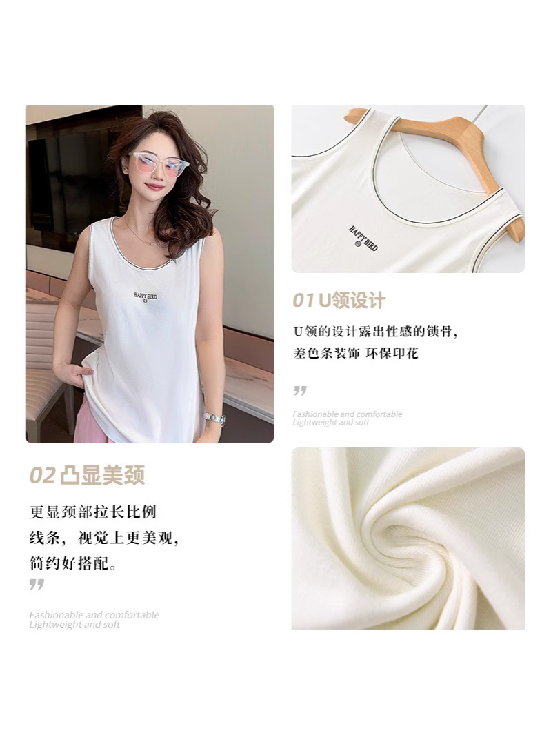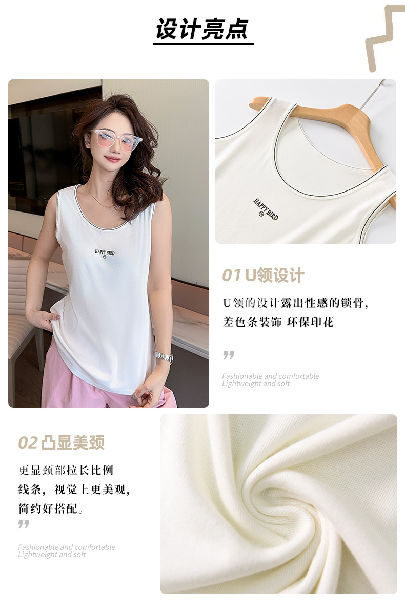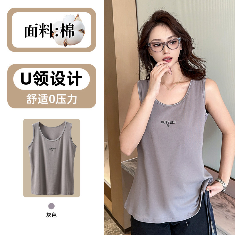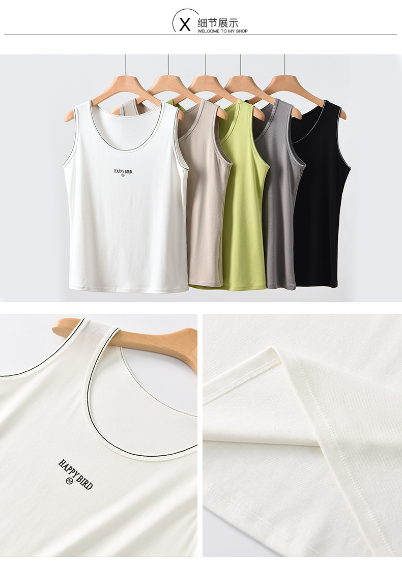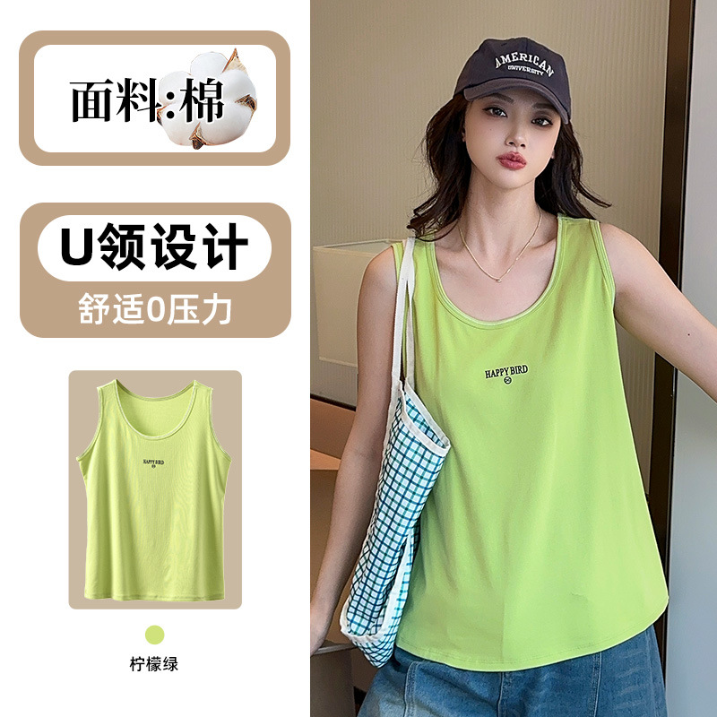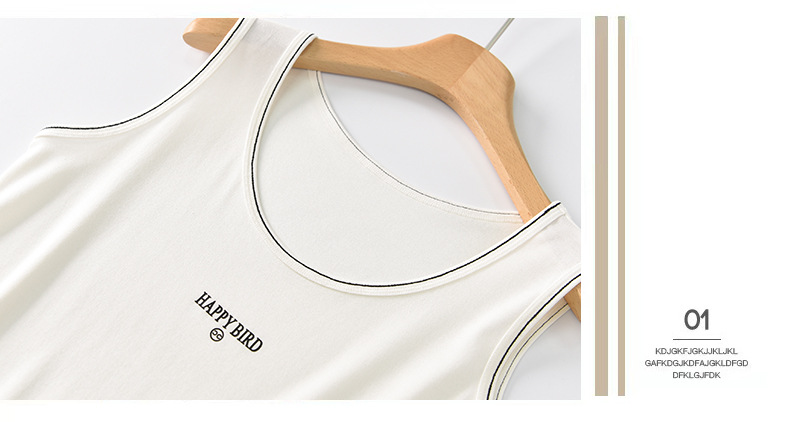 Baufu Bird 2025 новый хлопок увеличен до талии жилет дикий буквенно-подтяжка женская широкополосная футболка