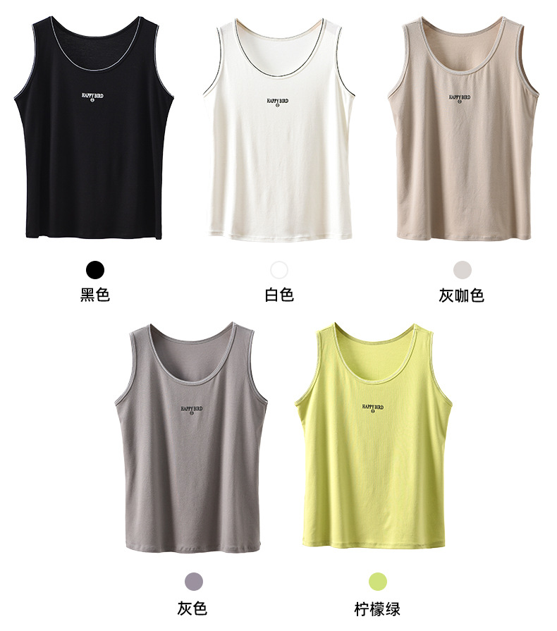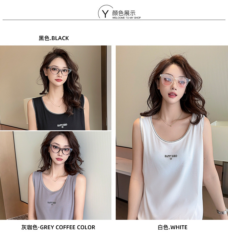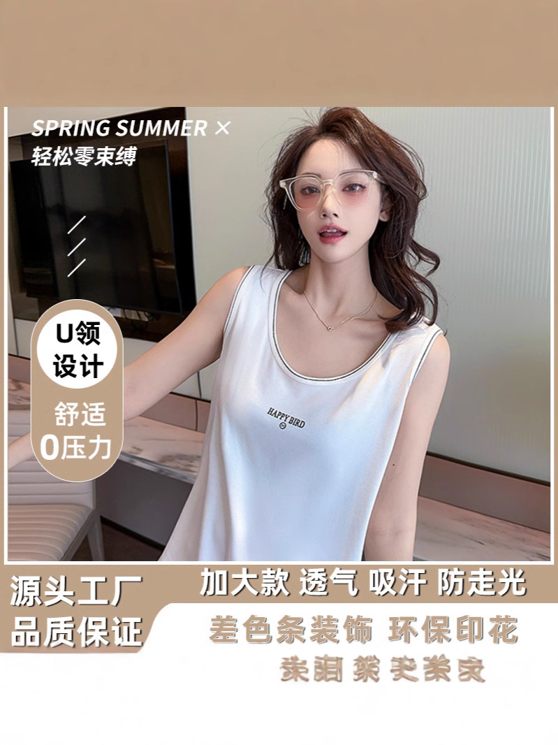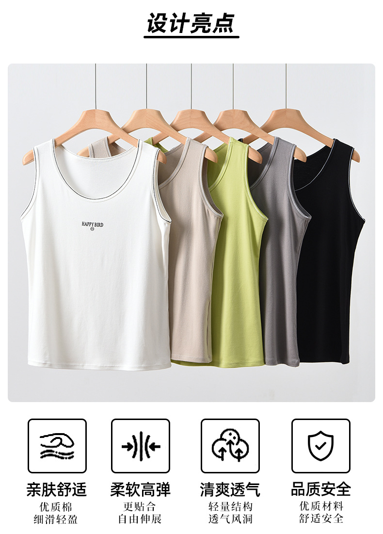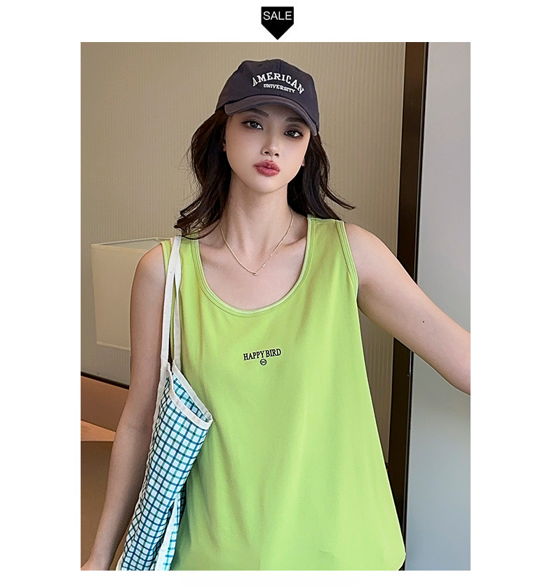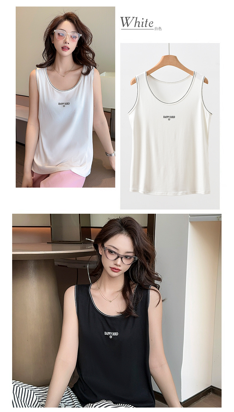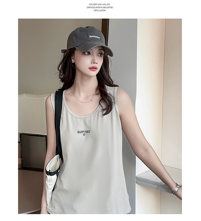 Baufu Bird 2025 новый хлопок увеличен до талии жилет дикий буквенно-подтяжка женская широкополосная футболка