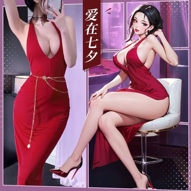 Топ + поясная цепочка + длинная юбка + нижнее белье; Длинная юбка с разрезом + трусики; Любовная юбка + трусики