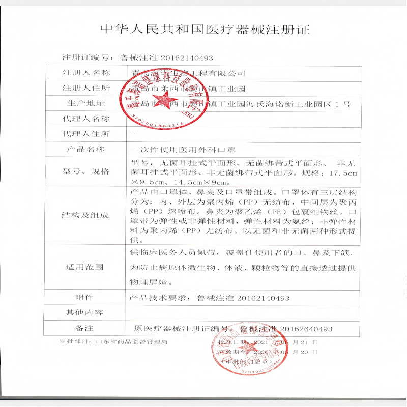 Производственная лицензия Управления по контролю за продуктами и лекарствами Лю20120047номер