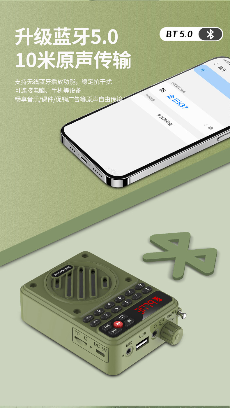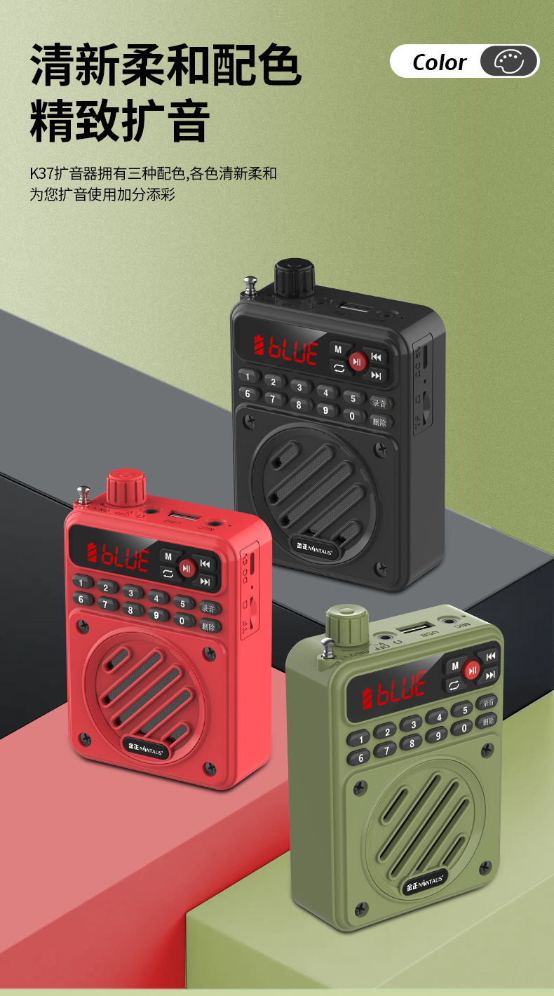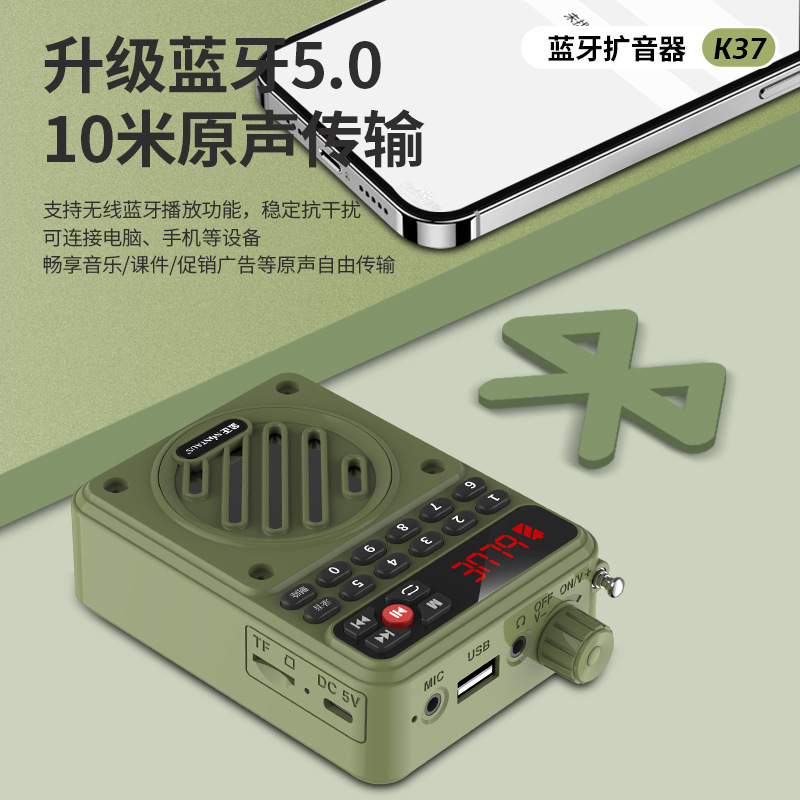 Джин Чжэн K37 Мегафон Преподаватель Преподавательский гид Мощный динамик Мегафон Кричащий микрофон Портативный плеер