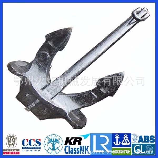 霍尔锚又称山字锚。是一种锚爪可自由转动与锚干成一定倾角的无杆锚。锚头与锚爪为一整体铸件。锚干穿过锚头,用一根锚干轴销和两根锚头横销锁住,使锚头、锚爪能以锚干轴销为轴作前、后各45°的转动。当锚平卧以锚爪的任何一面接触水底时,在锚链的拉动下,锚头突缘摩擦底土所产生的阻力迫使锚爪梨入底土产生抓力。其抓力约为锚重的2.5~4.0倍。这种锚的特点是结构比较复杂。但抛起方便,锚干能直接插入锚链筒,收藏方便稳当。为近代船舶广泛采用。