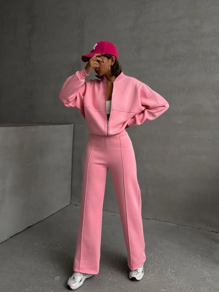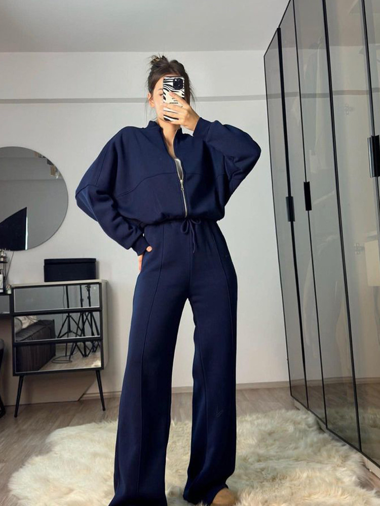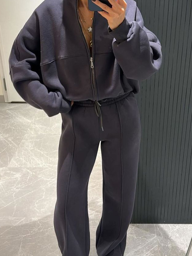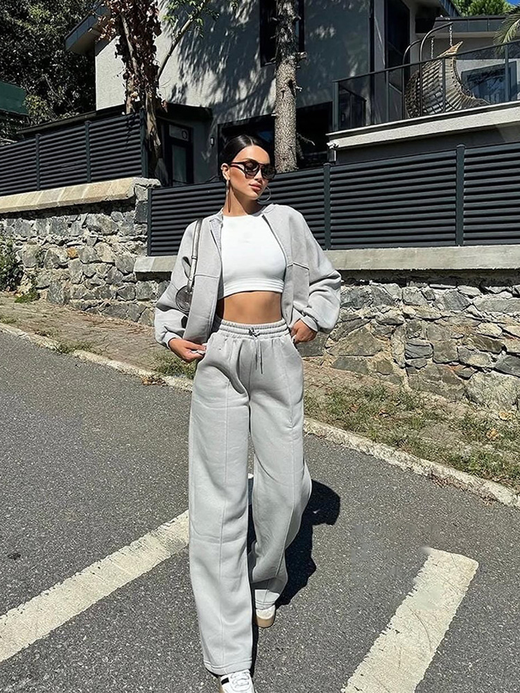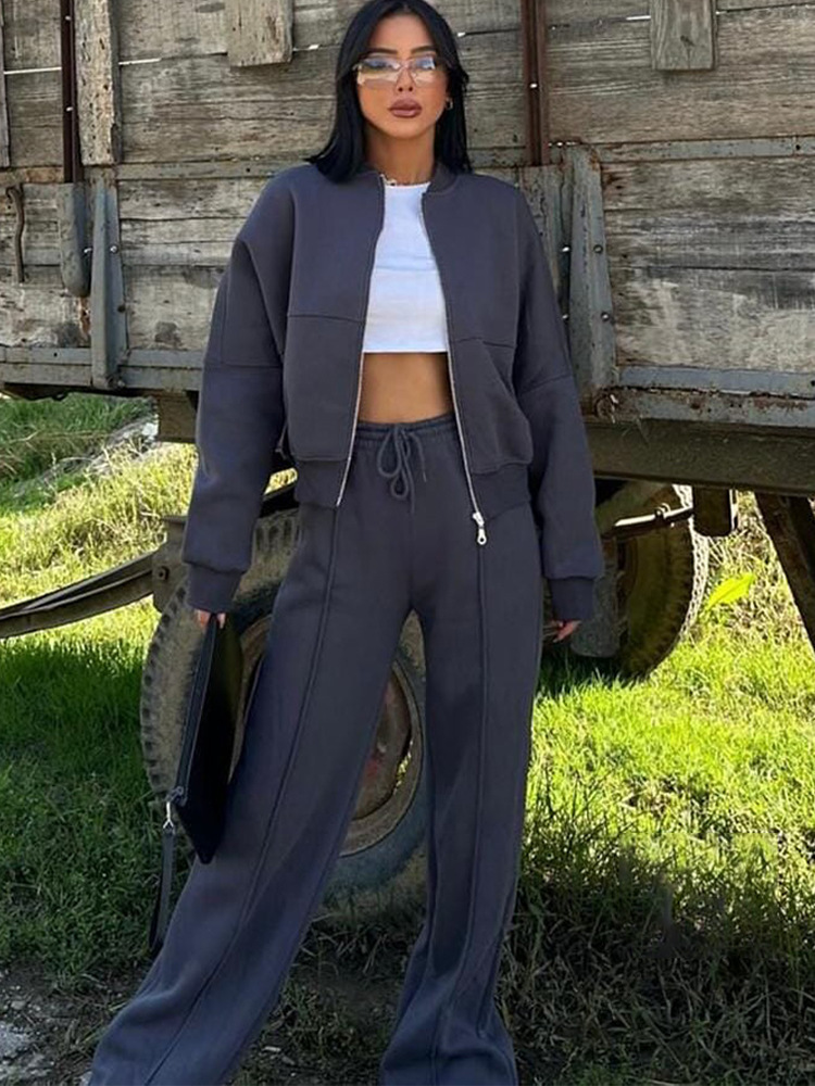 Европейский и американский повседневный костюм Американский осенний и зимний кардиган спортивная женская мода уличный стиль с длинными рукавами куртка брюки из двух частей