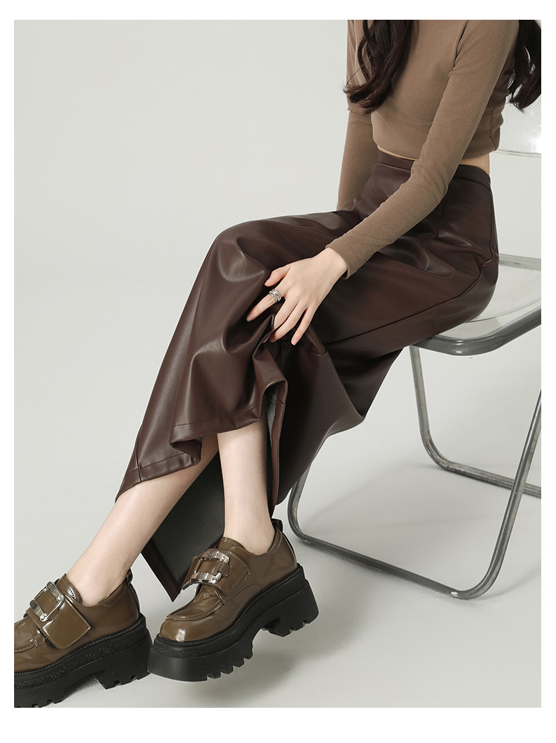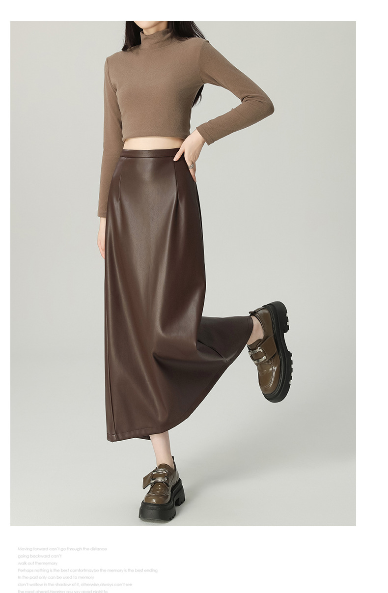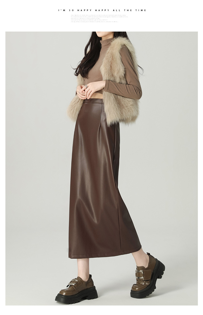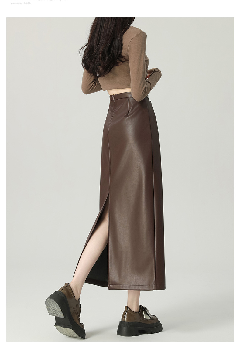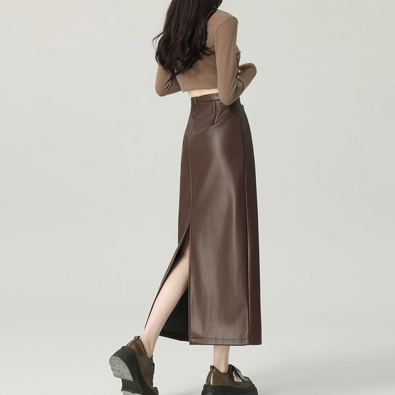 Коричневая кожаная юбка Женская ранняя весна 2025 Новый стиль с высокой талией