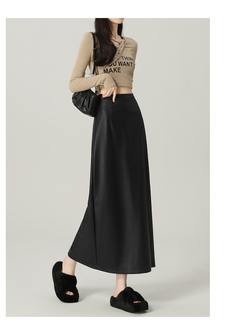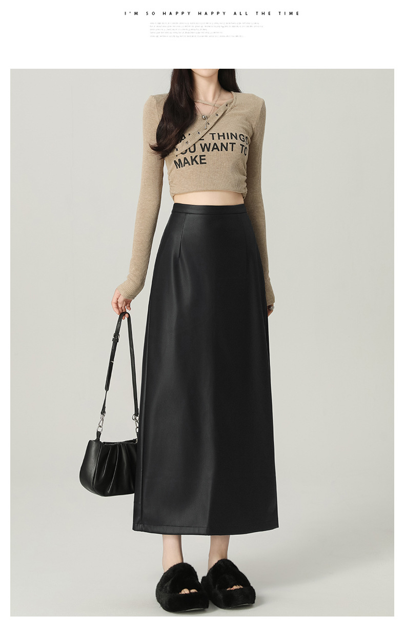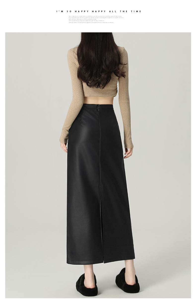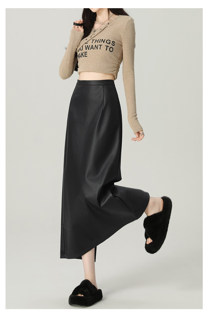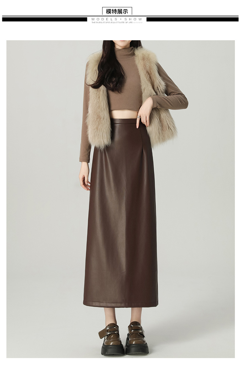 Коричневая кожаная юбка Женская ранняя весна 2025 Новый стиль с высокой талией