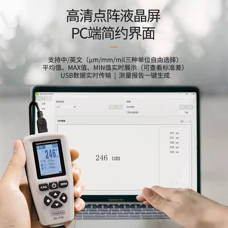 测厚仪用于测量金属镀层和涂层的厚度,例如钢上的油漆/搪瓷/铬、铝/铜上的油漆和阳极氧化涂层。自动检测基板的属性。