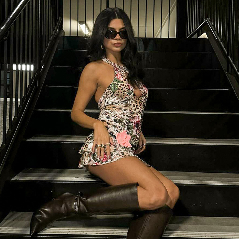 Европейские и американские ветра трансграничная женская одежда 2025 лето новая мода с принтом платье с открытой спиной