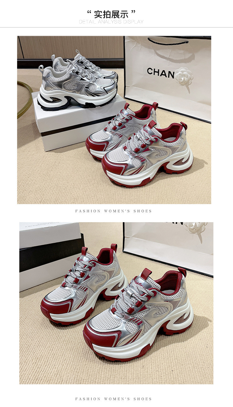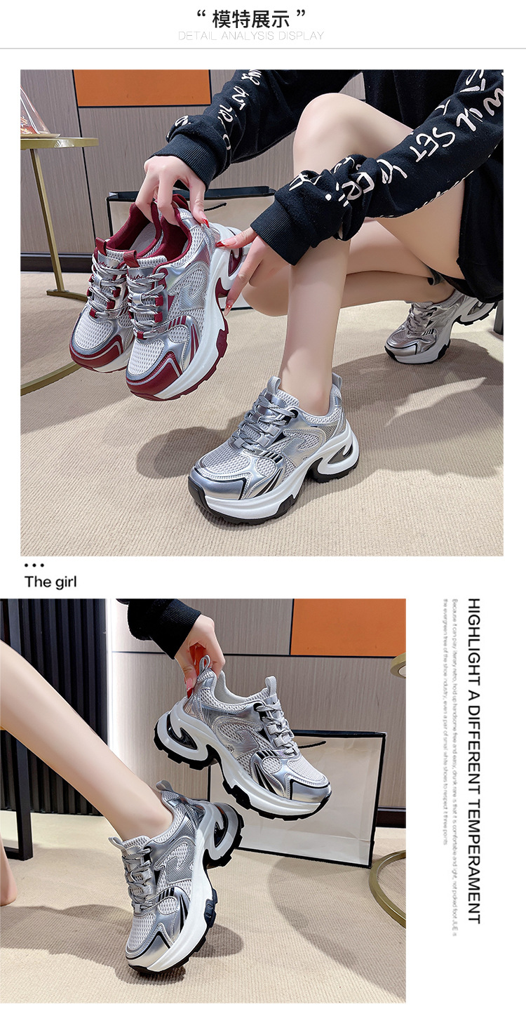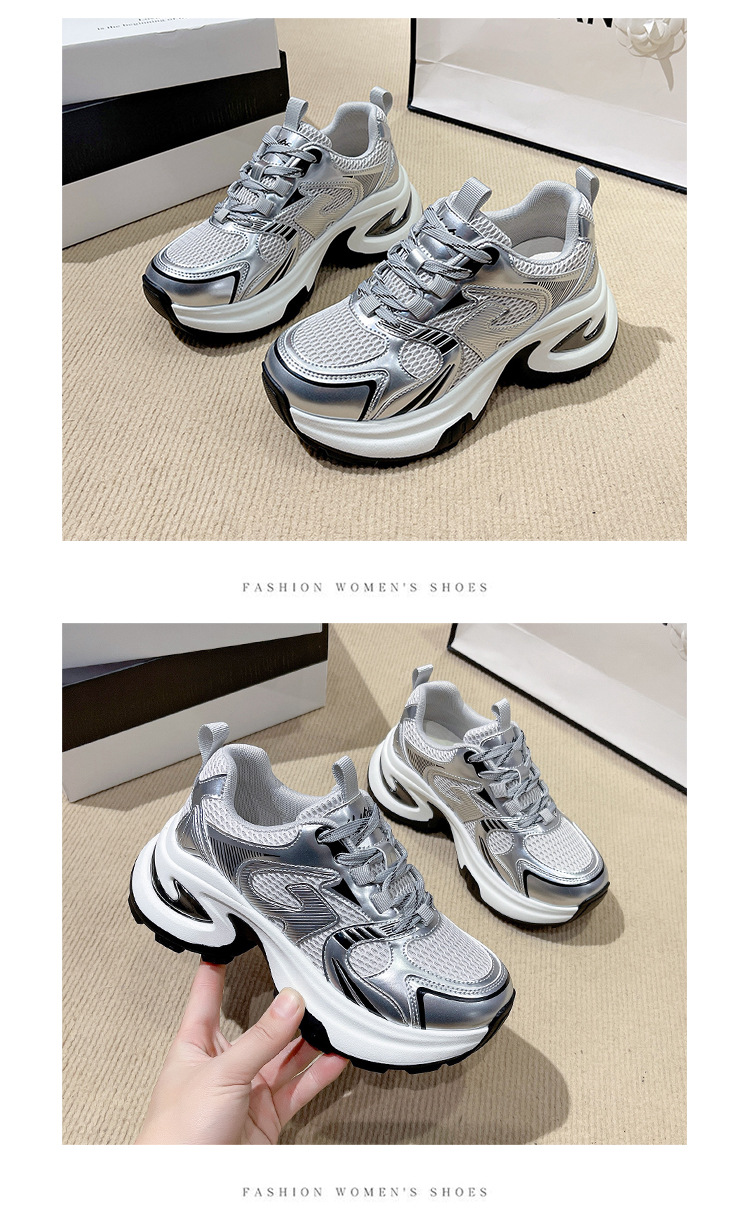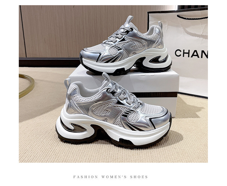 2025 Весенняя обувь папы с толстой подошвой новая сетчатая поверхность дышащая мода серебряные увеличенные повседневные кроссовки приливная обувь