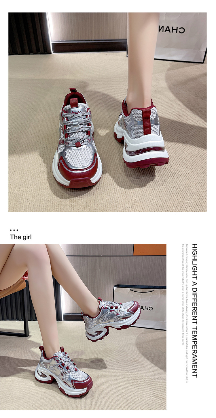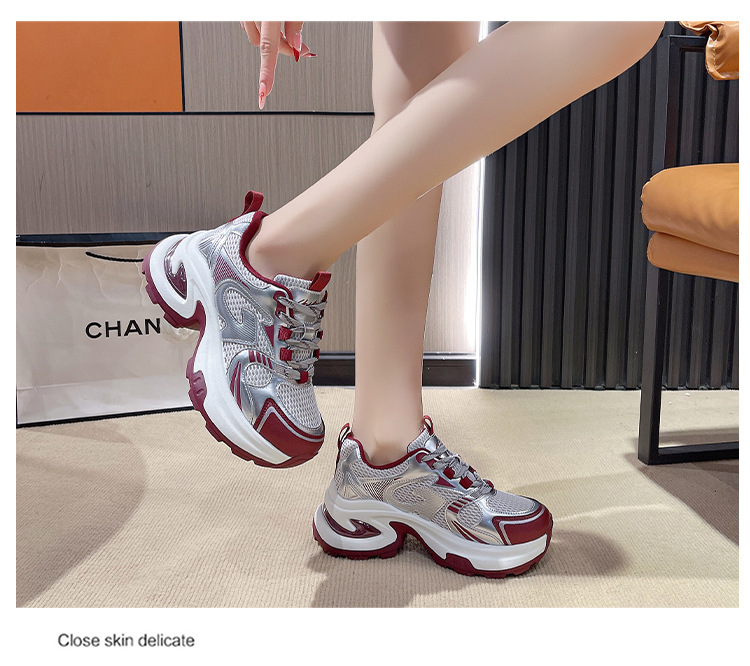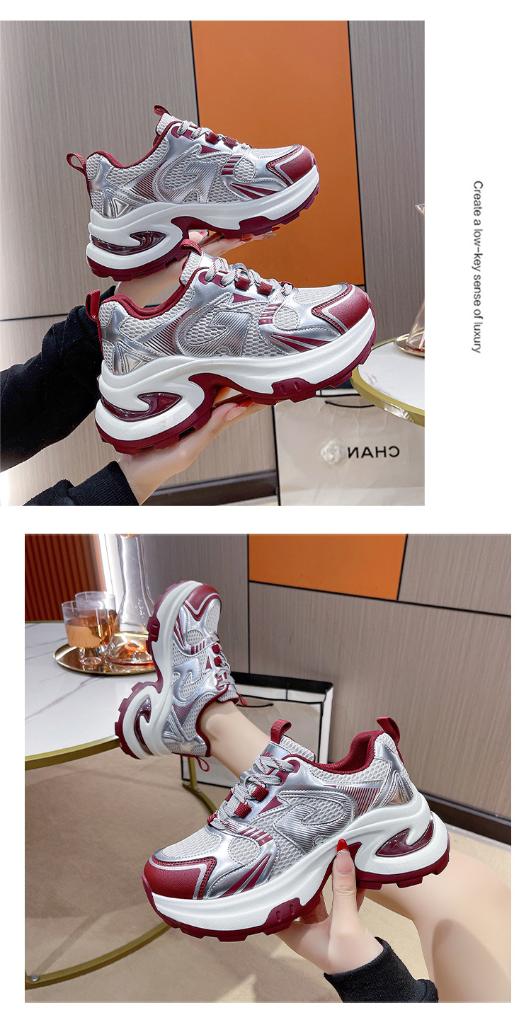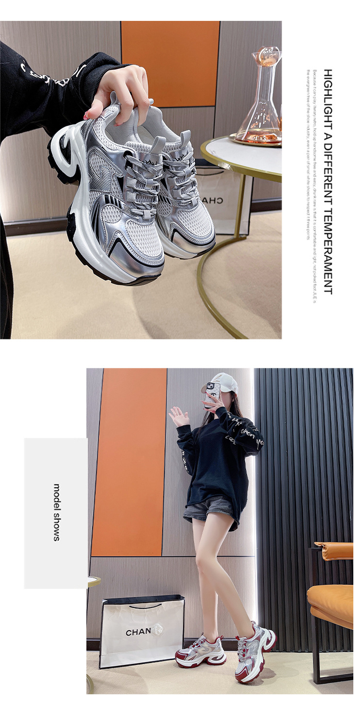 2025 Весенняя обувь папы с толстой подошвой новая сетчатая поверхность дышащая мода серебряные увеличенные повседневные кроссовки приливная обувь
