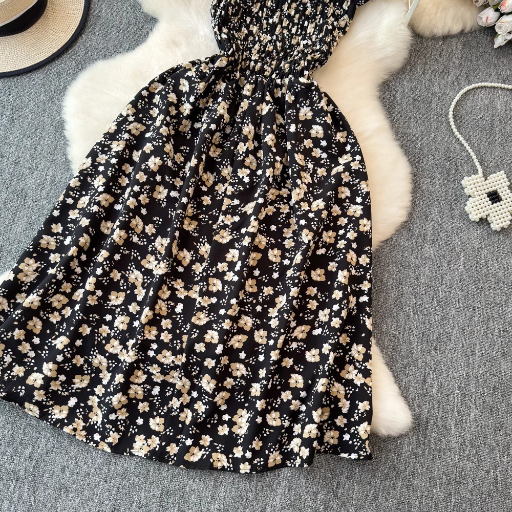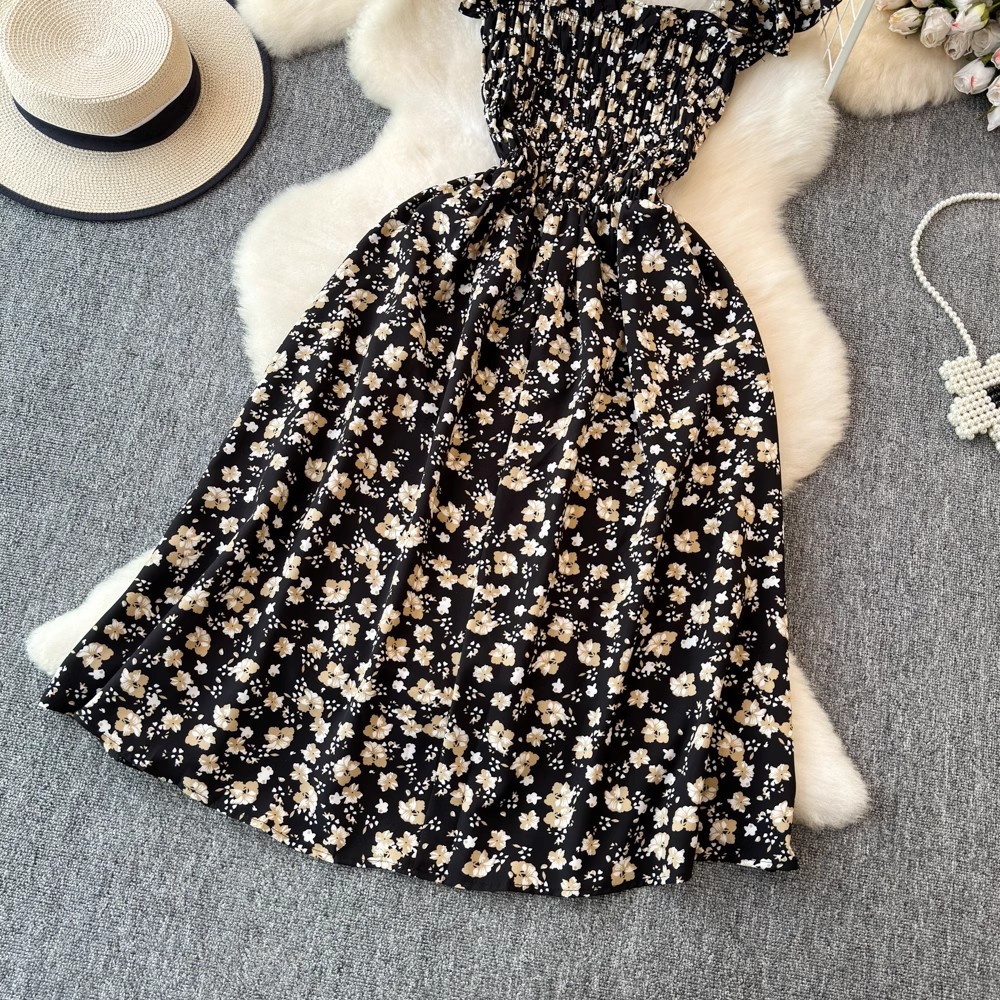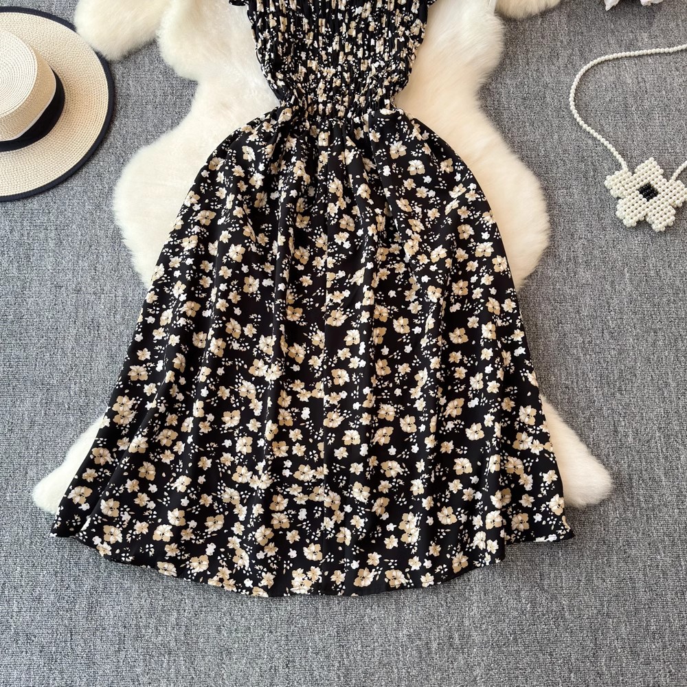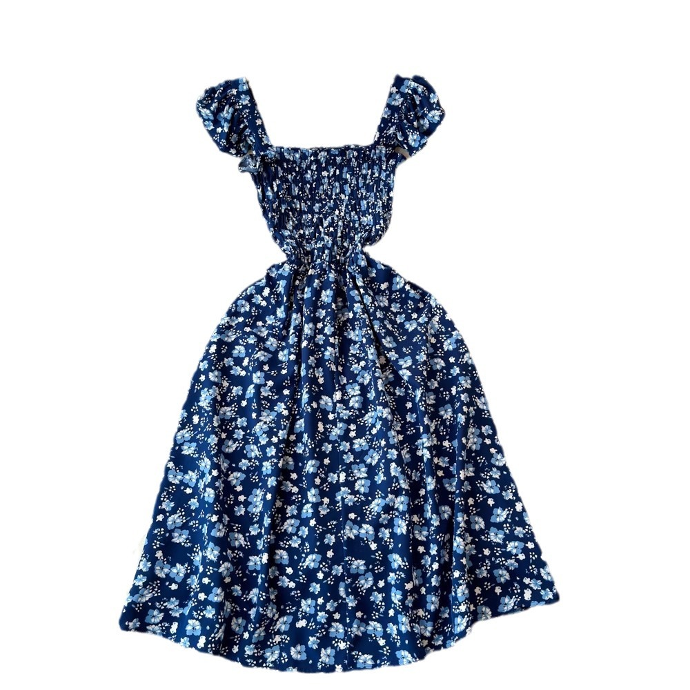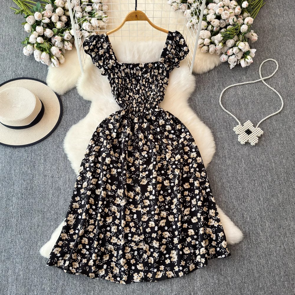 Flying Flying рукава черное цветковое платье женское лето 2024 новый продвинутый смысл талии средней и длинной чайной юбки