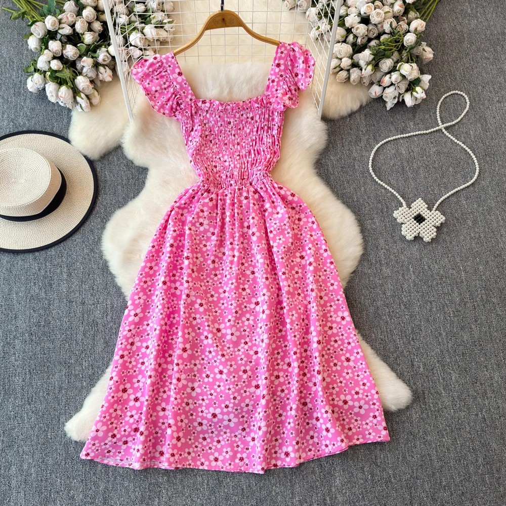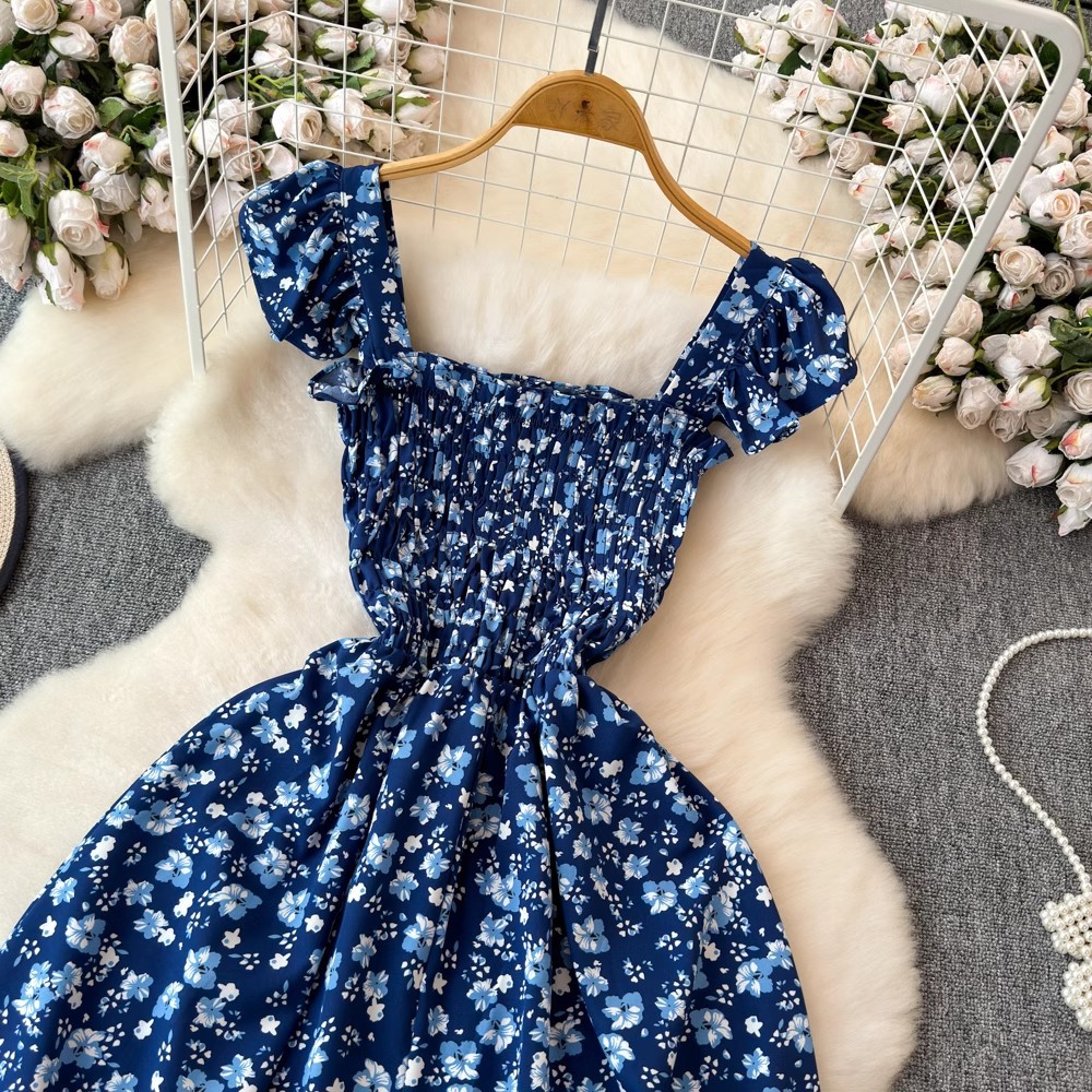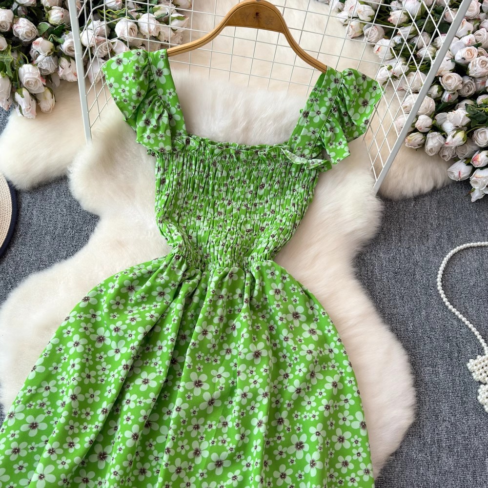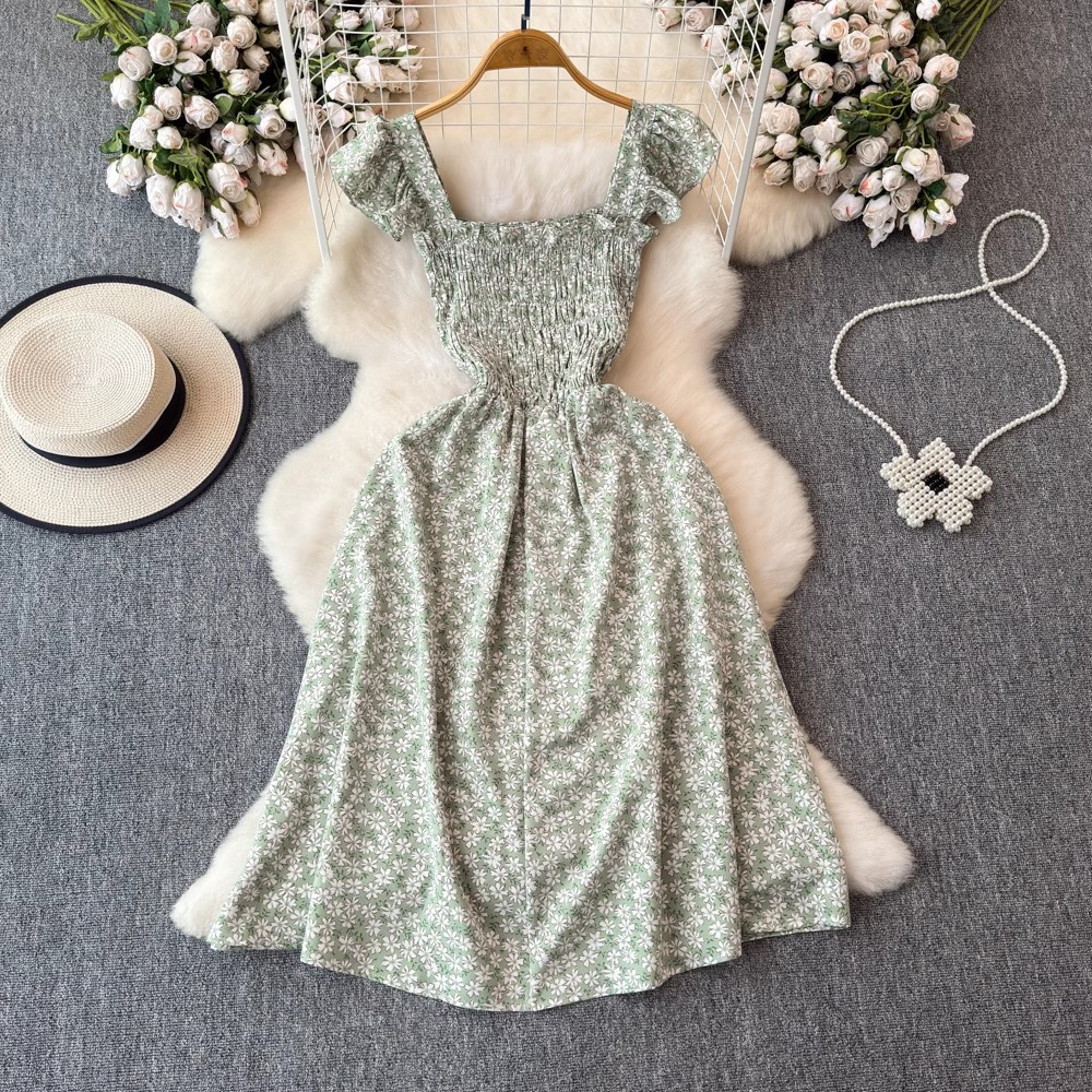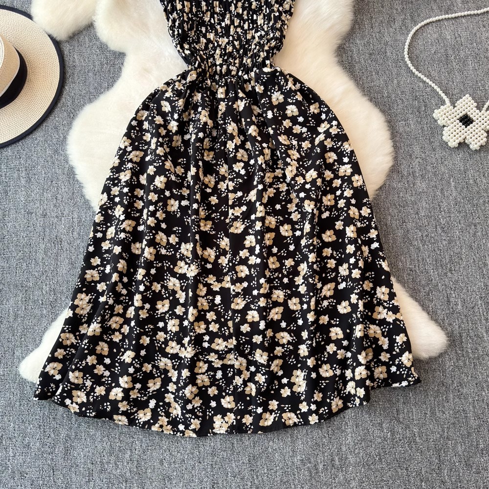 Flying Flying рукава черное цветковое платье женское лето 2024 новый продвинутый смысл талии средней и длинной чайной юбки