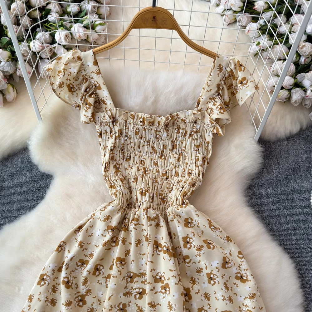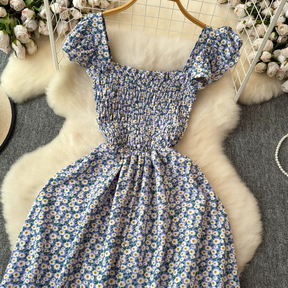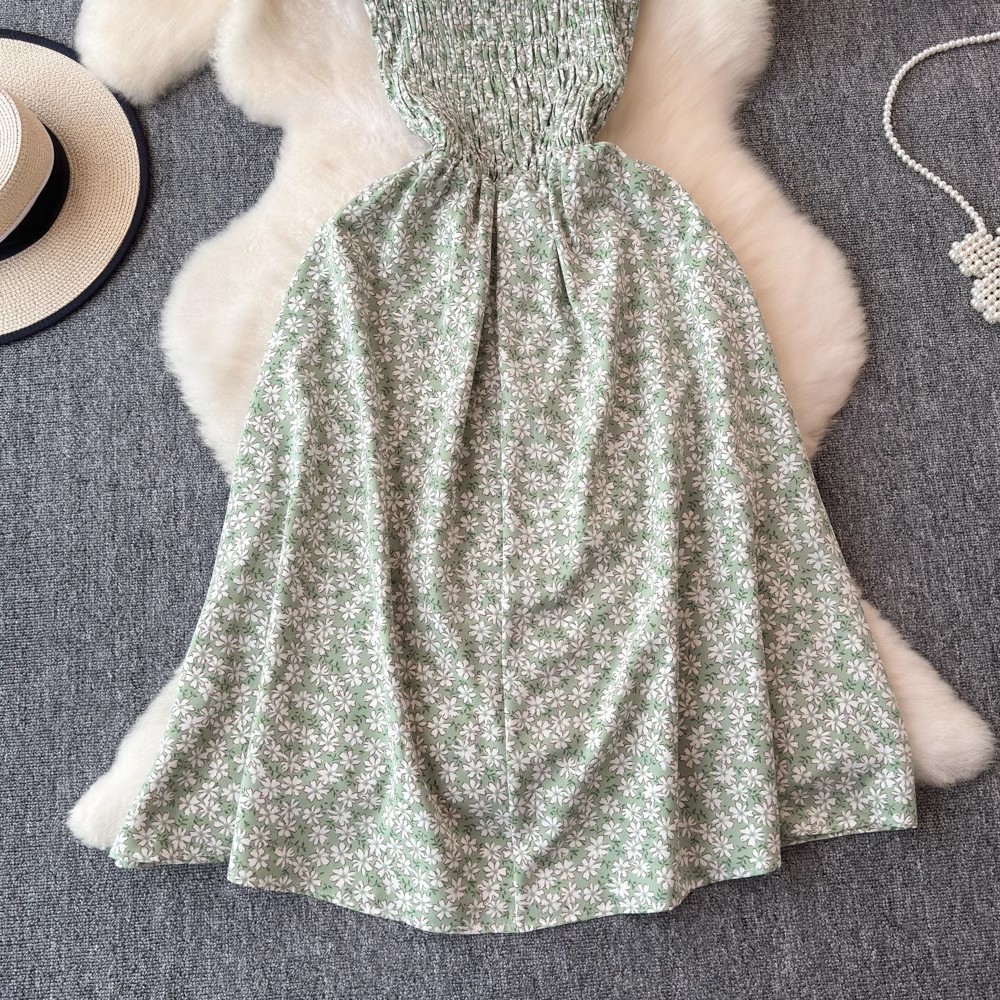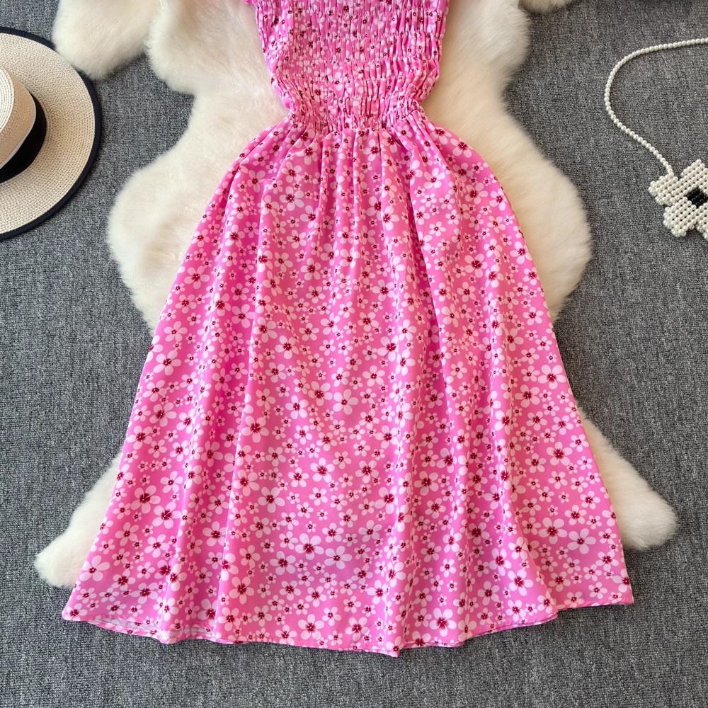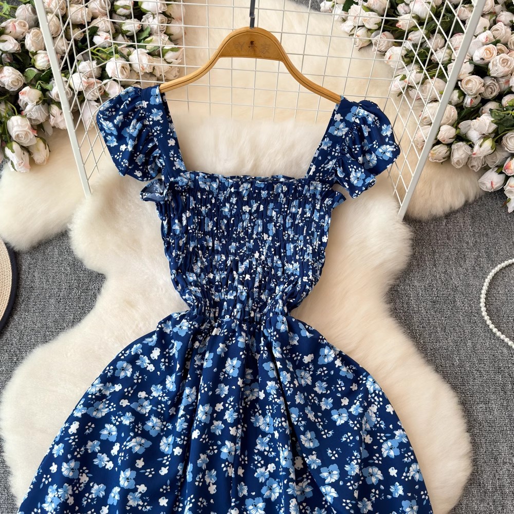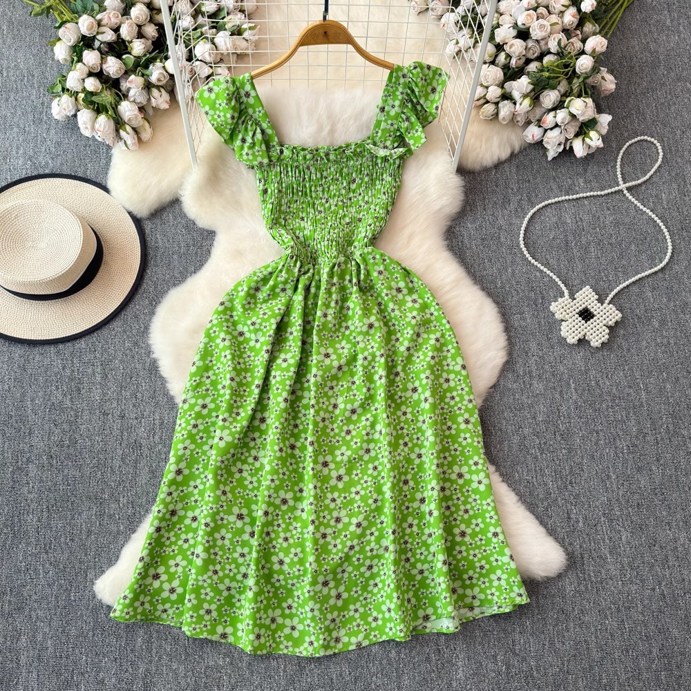 Flying Flying рукава черное цветковое платье женское лето 2024 новый продвинутый смысл талии средней и длинной чайной юбки