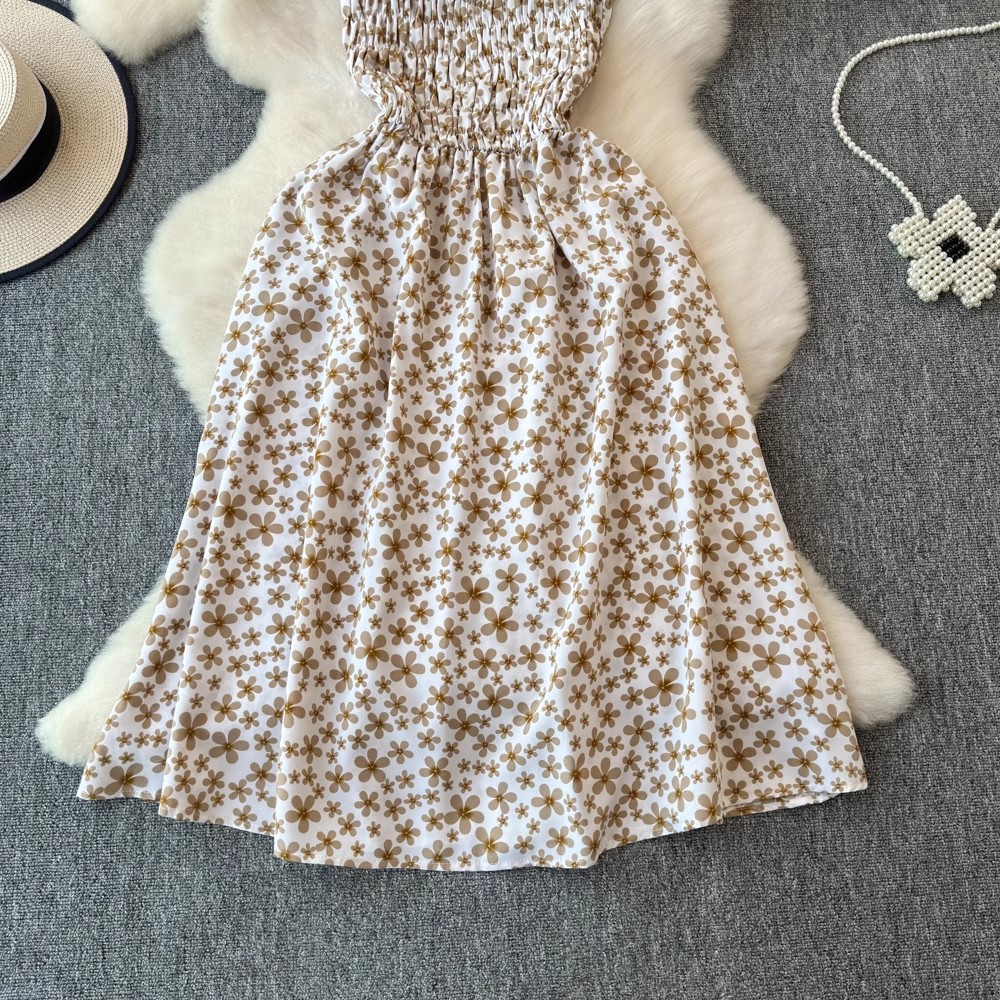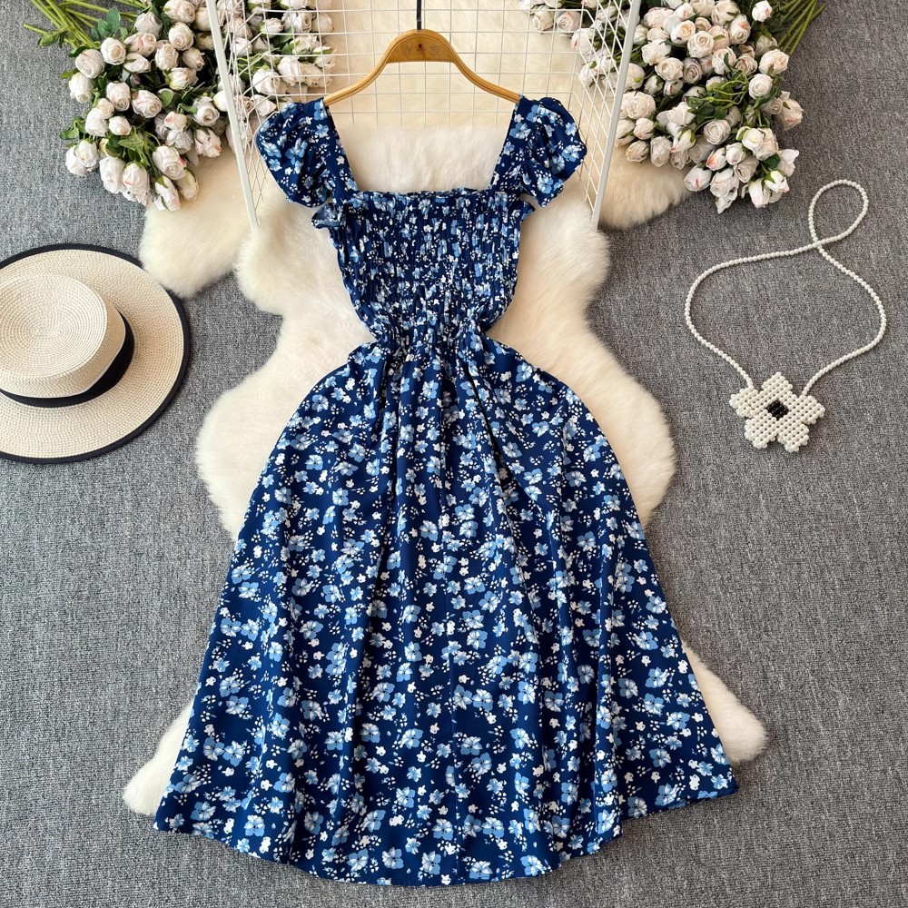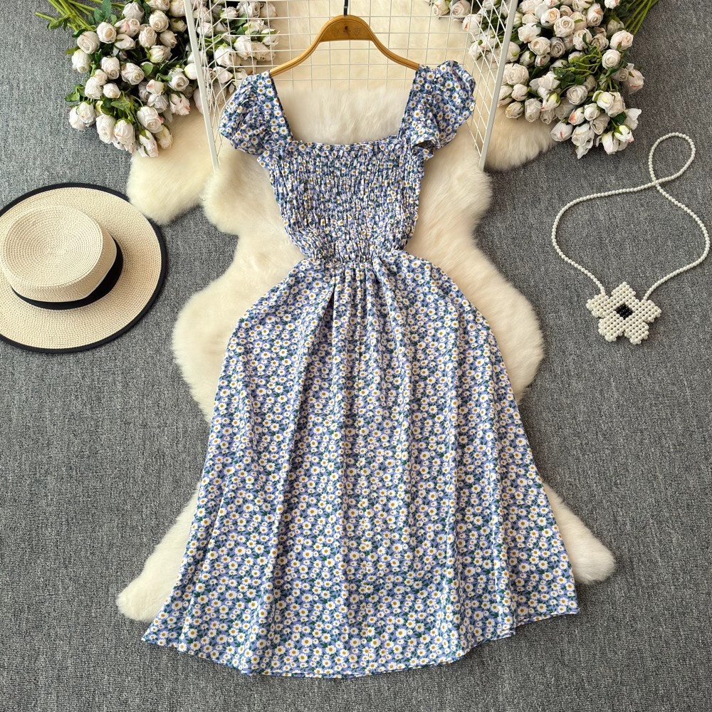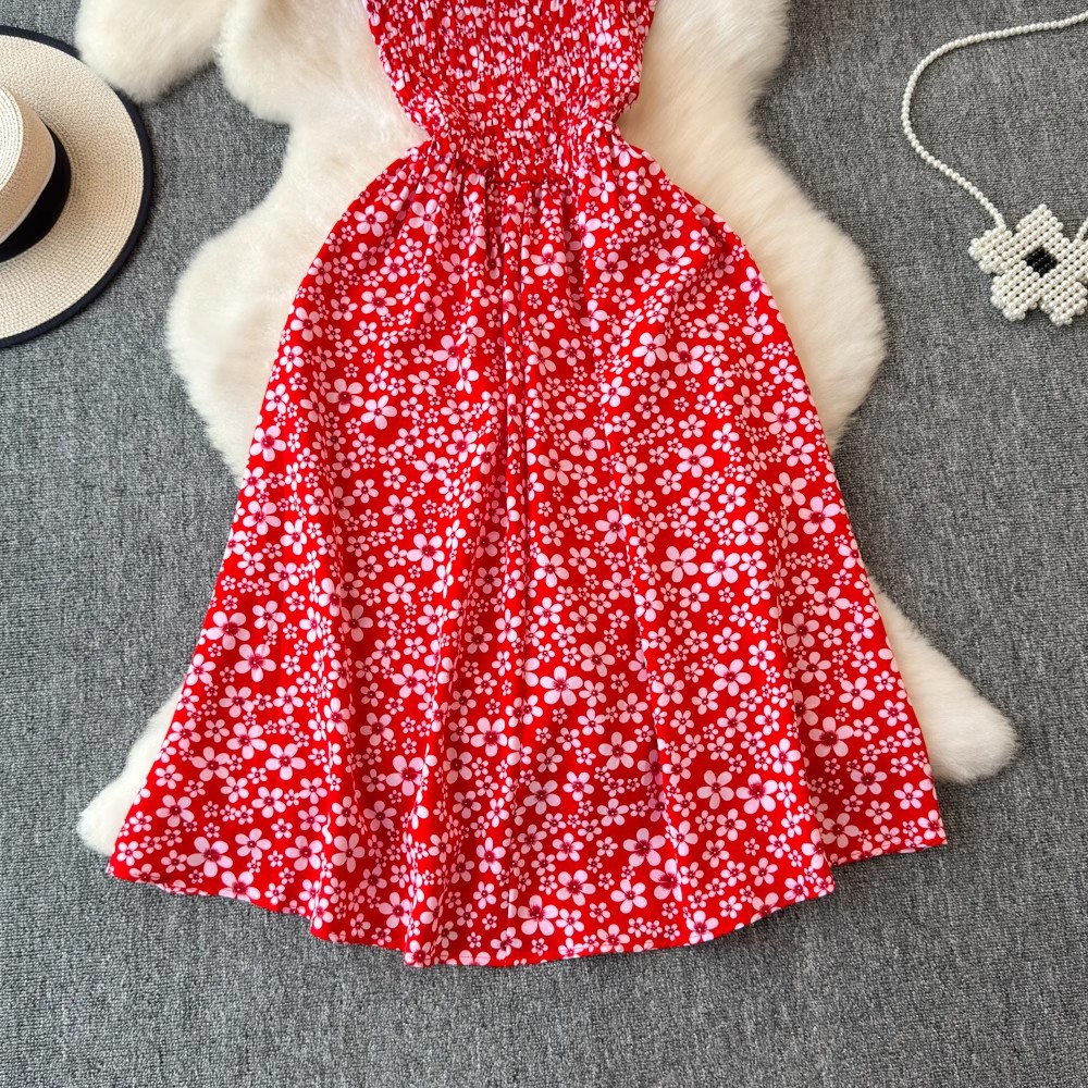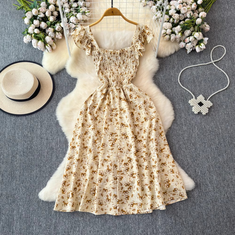 Flying Flying рукава черное цветковое платье женское лето 2024 новый продвинутый смысл талии средней и длинной чайной юбки