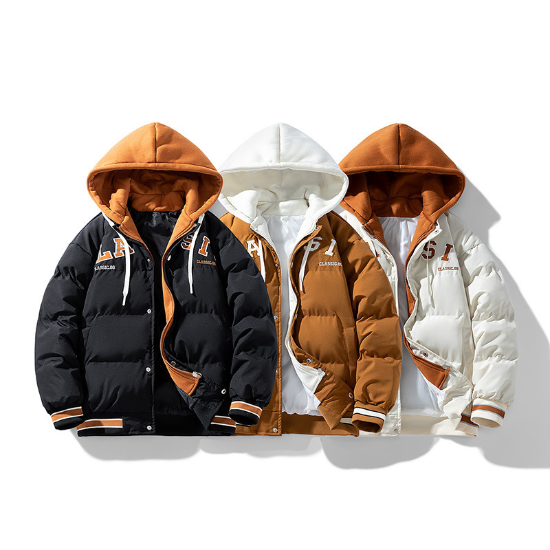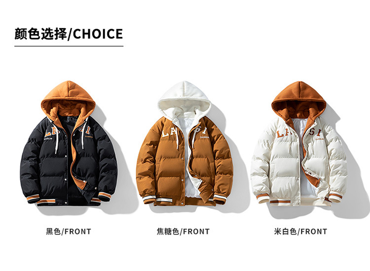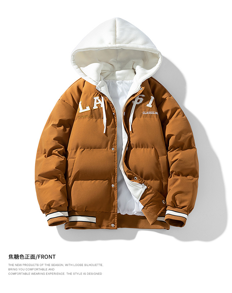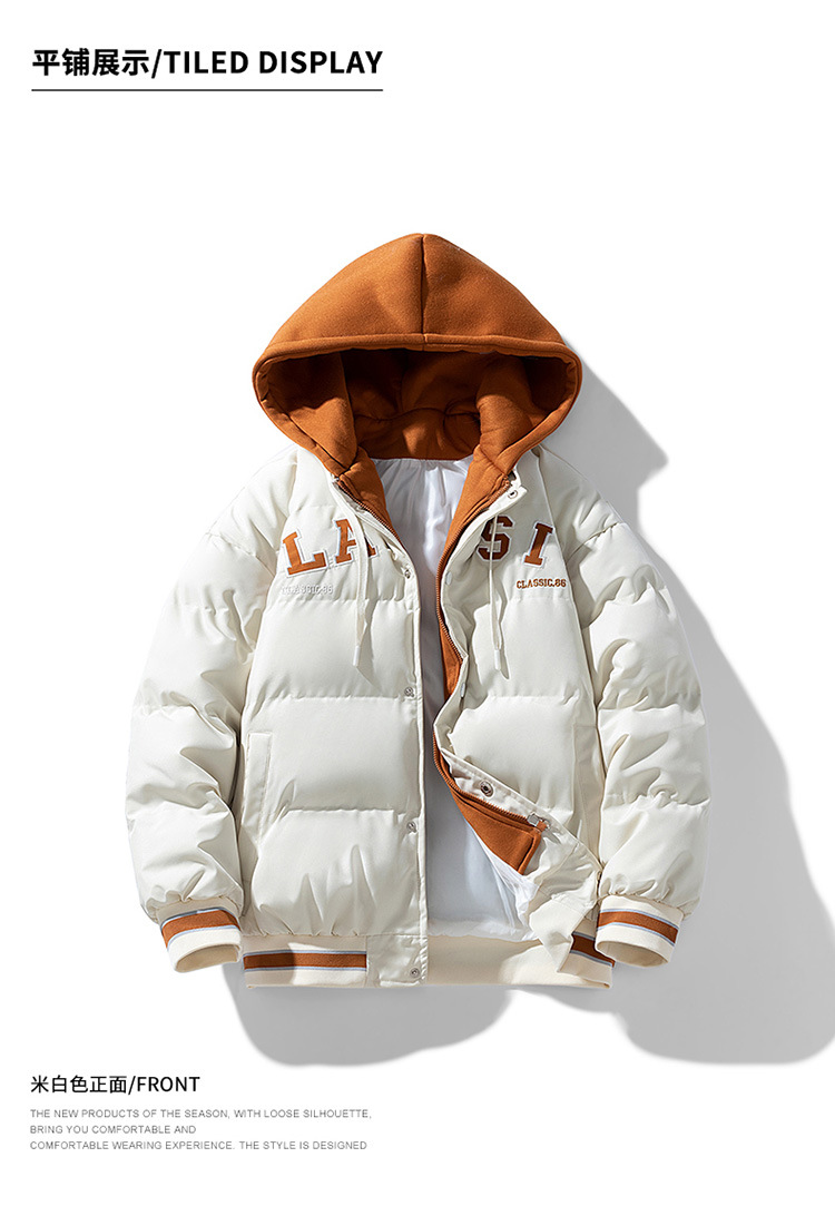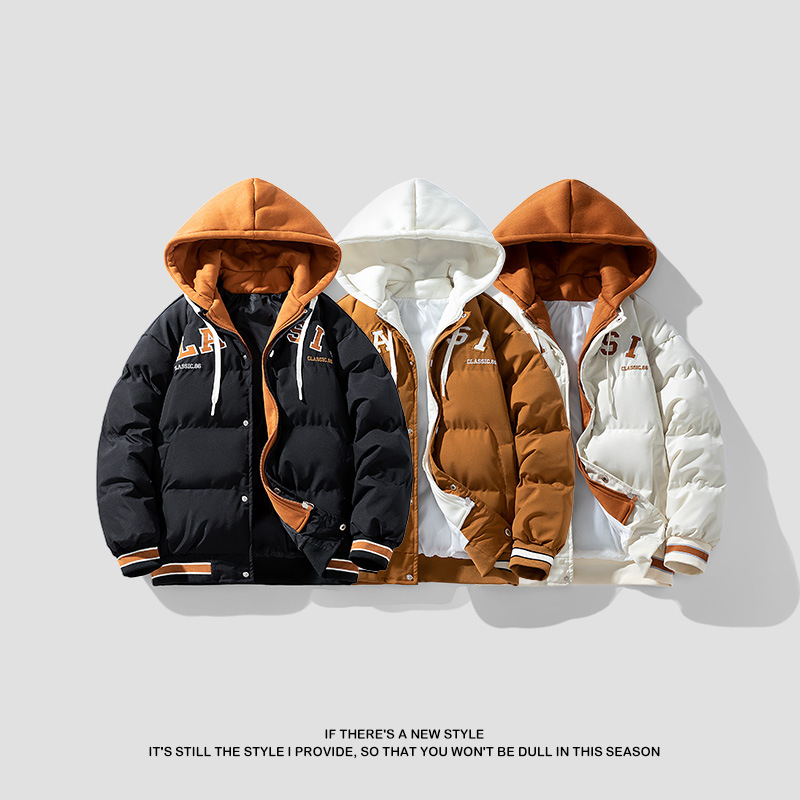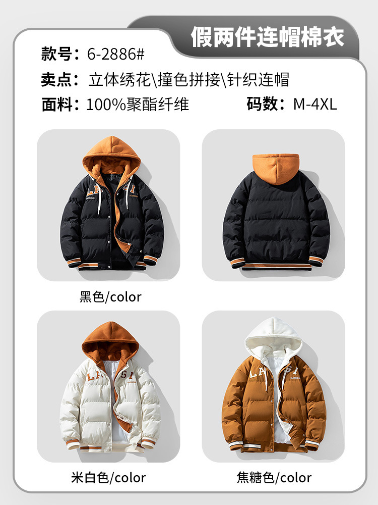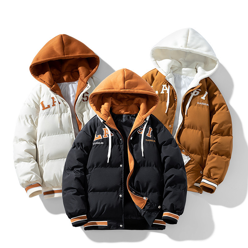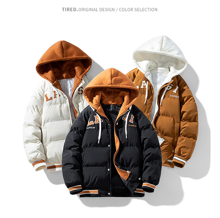2023 новые хлопковые куртки мужские зимние подростки утолщенные хлопчатобумажные костюмы с капюшоном поддельные две модные повседневные хлопчатобумажные куртки мужчины