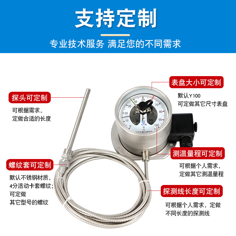 Электрическое контактное давление термометр капиллярный термометр из нержавеющей стали для промышленного использования с дистанционным измерительным поясом