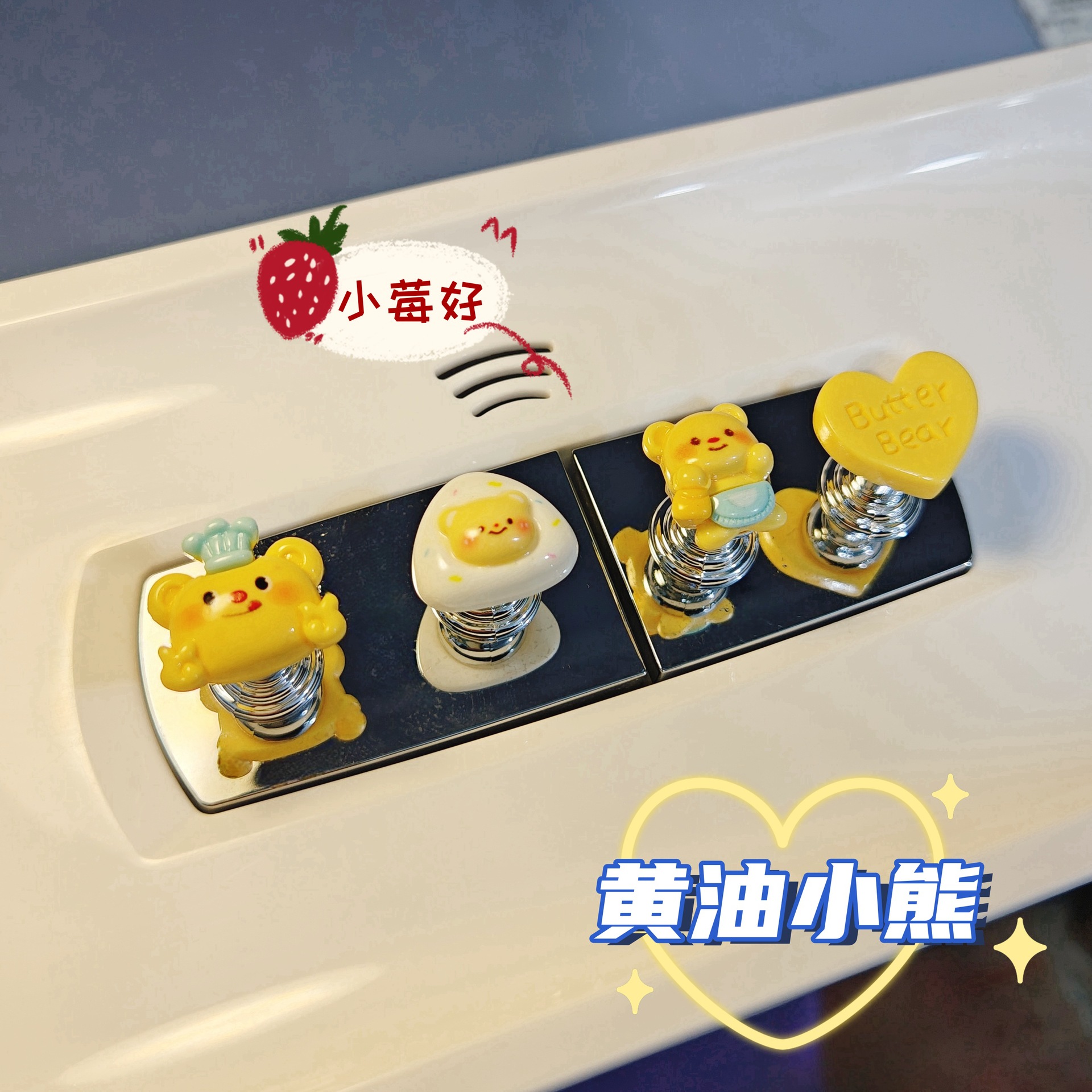 Серия «Масляный мишка» — любовь; Шляпа шеф-повара серии Butter Bear; Серия «Фиолетовый Масляный Медведь»-Сыр; Серия Purple Butter Bear — синий фартук