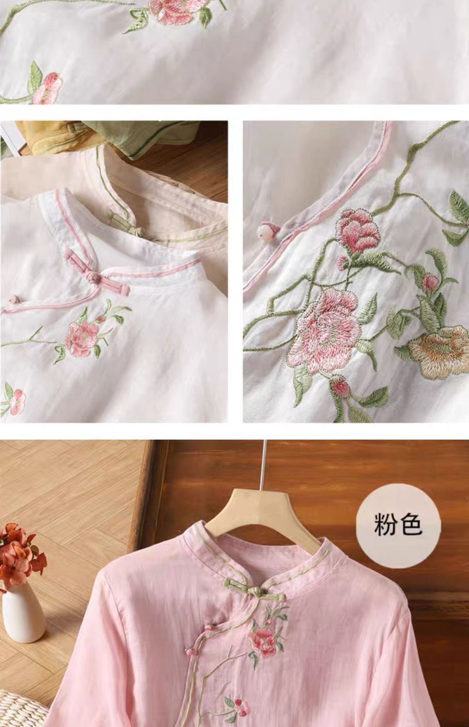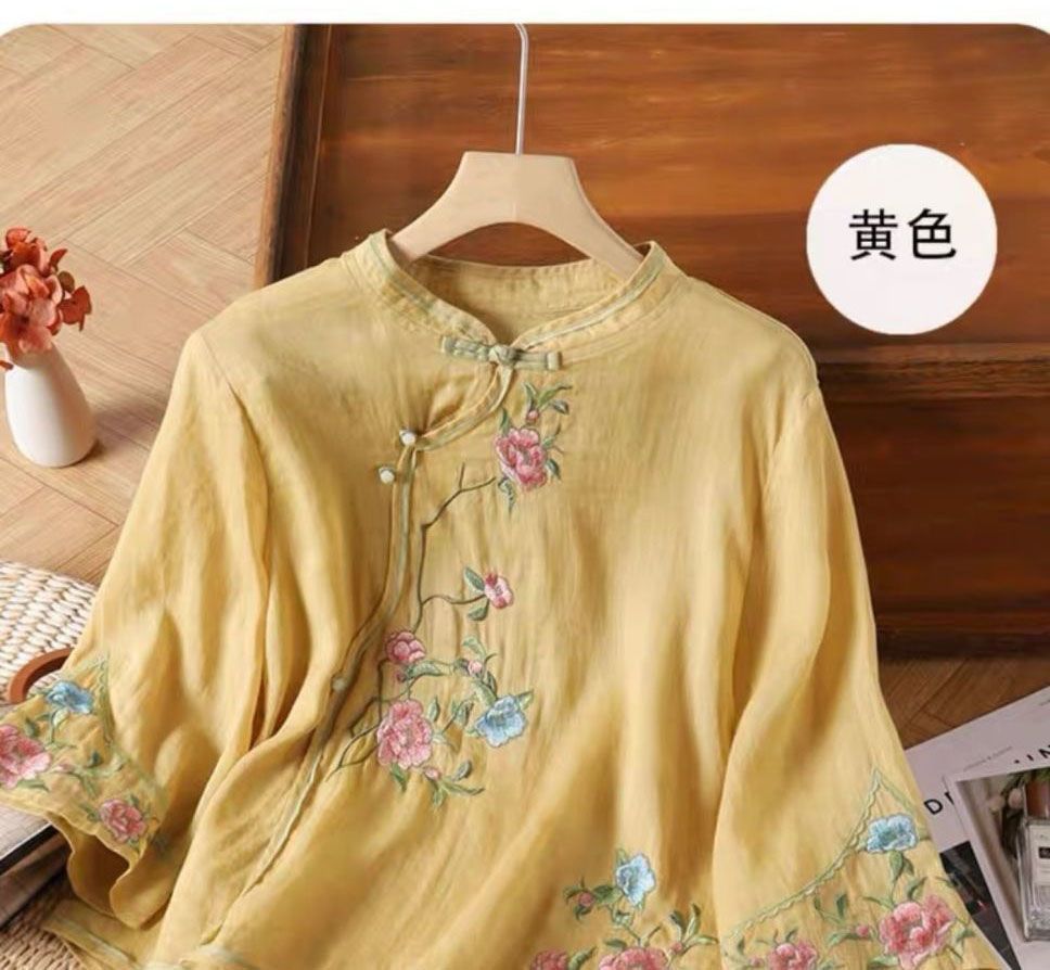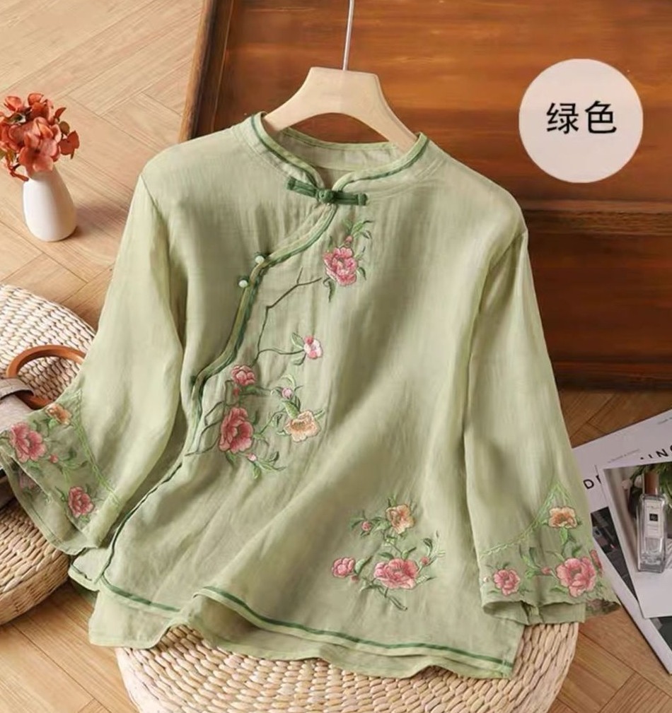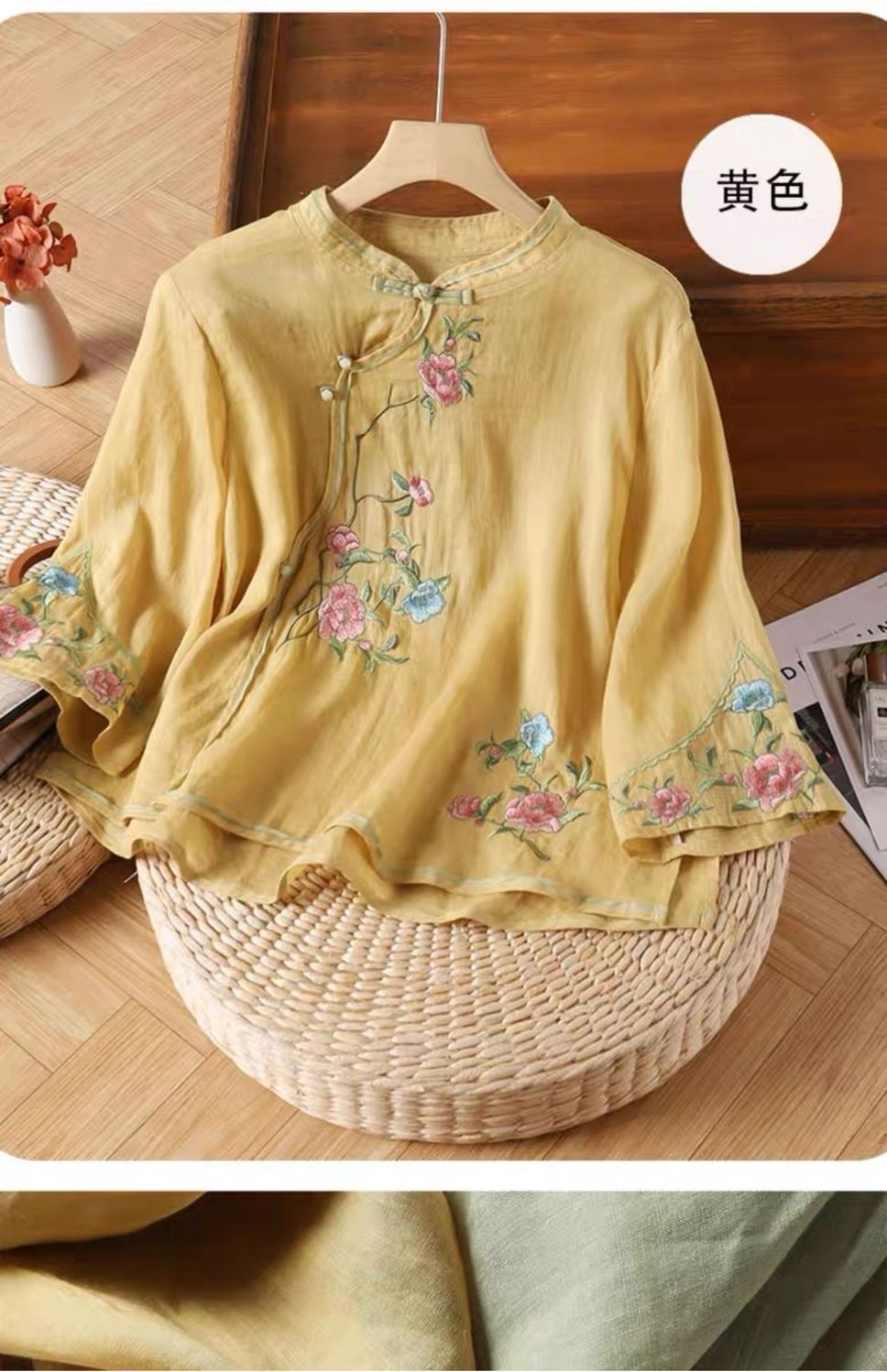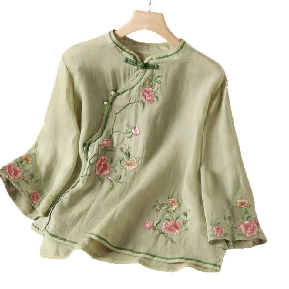 Национальный стиль Летняя хлопчатобумажная льняная рубашка женская тяжелая промышленность вышитая художественная ретро пряжка