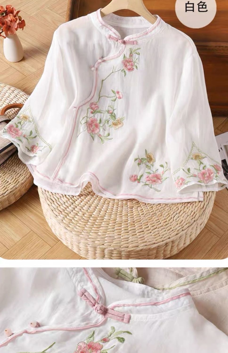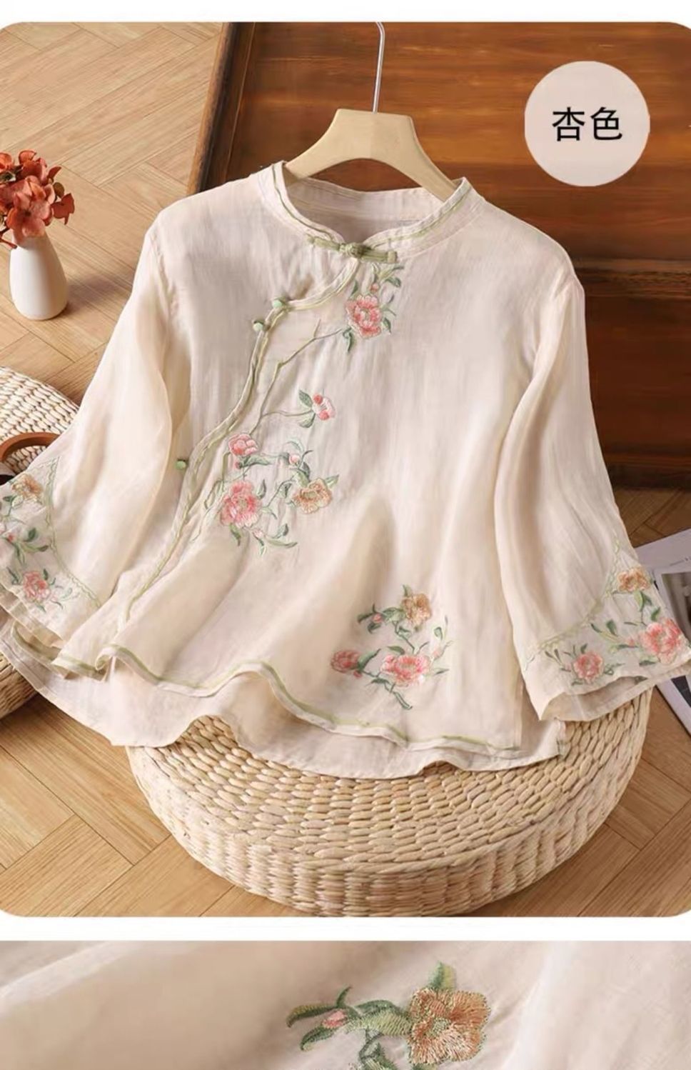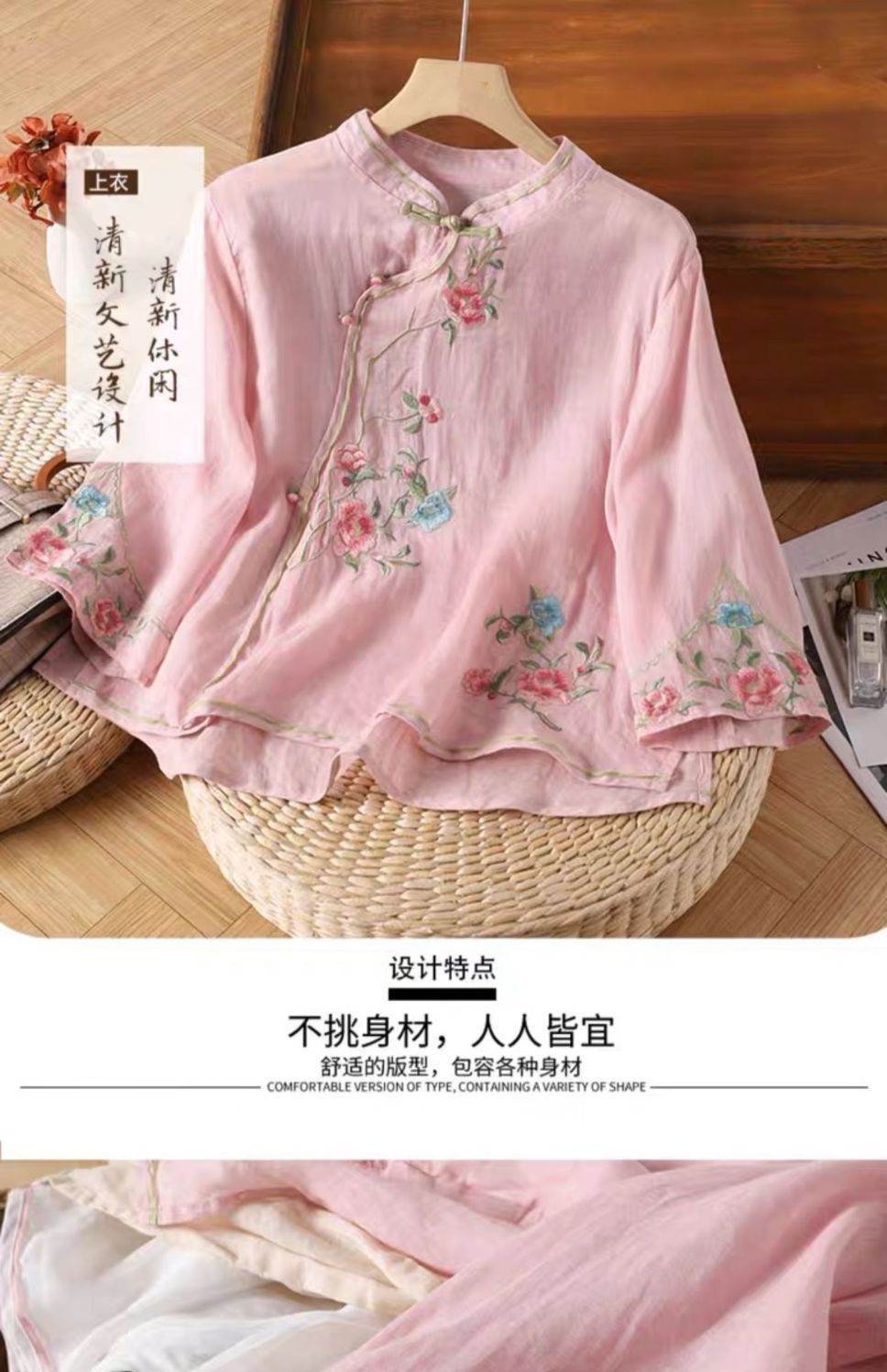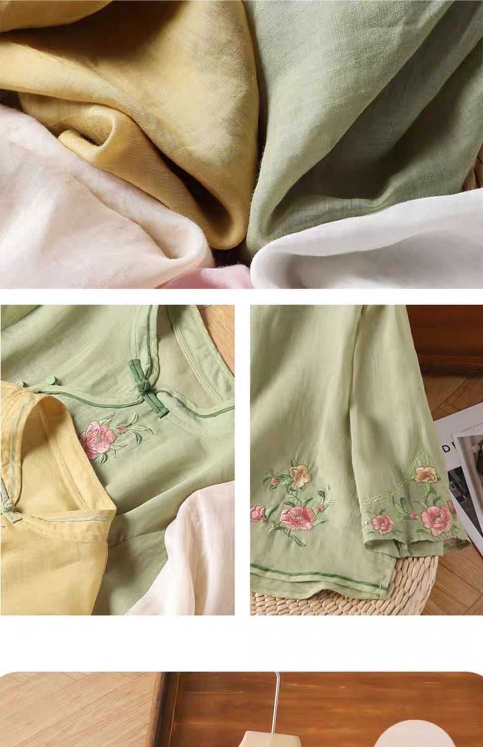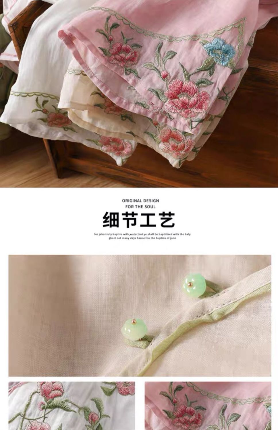 Национальный стиль Летняя хлопчатобумажная льняная рубашка женская тяжелая промышленность вышитая художественная ретро пряжка