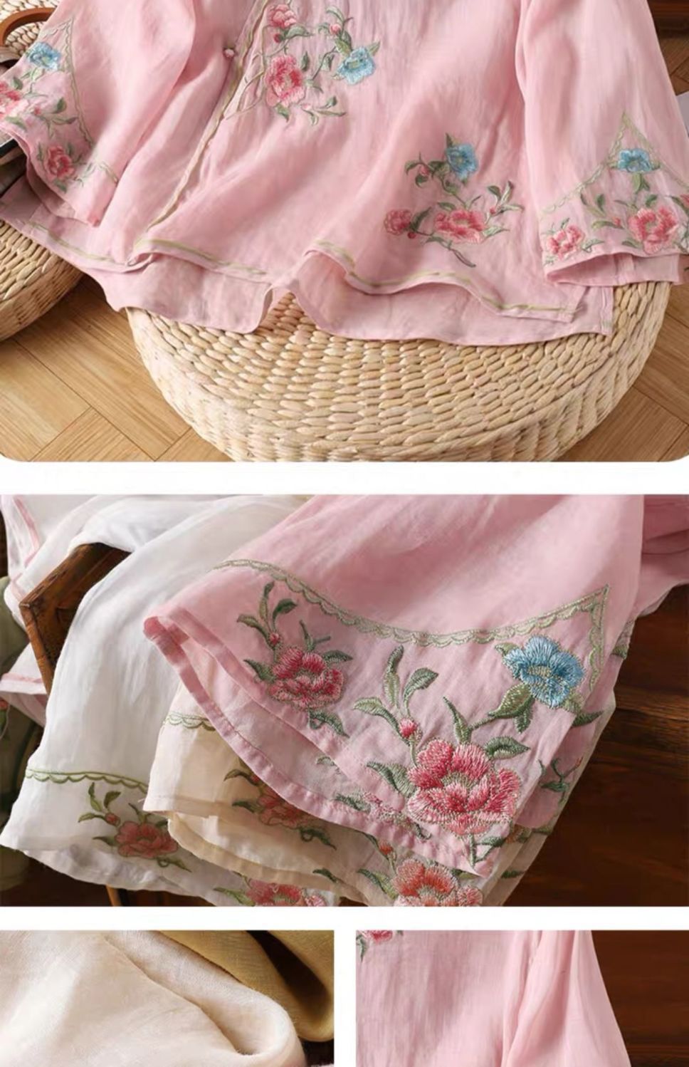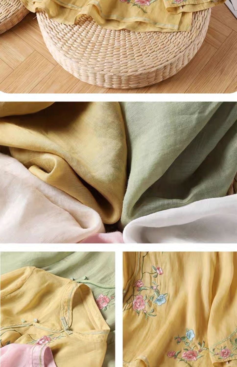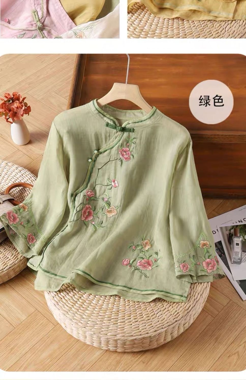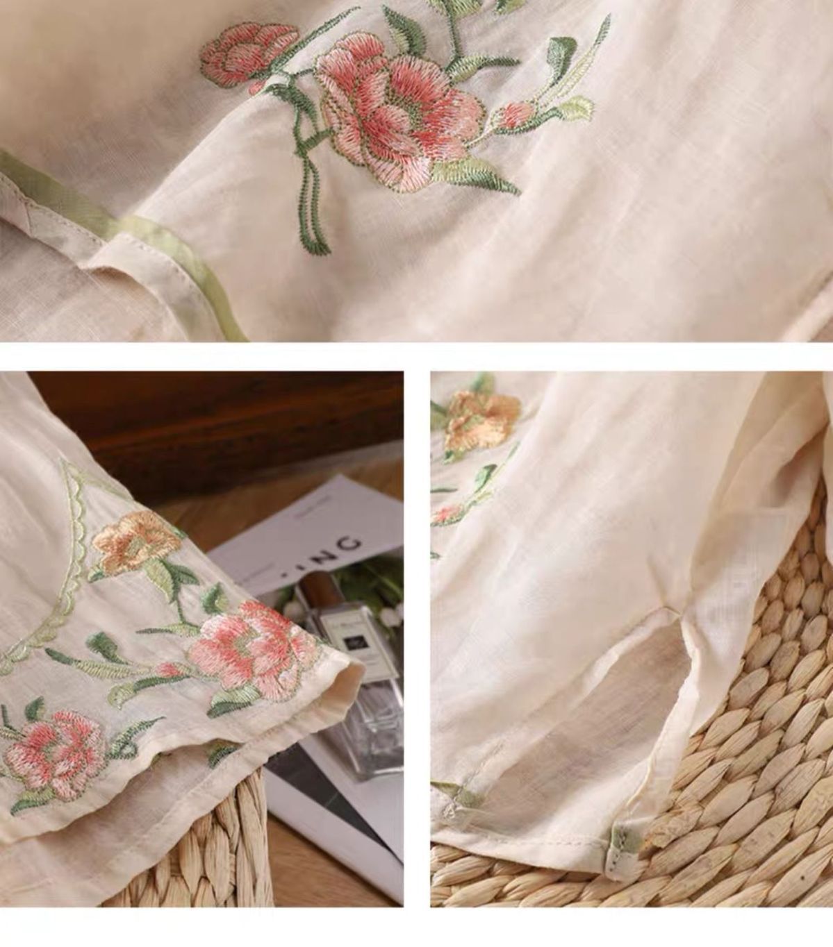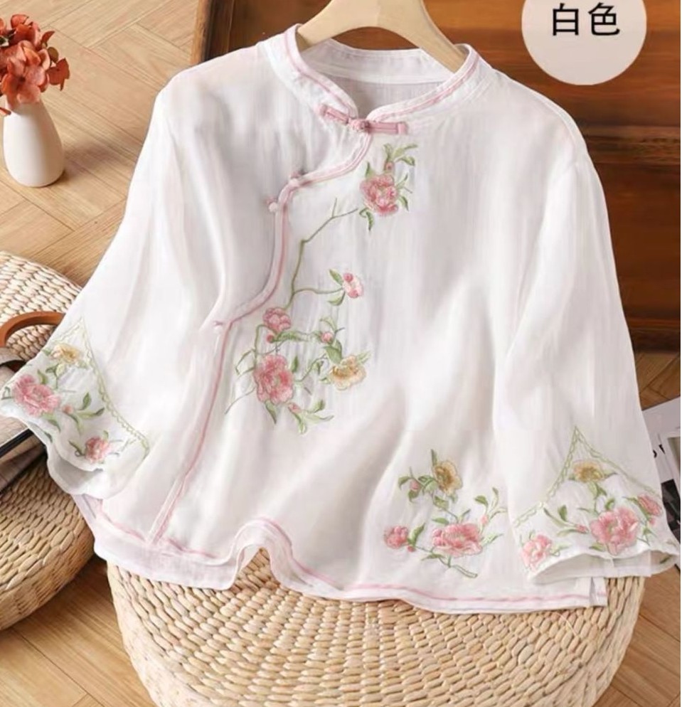 Национальный стиль Летняя хлопчатобумажная льняная рубашка женская тяжелая промышленность вышитая художественная ретро пряжка