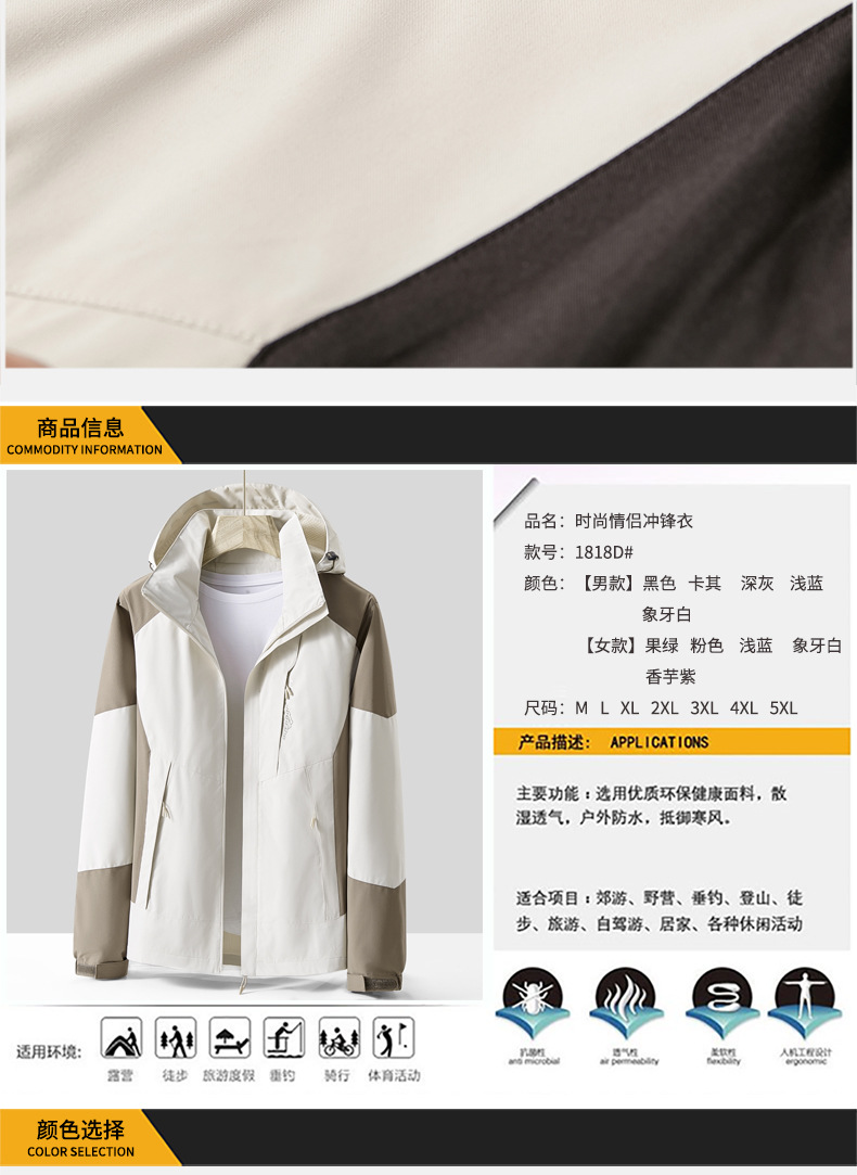 Штурмовая одежда для мужчин и женщин весной и осенью тонкий альпинистский костюм куртка сплошной цвет рабочей одежды печать логотипа групповая покупка однослойной пары 1818