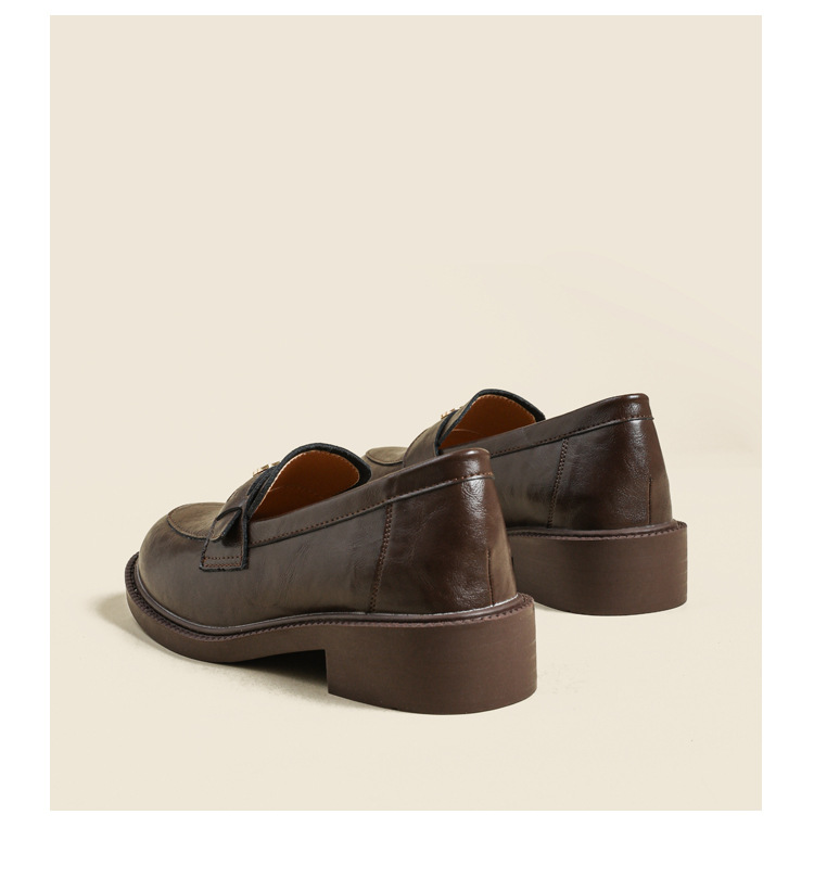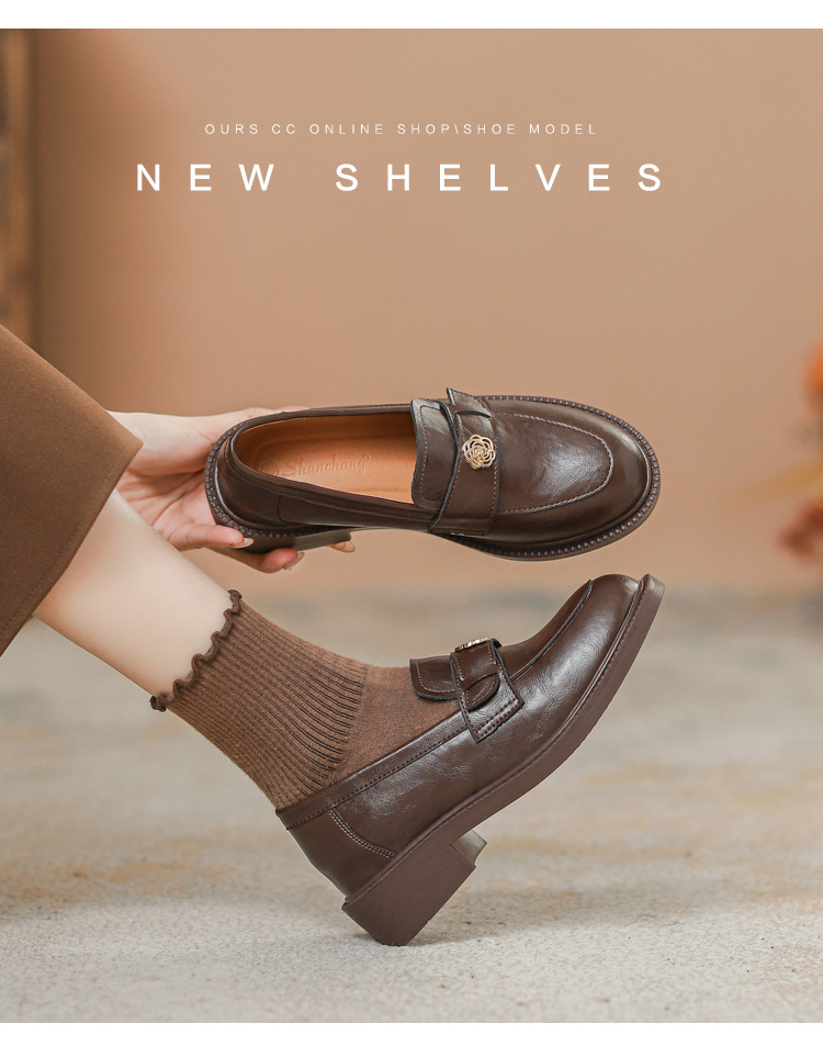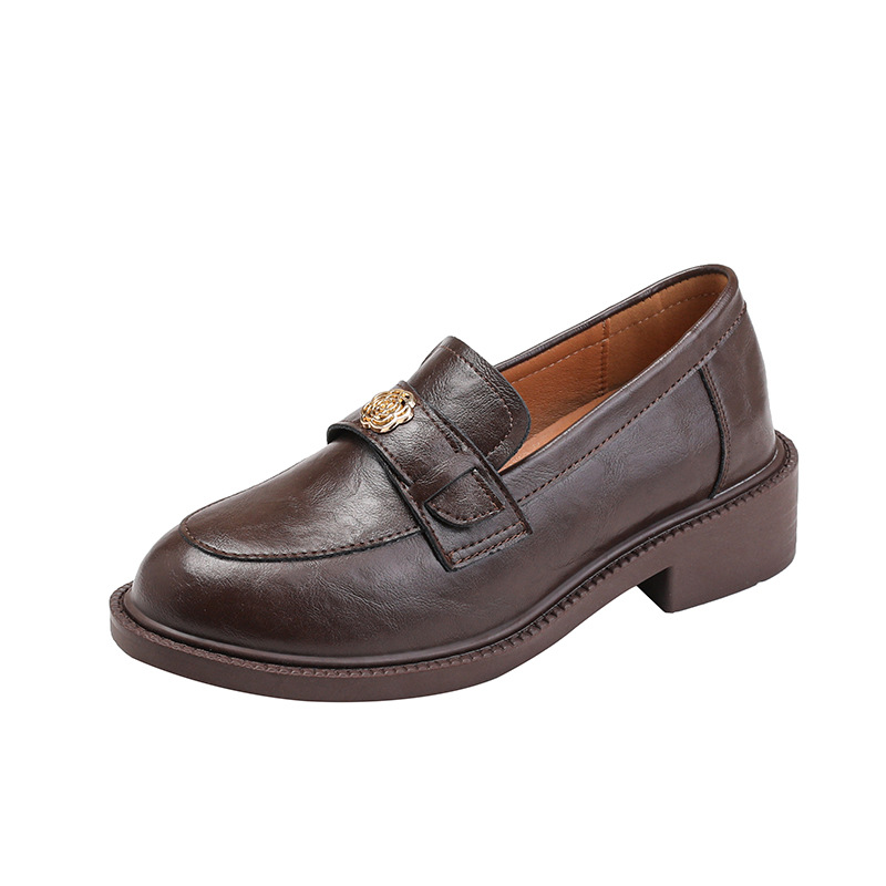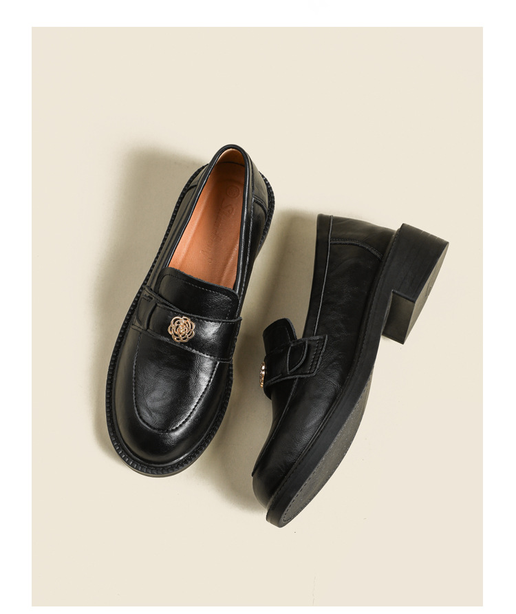 Тихая камелия с круглой головой британские кожаные туфли женские черные толстые подошвы новые ретро пригородные женские туфли Lefu обувь