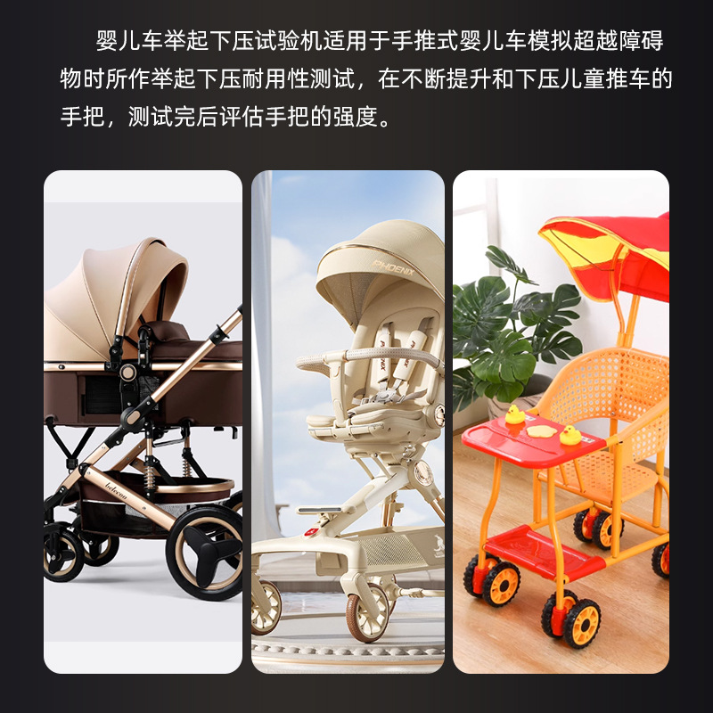 Машина для подъема и прессования детских колясок (за нестандартной настройкой обратитесь в службу поддержки клиентов); Машина для испытания на долговечность руля детской коляски (различные модели)