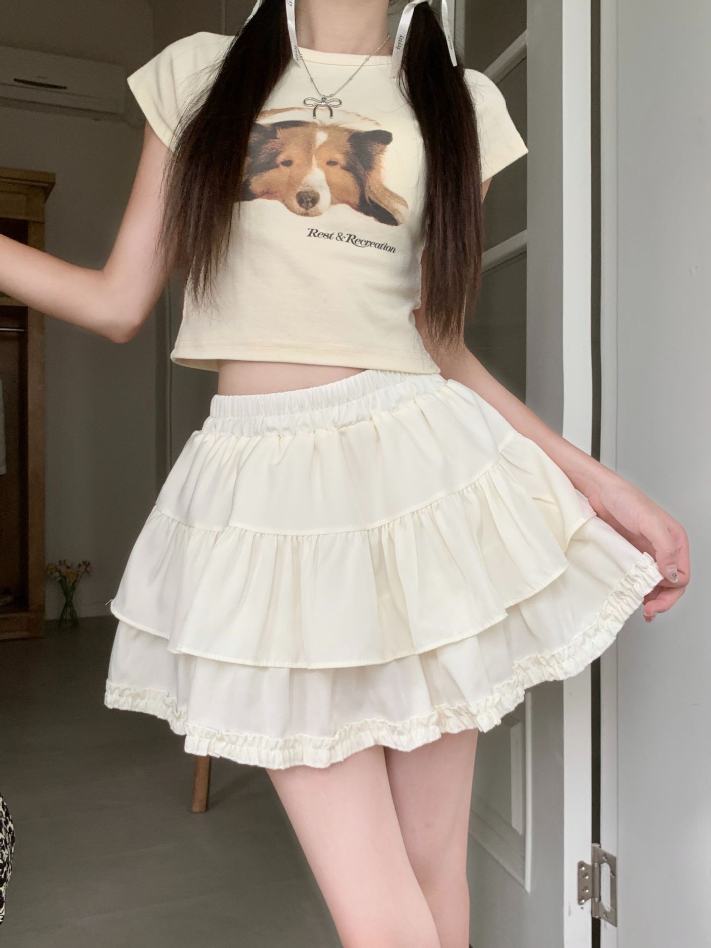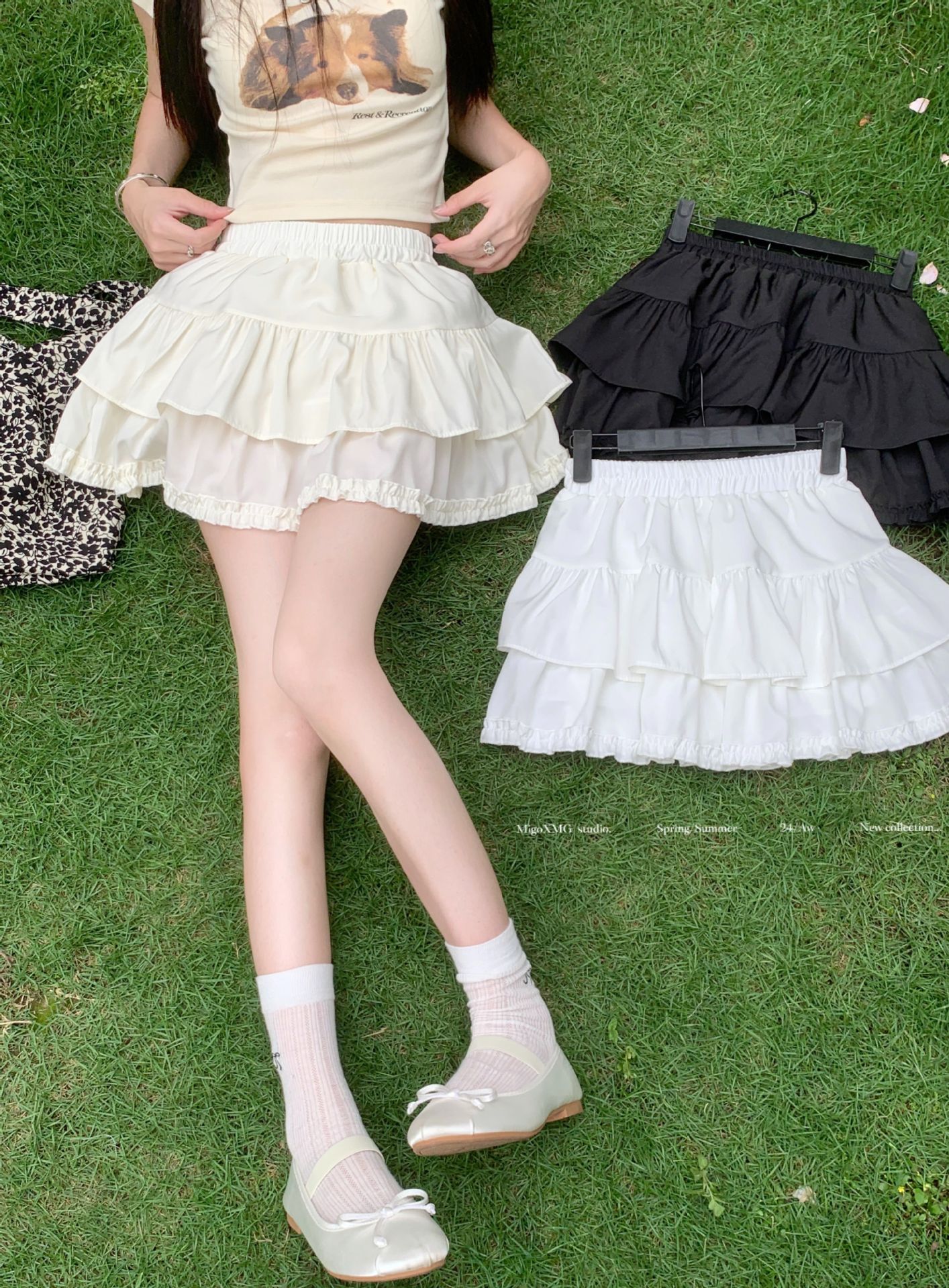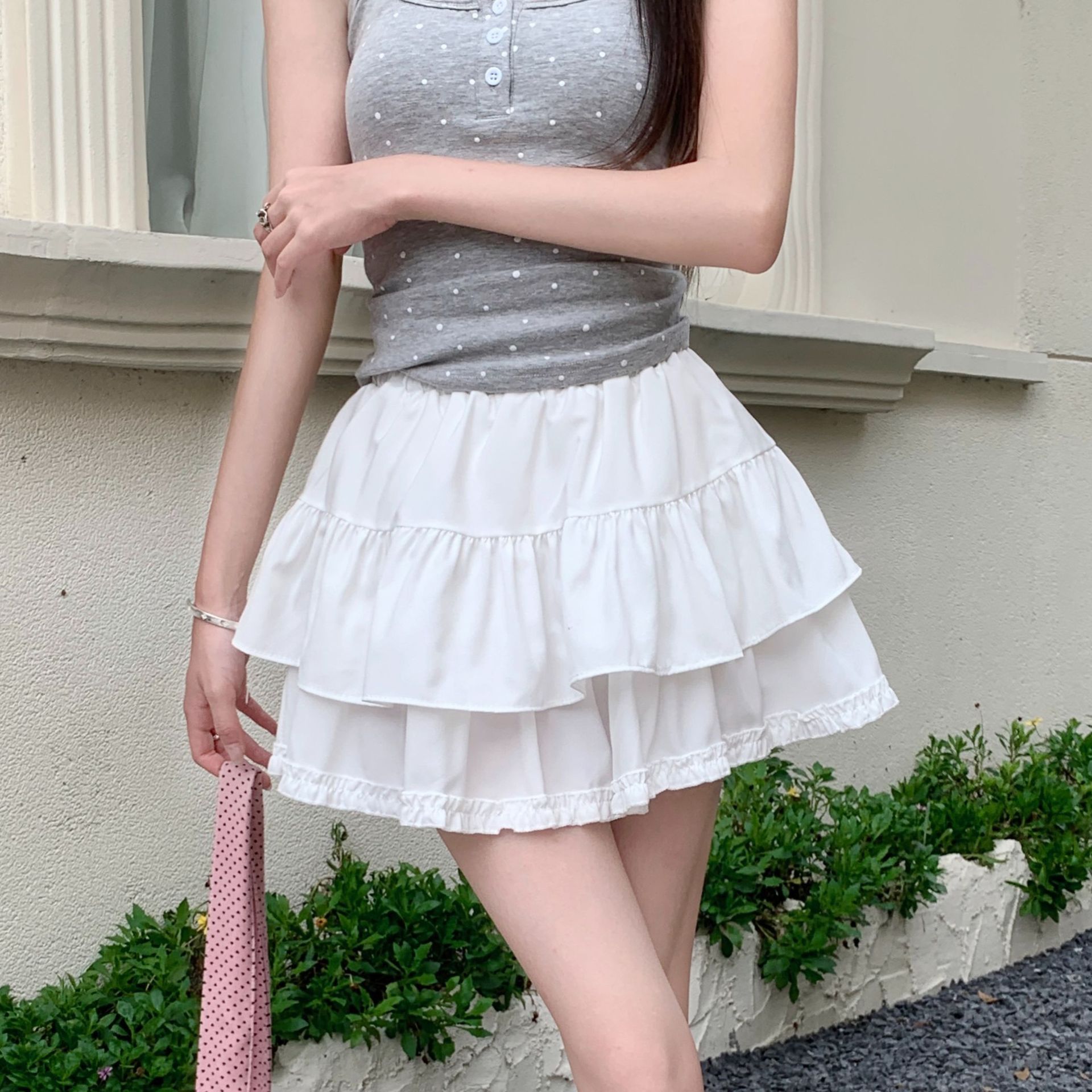 Внешняя торговля трансграничная пушистая юбка с бюстом женская летняя высокая талия тонкая и сладкая юбка торт с листьями лотоса короткая юбка анти-легкая юбка