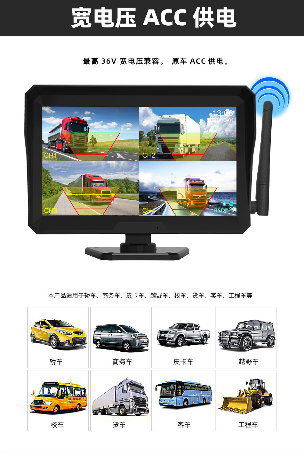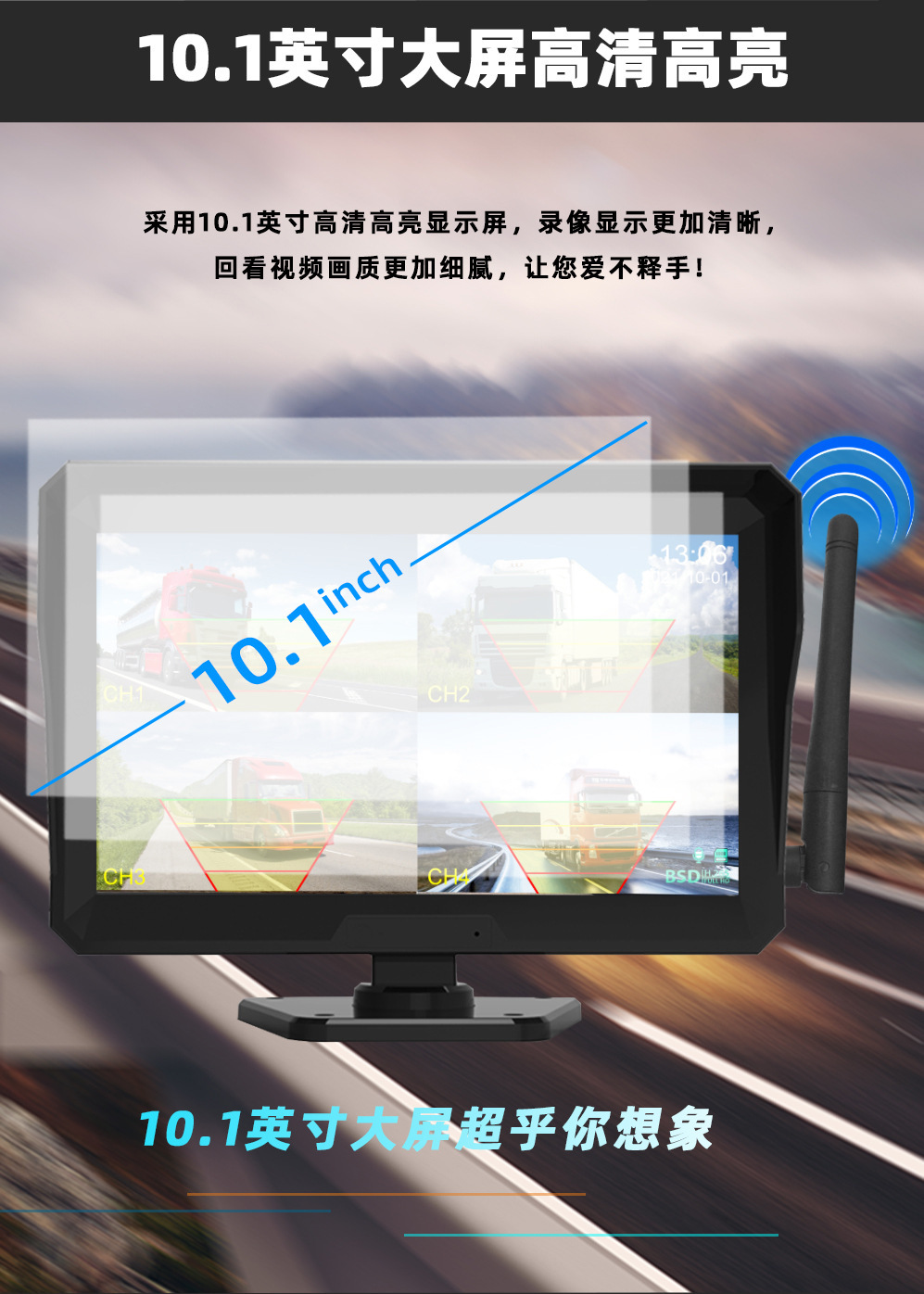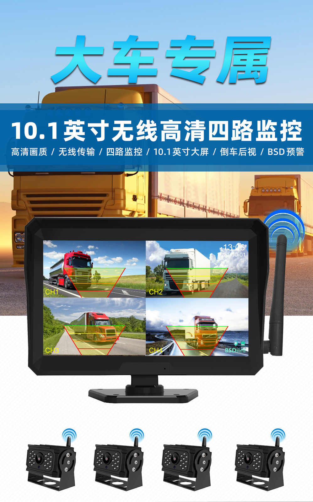 Трансграничный взрыв 10-дюймовый беспроводной грузовик монитор видеорегистратор камера передняя и задняя двойные изображения 24V