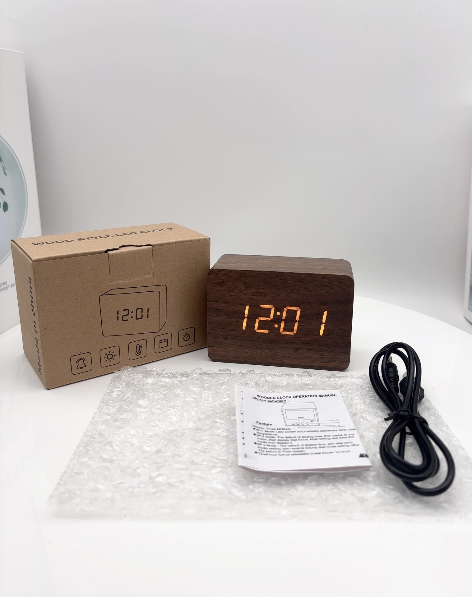 Источник фабрики спот деревянный простой настольный светодиодный будильник многофункциональный бесшумный голосовой контроль электронные умные деревянные часы