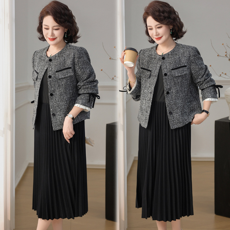 Мама весна 2025 новое платье среднего возраста женская маленькая ароматная куртка среднего возраста