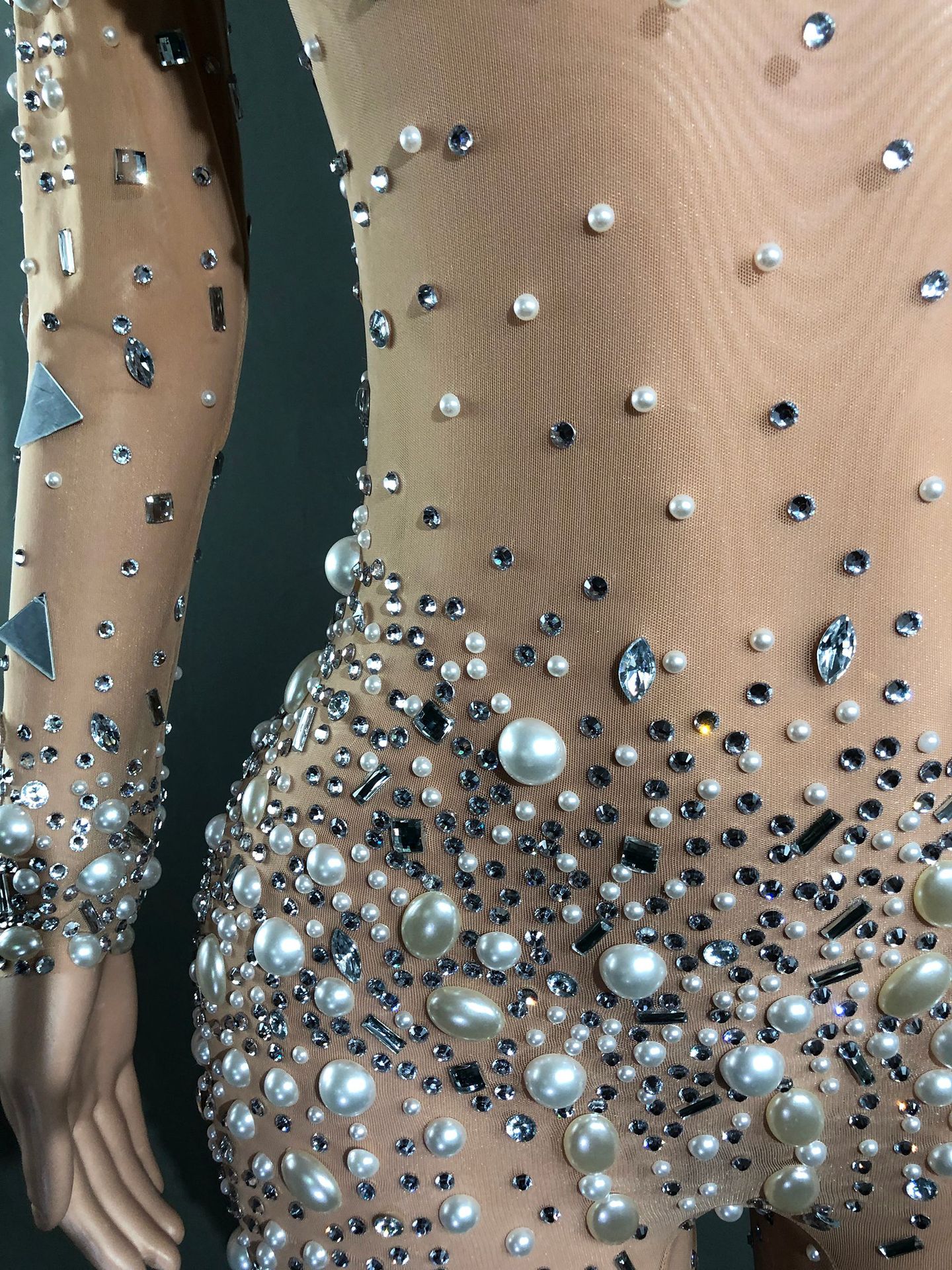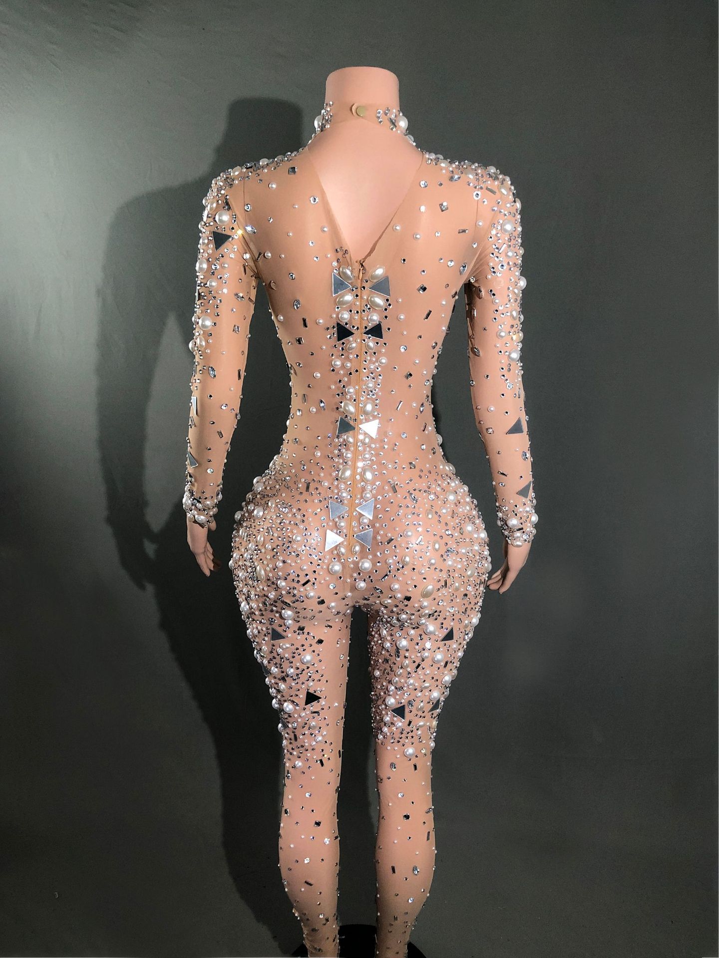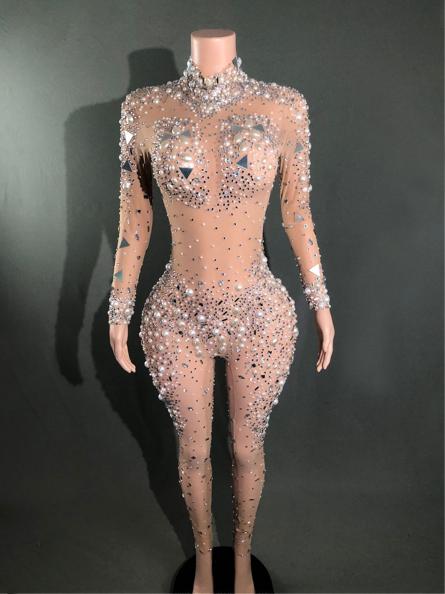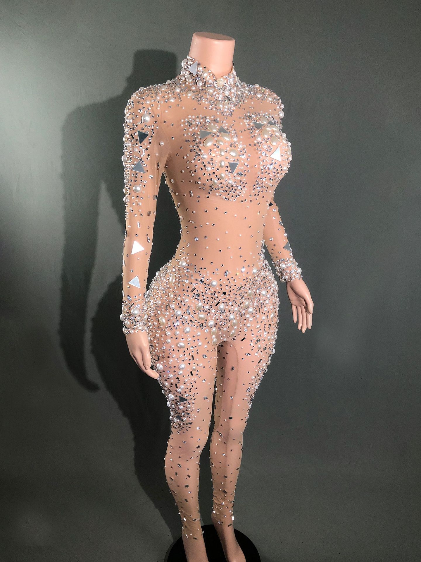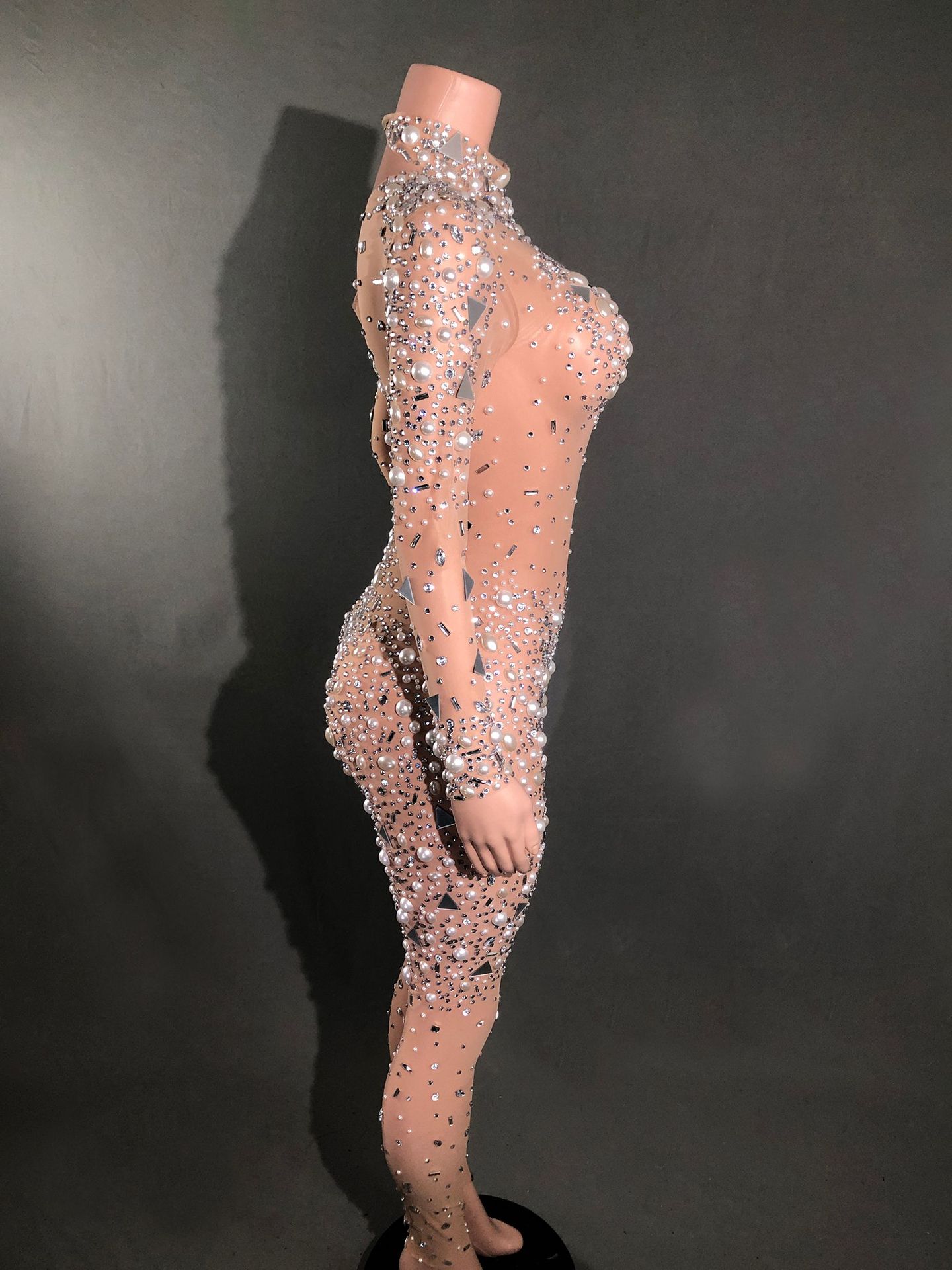 Жемчуг Горячий бриллиант без рукавов Женский новый ночной костюм Бар Вечеринка с высокой талией Тонкий вечерний костюм