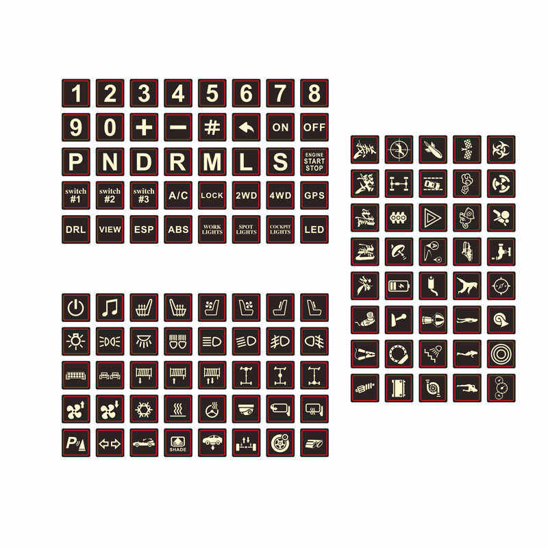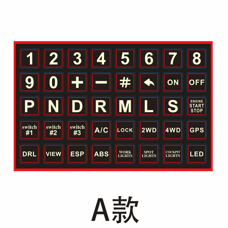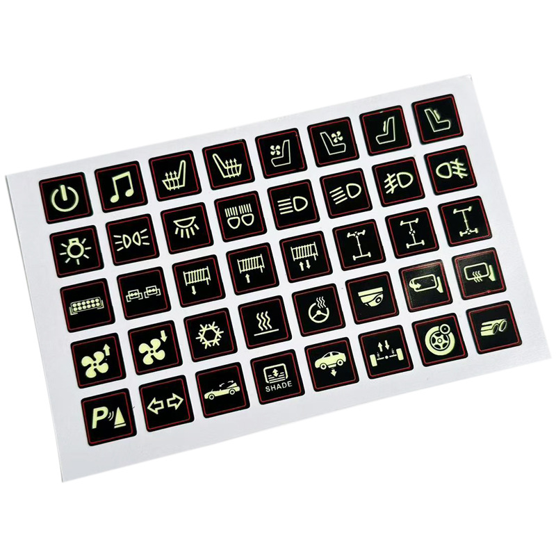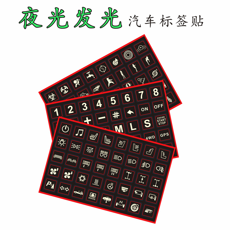 Автомобильная модификация кнопки наклейки флуоресцентный зеленый светящийся свет светящийся английский цифровой переключатель самоклеящаяся этикетка бумага водонепроницаемая и износостойкая
