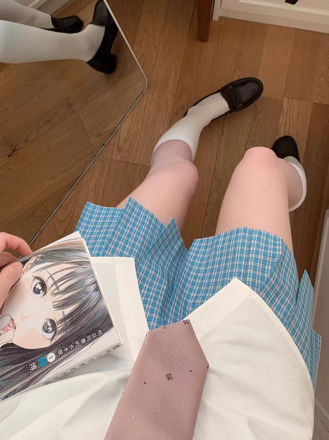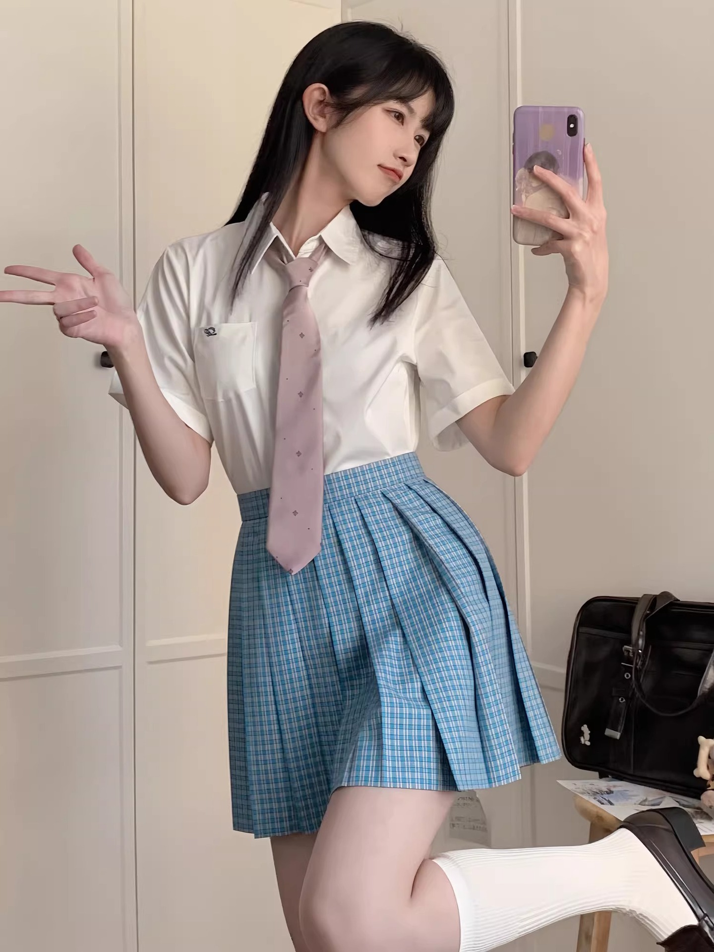Юбка одинарная синяя 39 сосна; Синяя юбка 39 из сосны с галстуком-бабочкой в тот же стиль; Рубашка с длинными рукавами и V-образным вырезом; Рубашка с V-образным вырезом и короткими рукавами; Если вам нужна коробка для самолета, пожалуйста, свяжитесь с нами