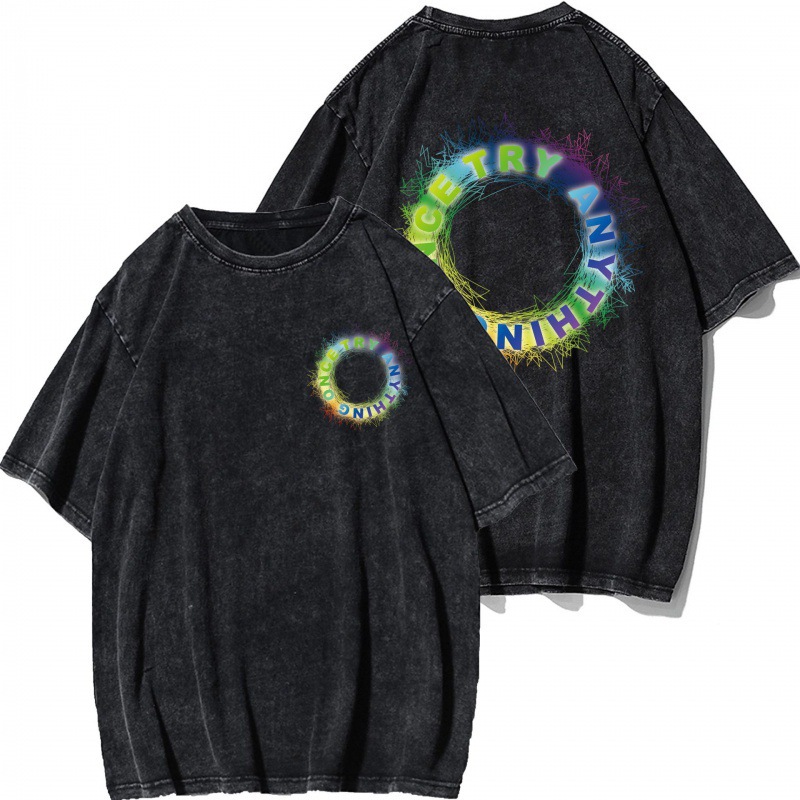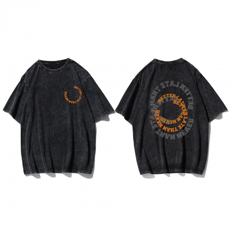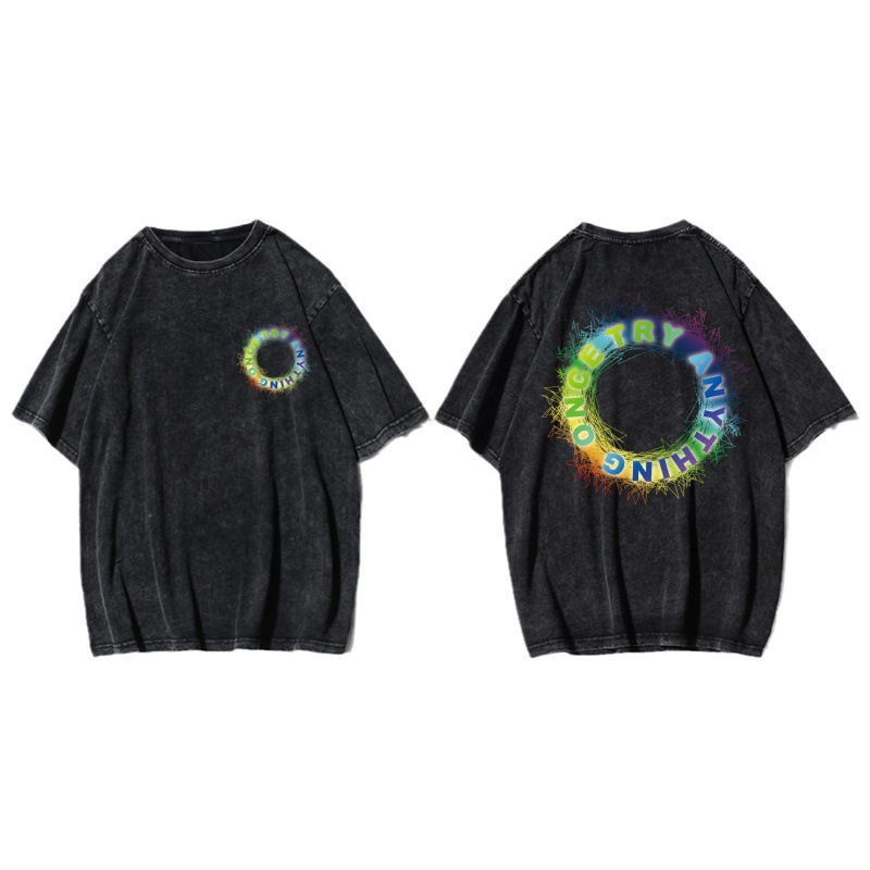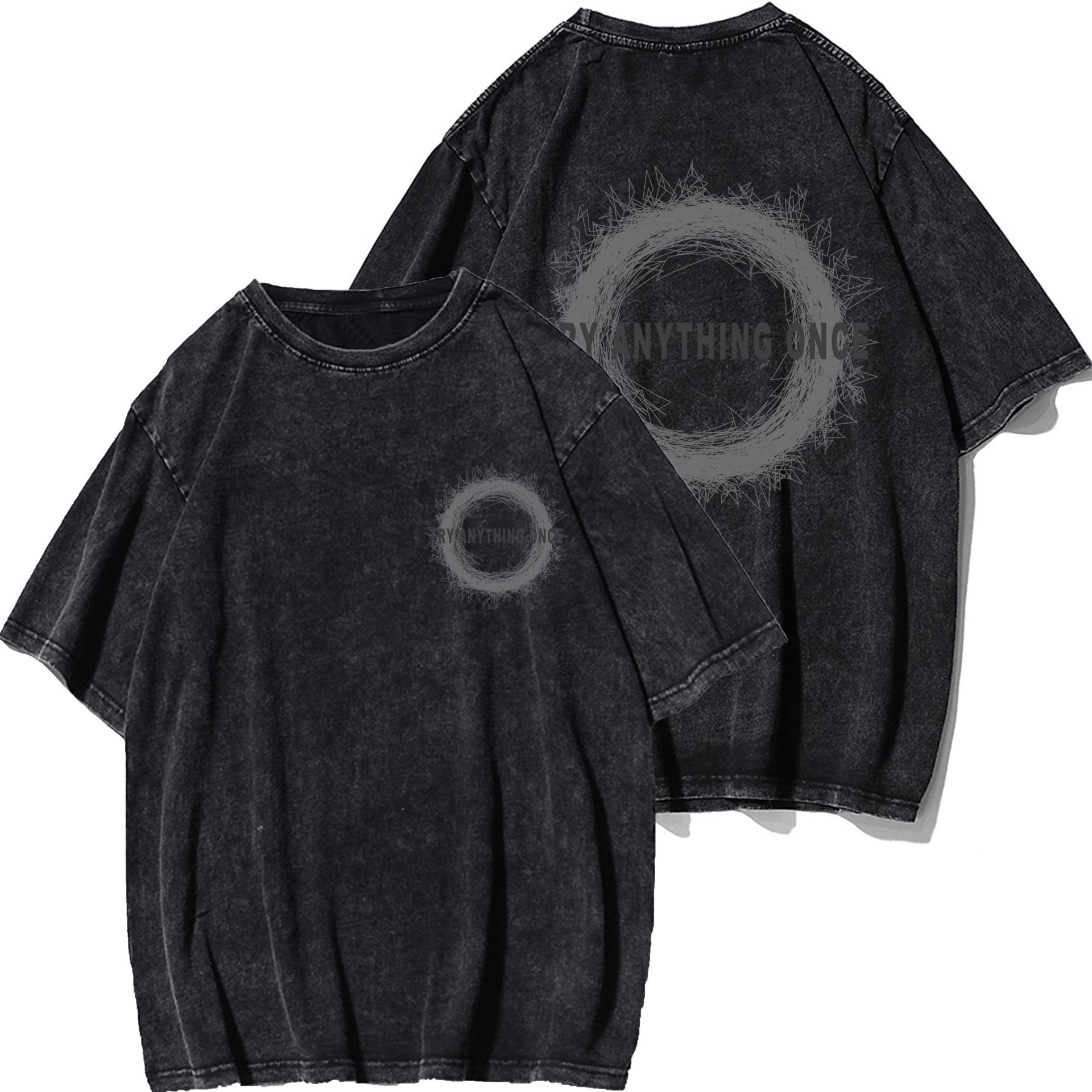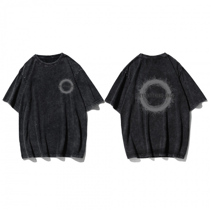 Трансграничный тяжелый хлопок для мытья воды черный креативный дизайн с короткими рукавами футболка пара одежда мода ins свободные топы большого размера