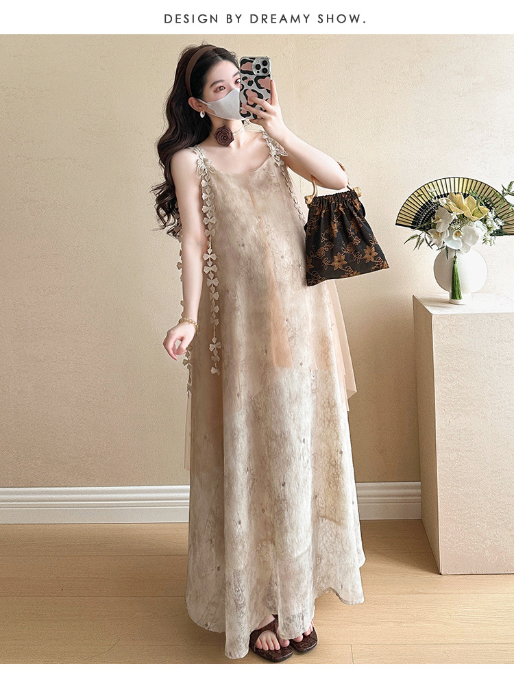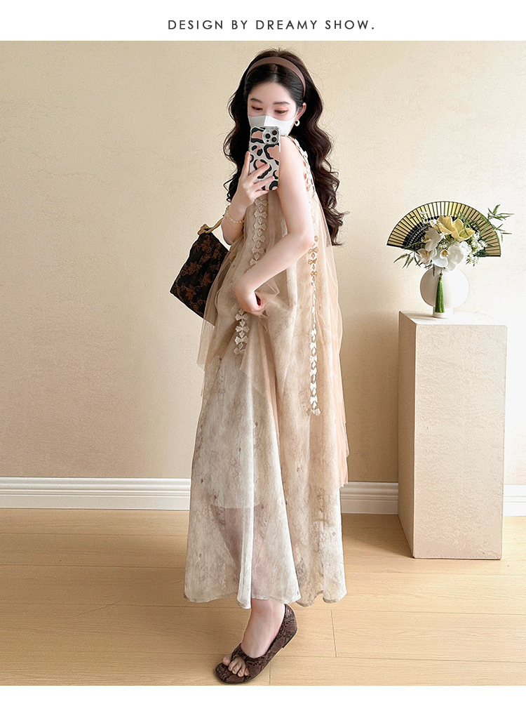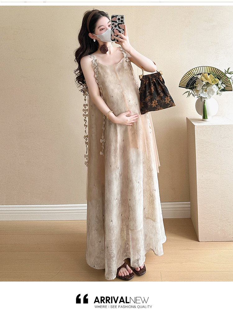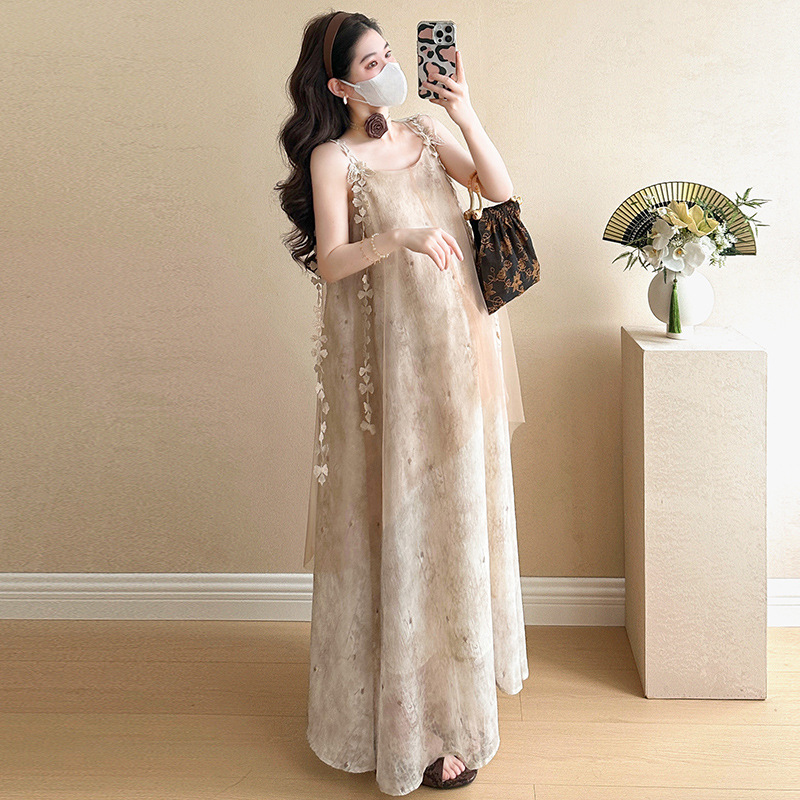 Пятно 2025 новый летний темперамент супер фея Корейское платье материнства Солнцезащитный Одежда материнства платья