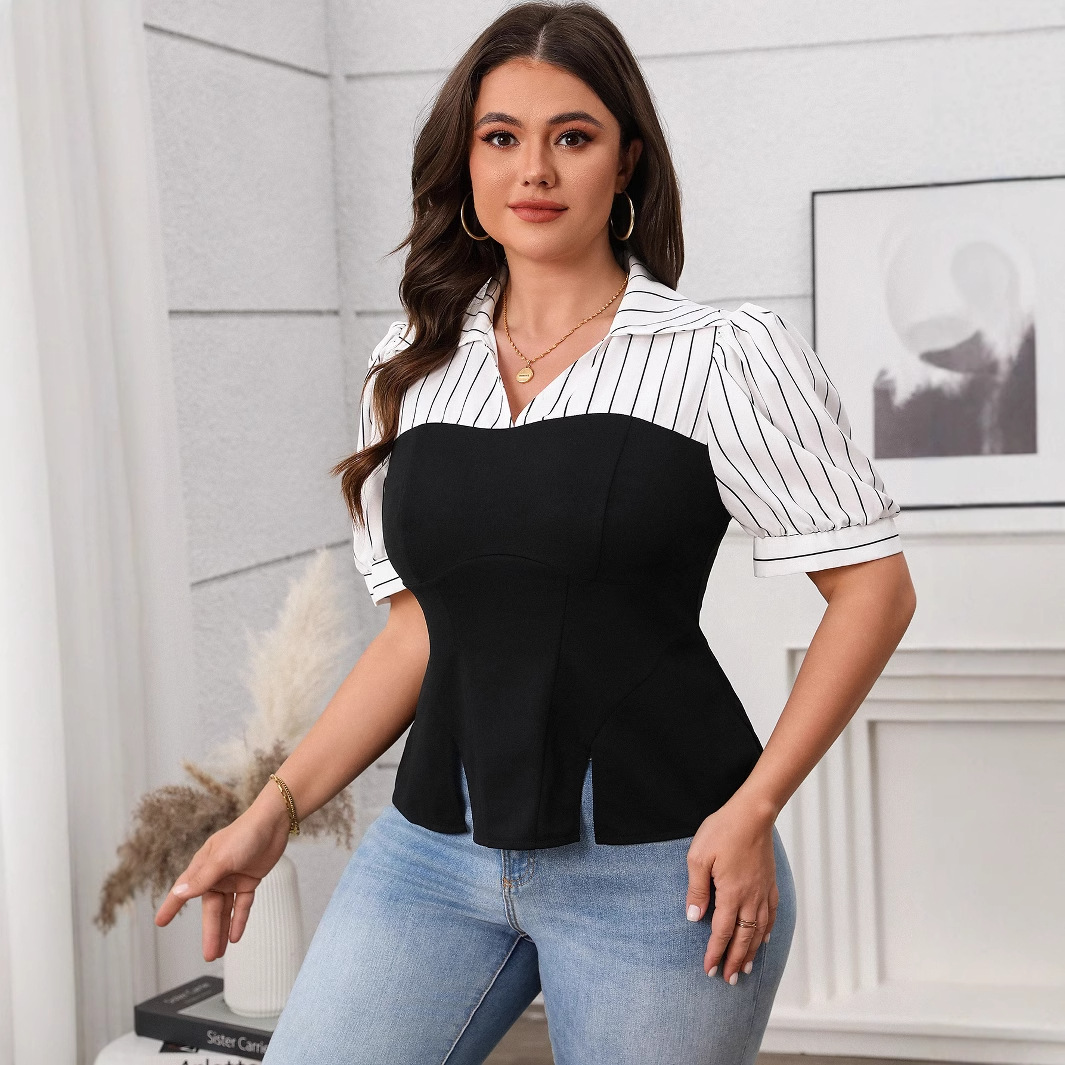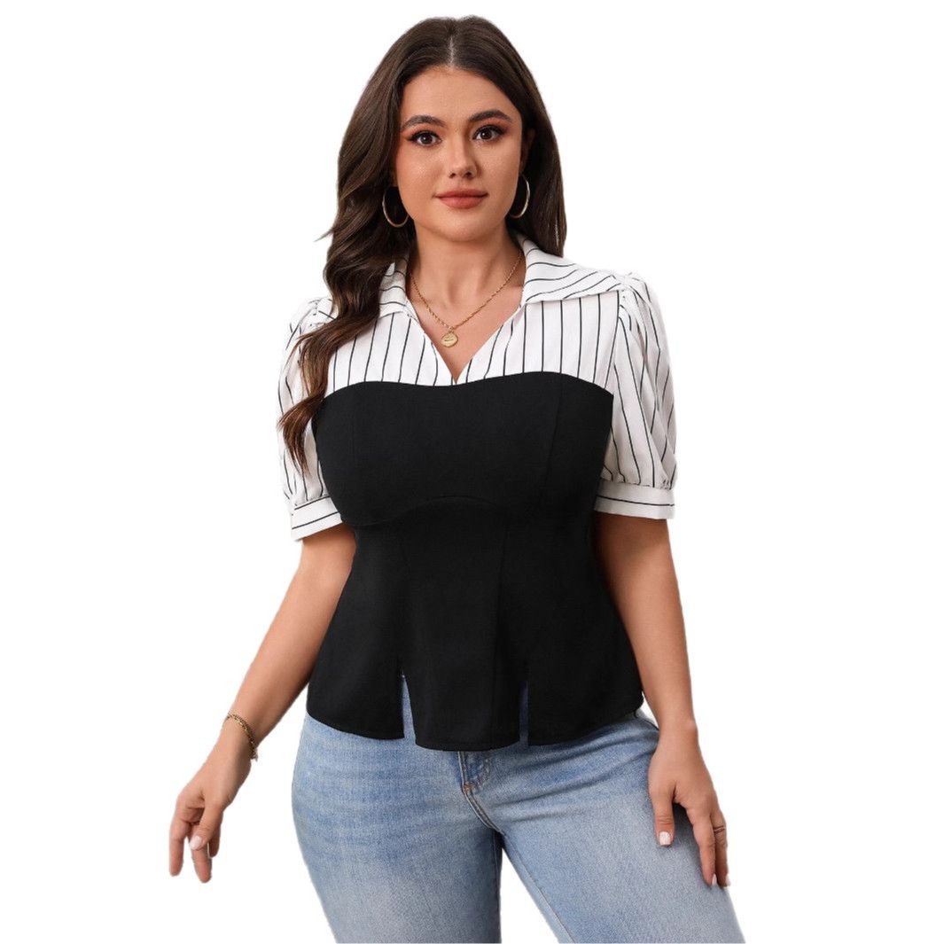 Европейский и американский стиль 2025 новая женская трансграничная торговля полосатый сшитый топ Летний тонкий топ Amazon с короткими рукавами