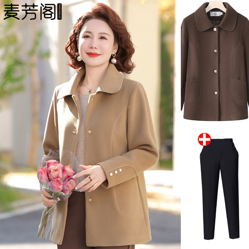 Мама весенняя шерстяная куртка женский 2025 новый средний и пожилой человек весной и осенью шерстяное пальто среднего возраста