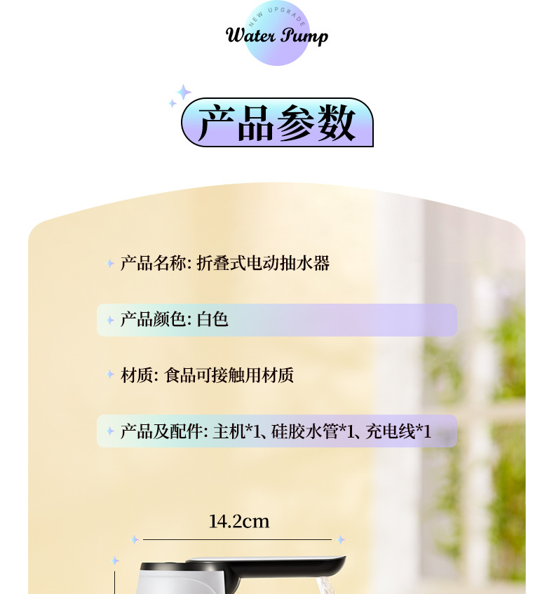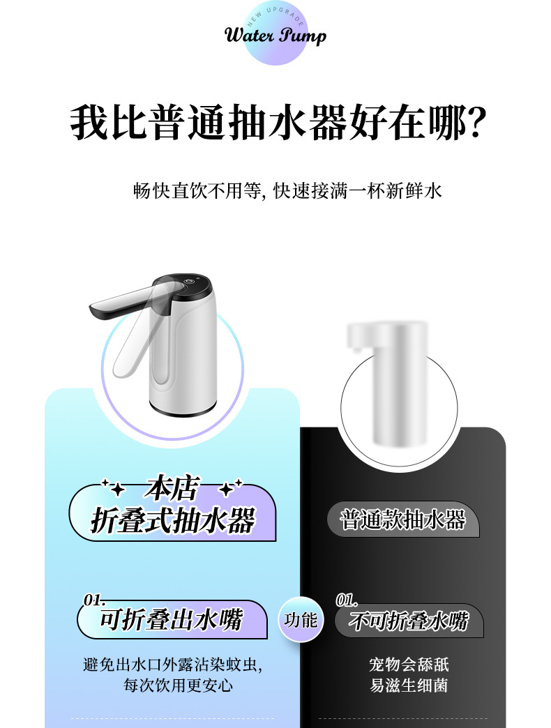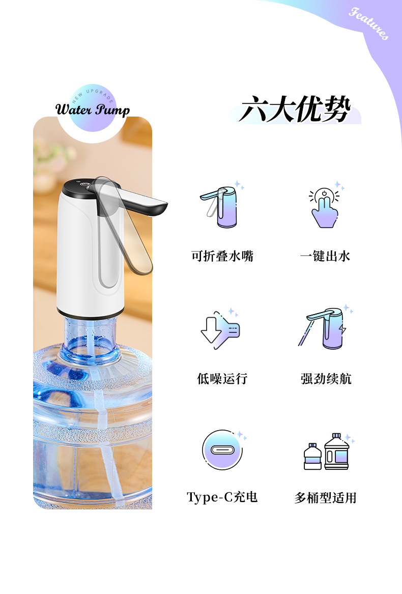 Электрический складной насос для бутилированной воды, компактный бытовой перезаряжаемый диспенсер для воды, автоматический дозатор воды.