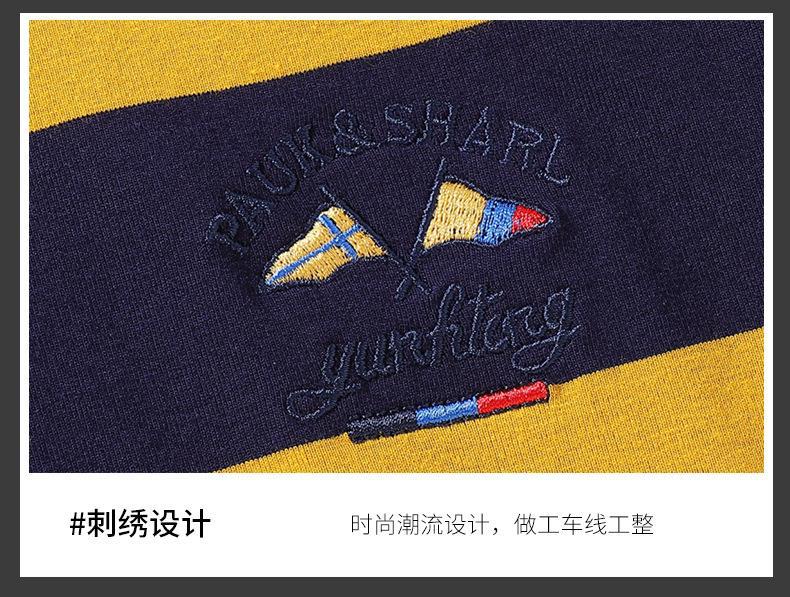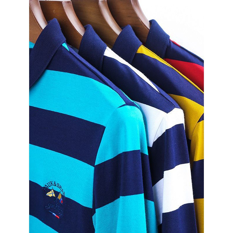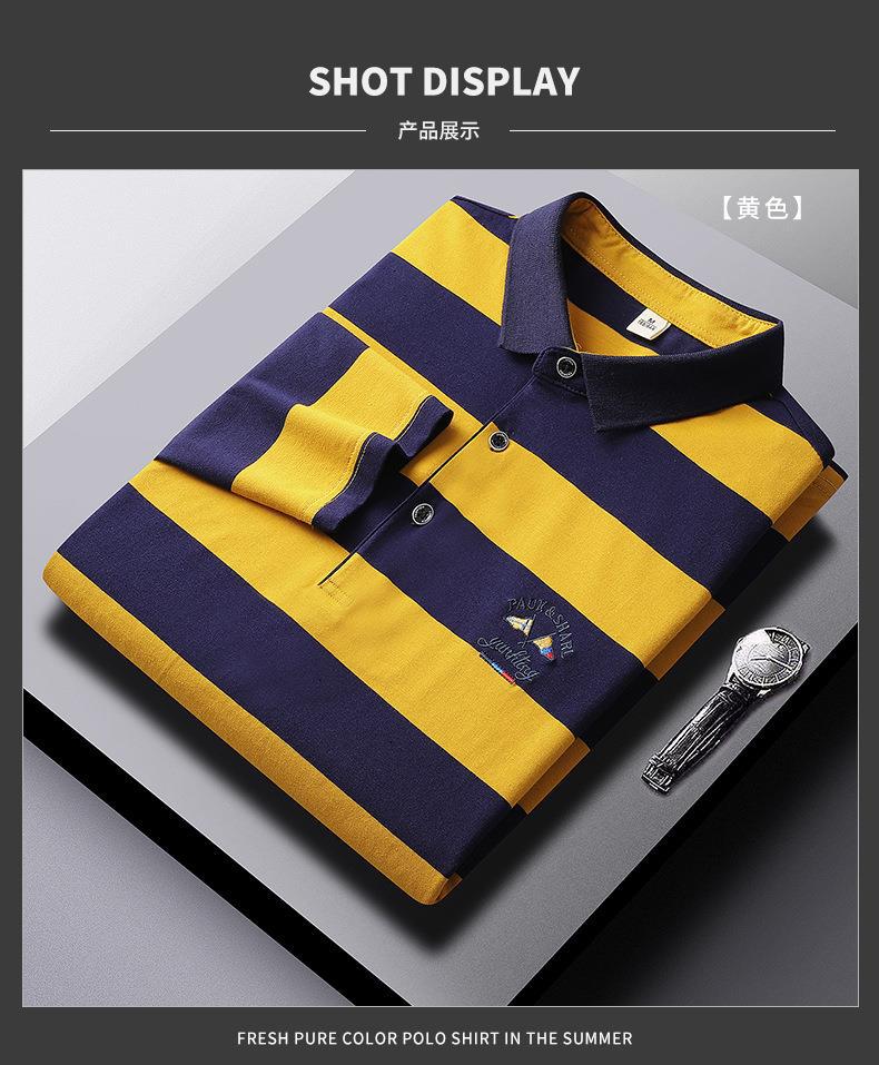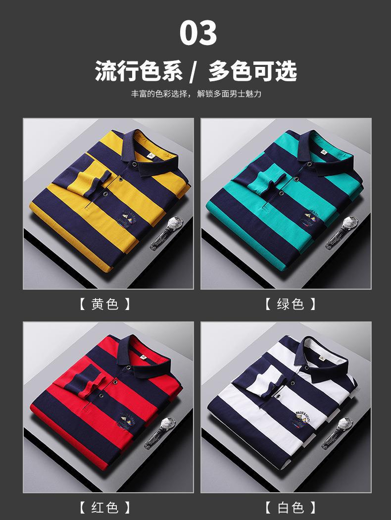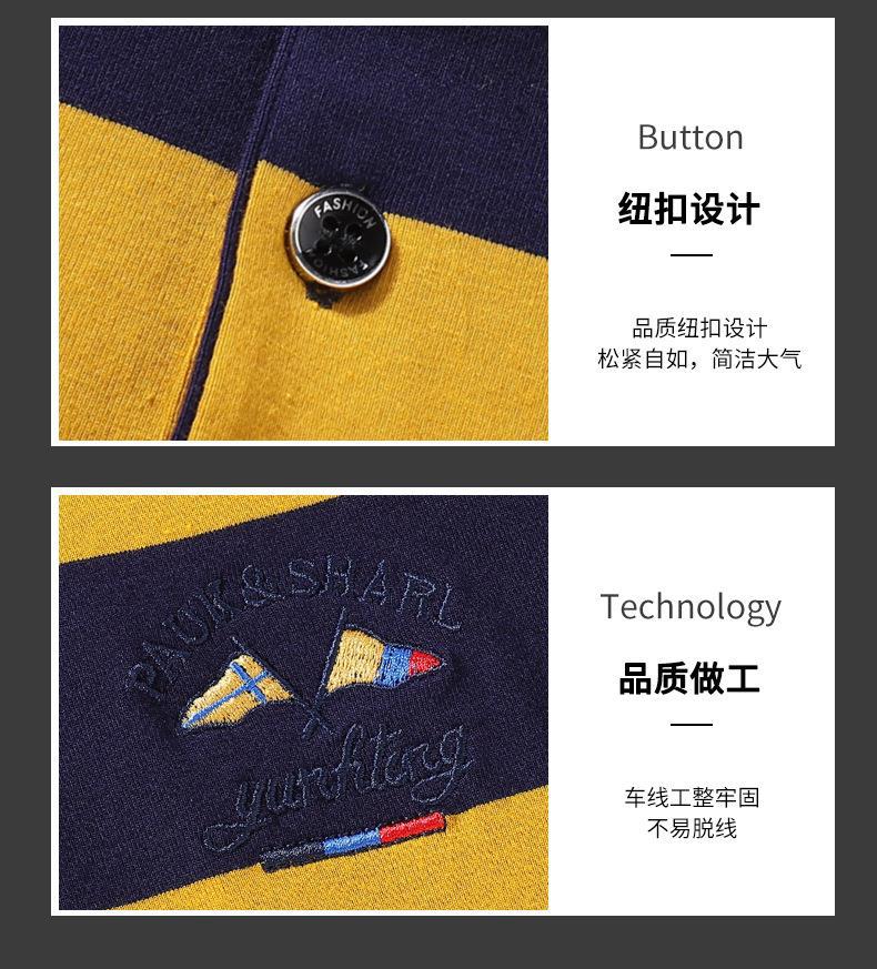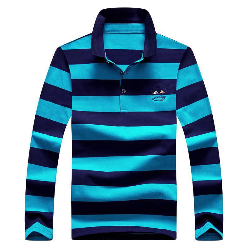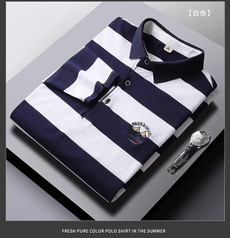Вышитая хлопчатобумажная полоска рубашка POLOO с длинными рукавами мужской легкий бизнес эластичный отворот футболка мужской папа