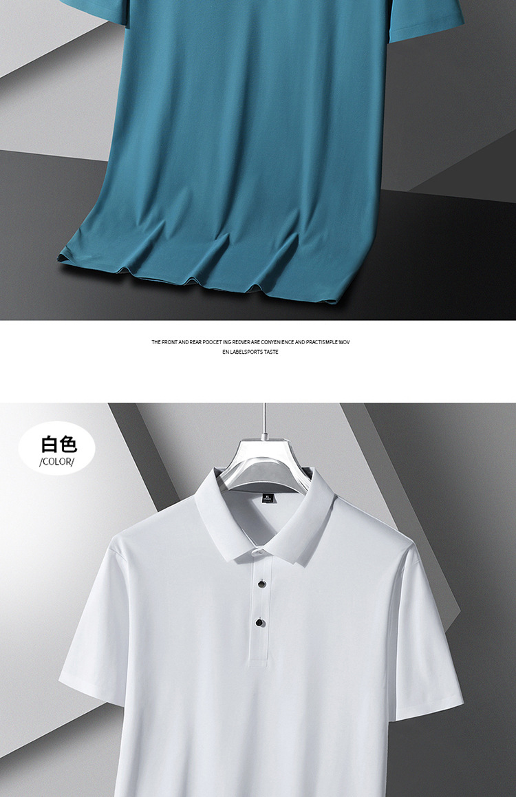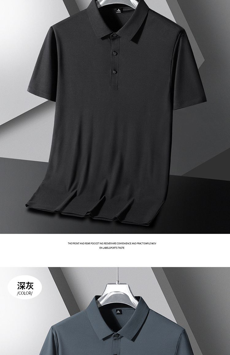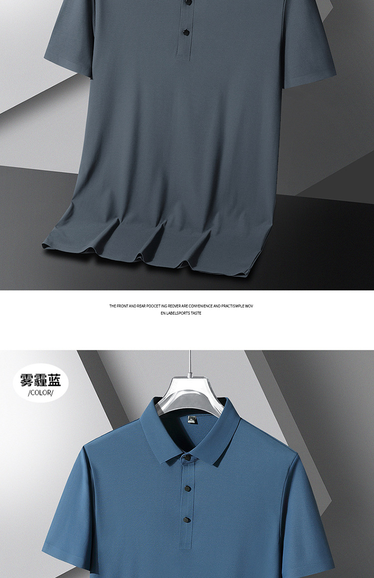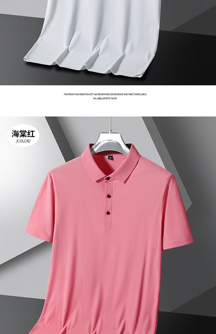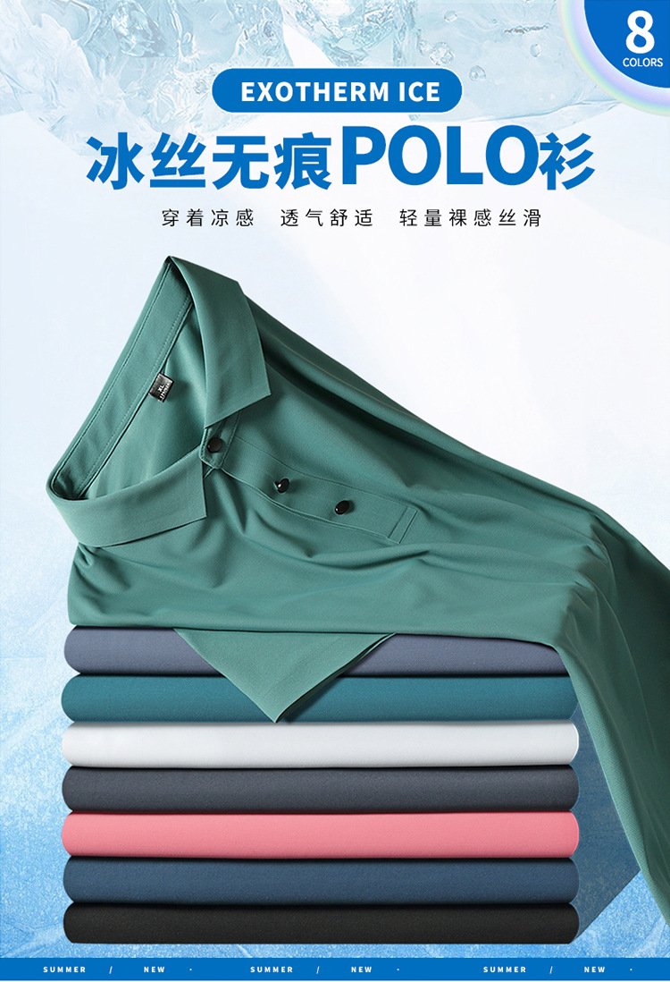 2024 новый стиль мужской рубашки Поло Летний сплошной цвет минималистский повседневный топ бесшовный мужской бисер шелковый короткий рукав