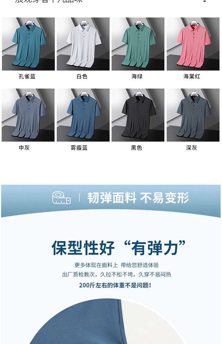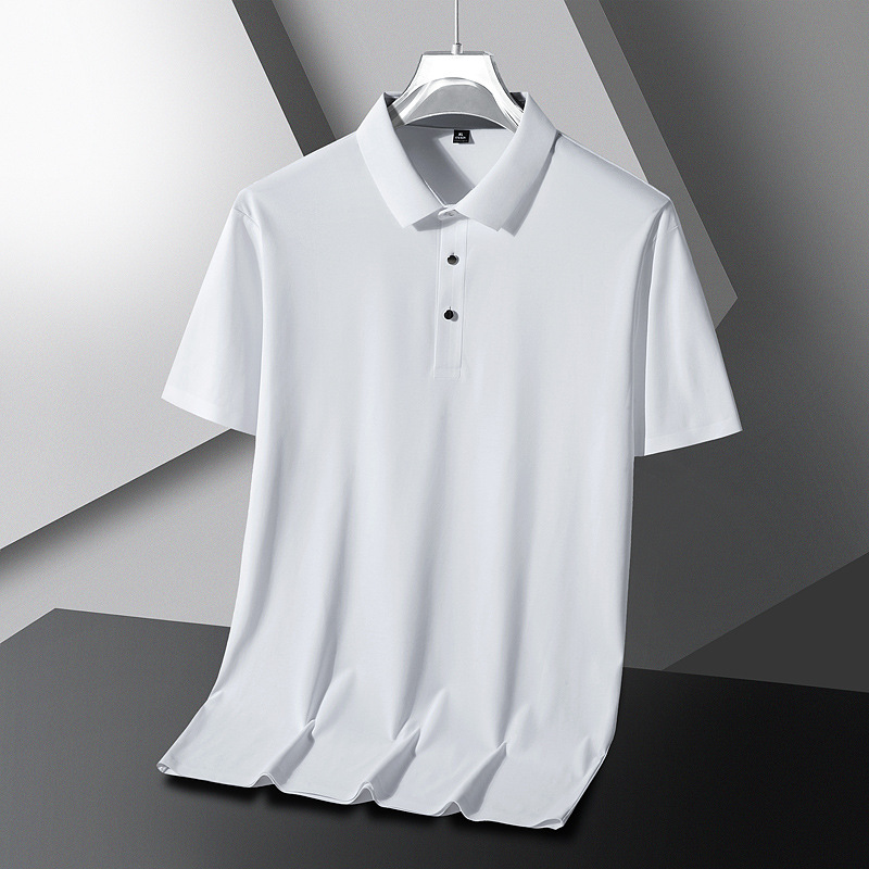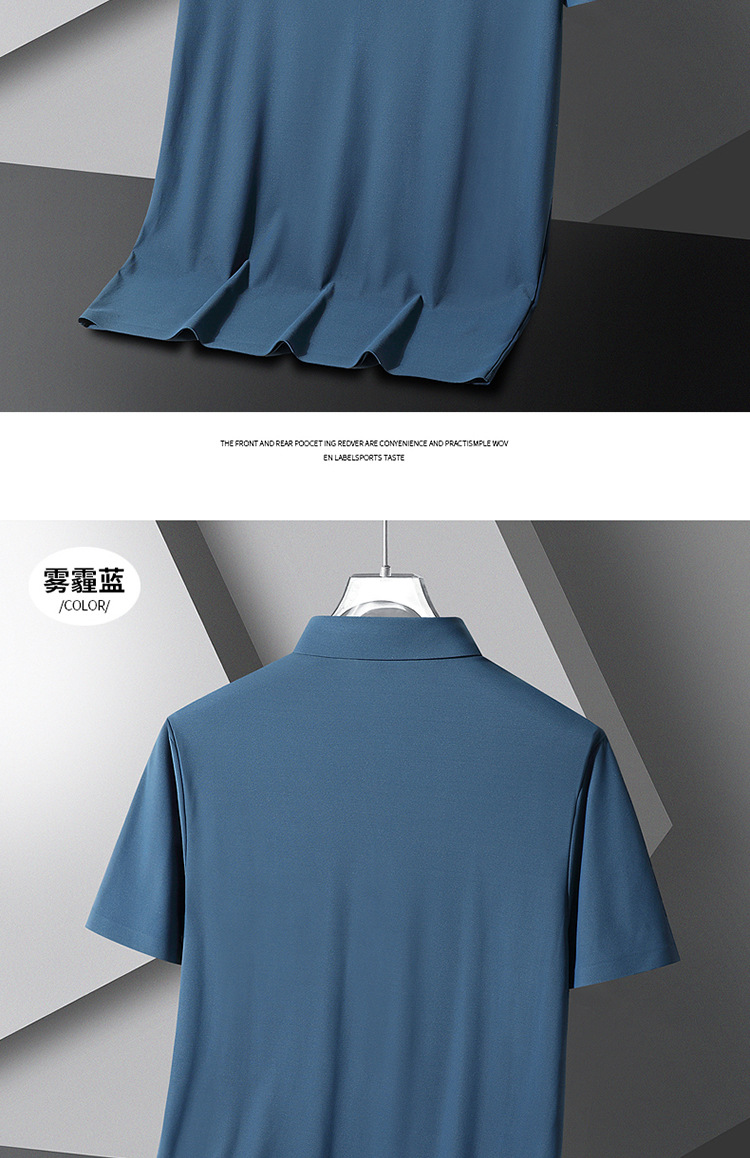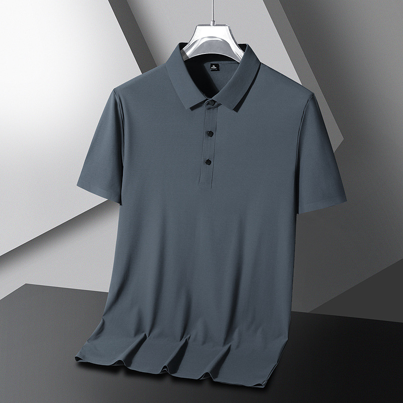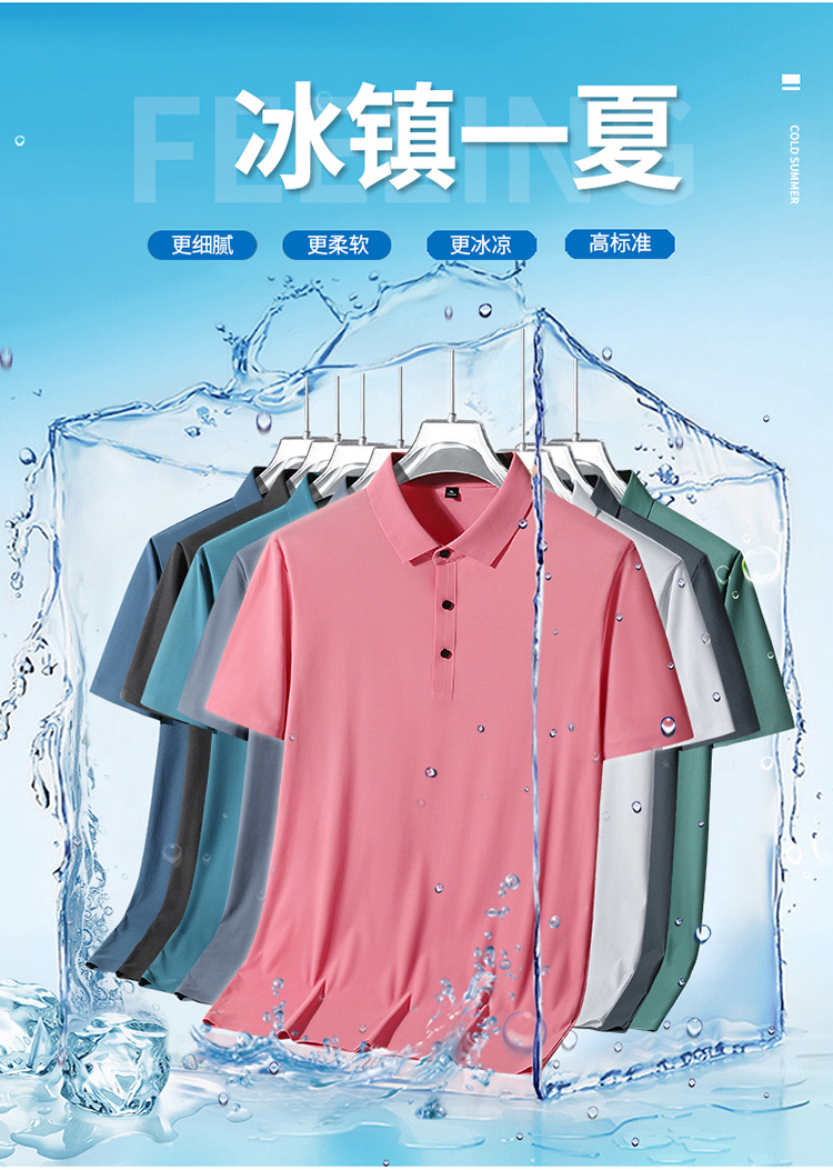 2024 новый стиль мужской рубашки Поло Летний сплошной цвет минималистский повседневный топ бесшовный мужской бисер шелковый короткий рукав