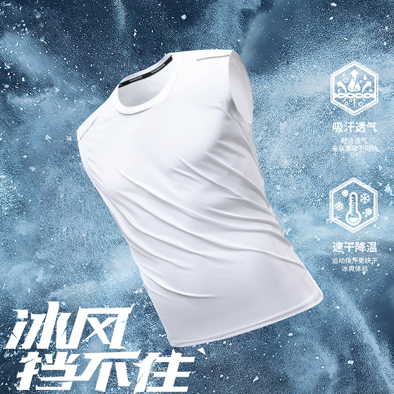 Новый стиль Летний ледяной шелк жилет ледяной шелк с короткими рукавами спортивный фитнес без рукавов футболка