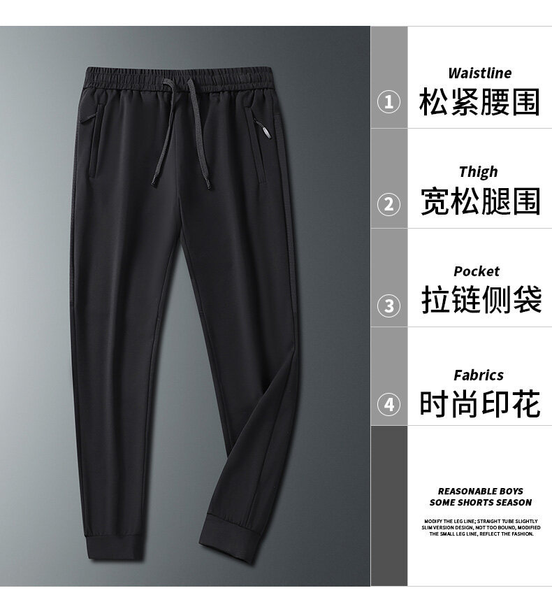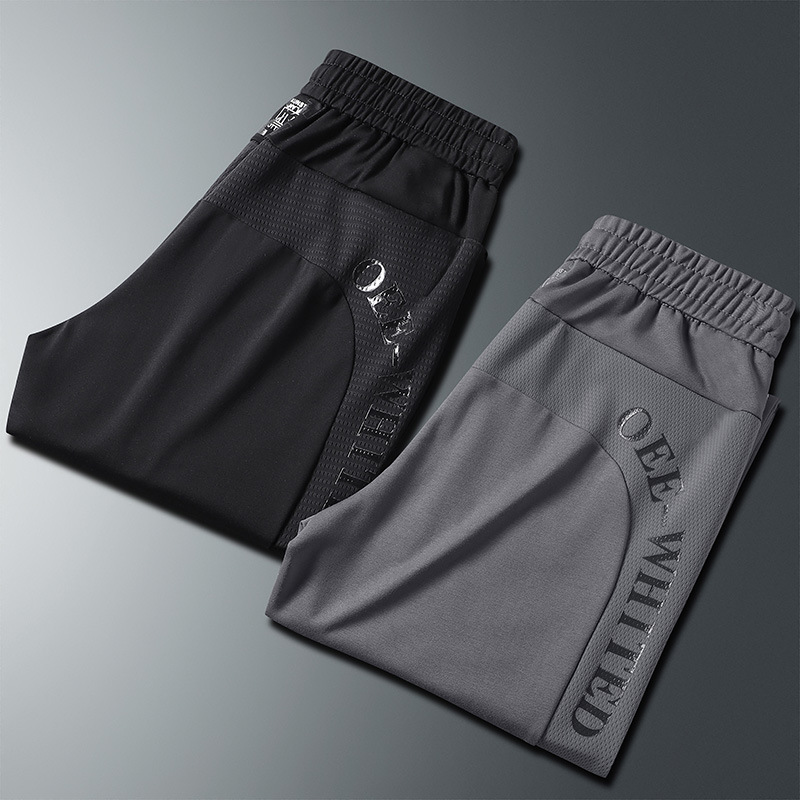 Спортивные повседневные брюки для мужчин летом и осенью тонкий и дышащий 2023 новые широкие брюки с длинными брюками брюки с ледяным шелком